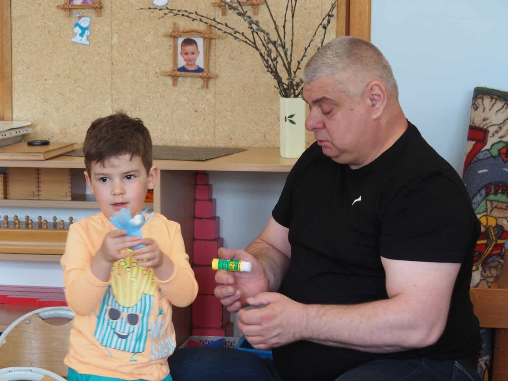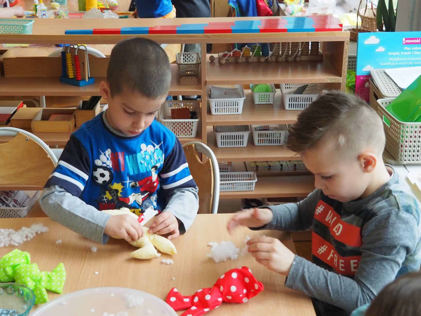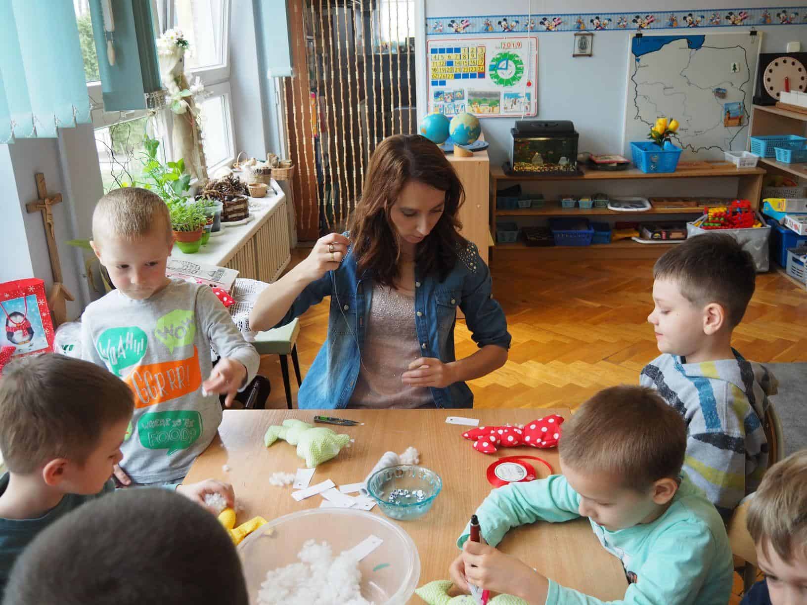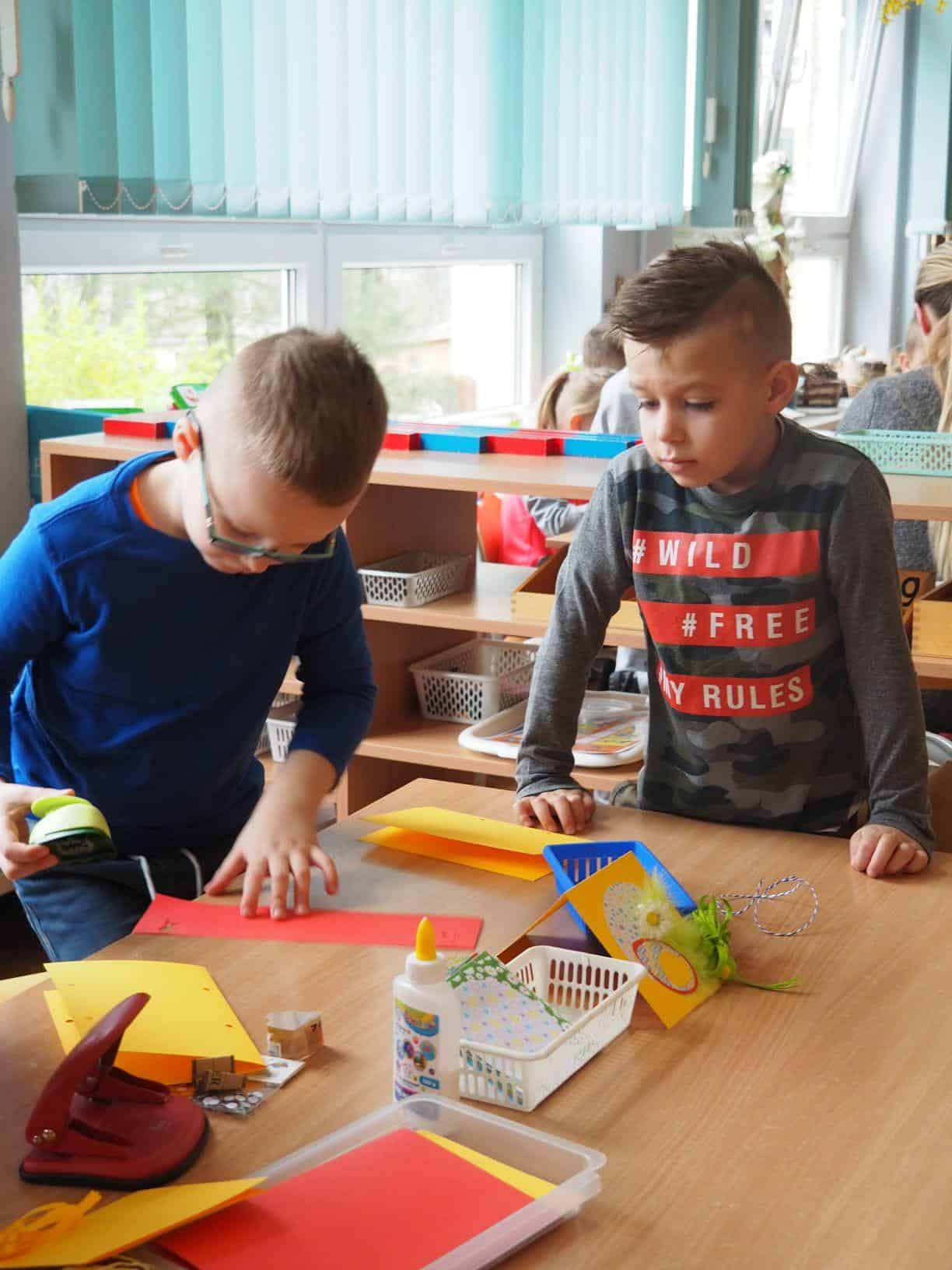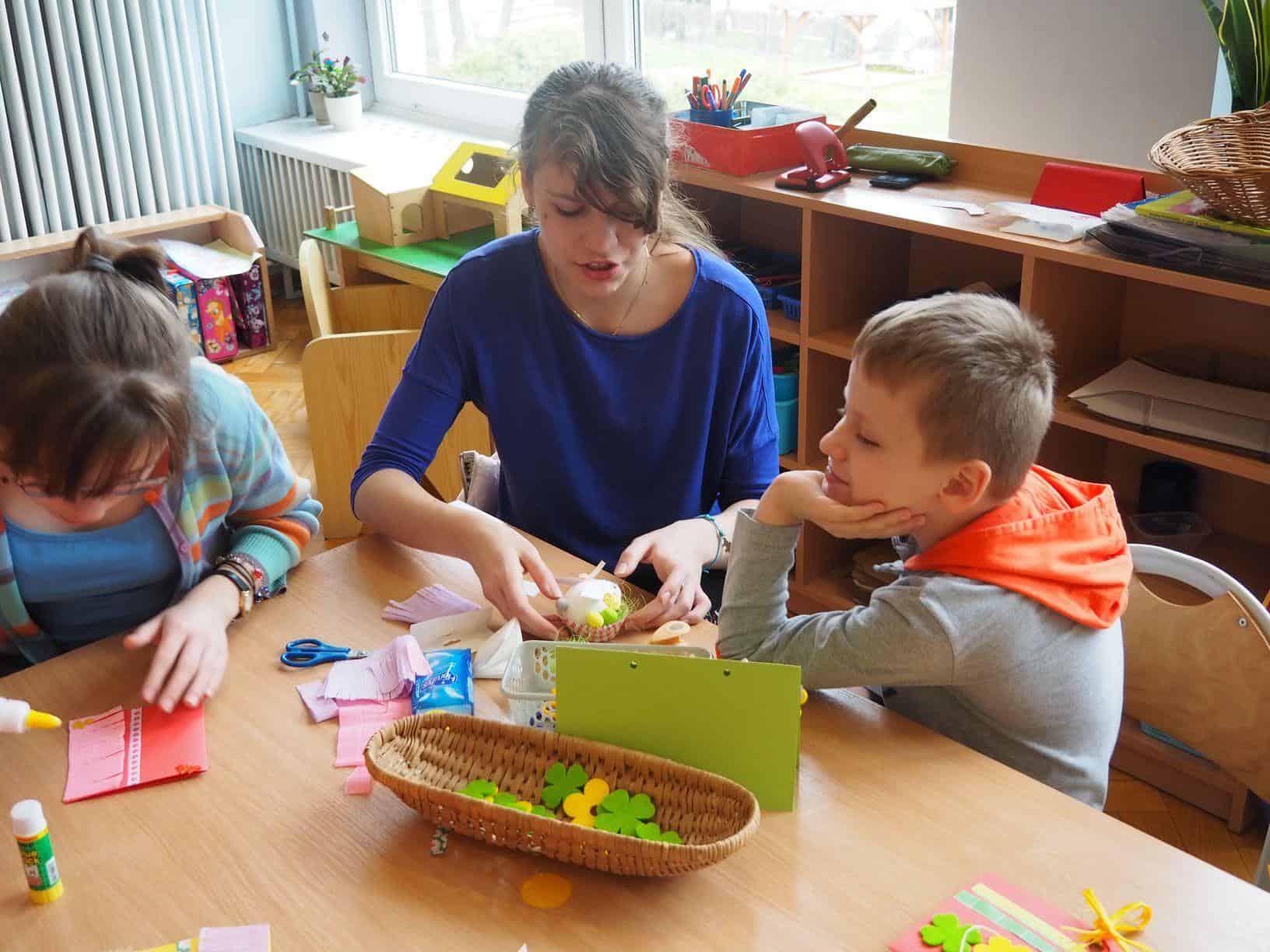 W przedświątecznych zajęciach plastycznych w grupie Niebieskiej uczestniczyło wielu gości. Dzięki ich pomocy dzieciom i oryginalnym pomysłom powstało wiele ozdób wielkanocnych. Na stołach zaroiło się od zajączków przygotowanych przez mamusię Bartka, wymyślnych pisanek, zajączków z jajek i barwnych kartek świątecznych.