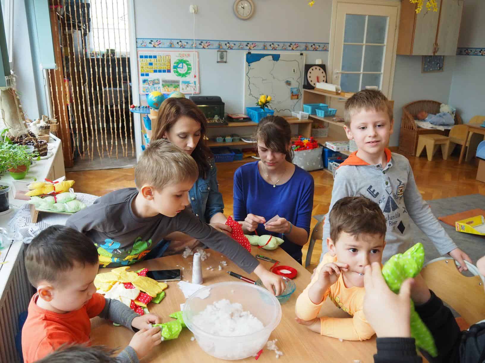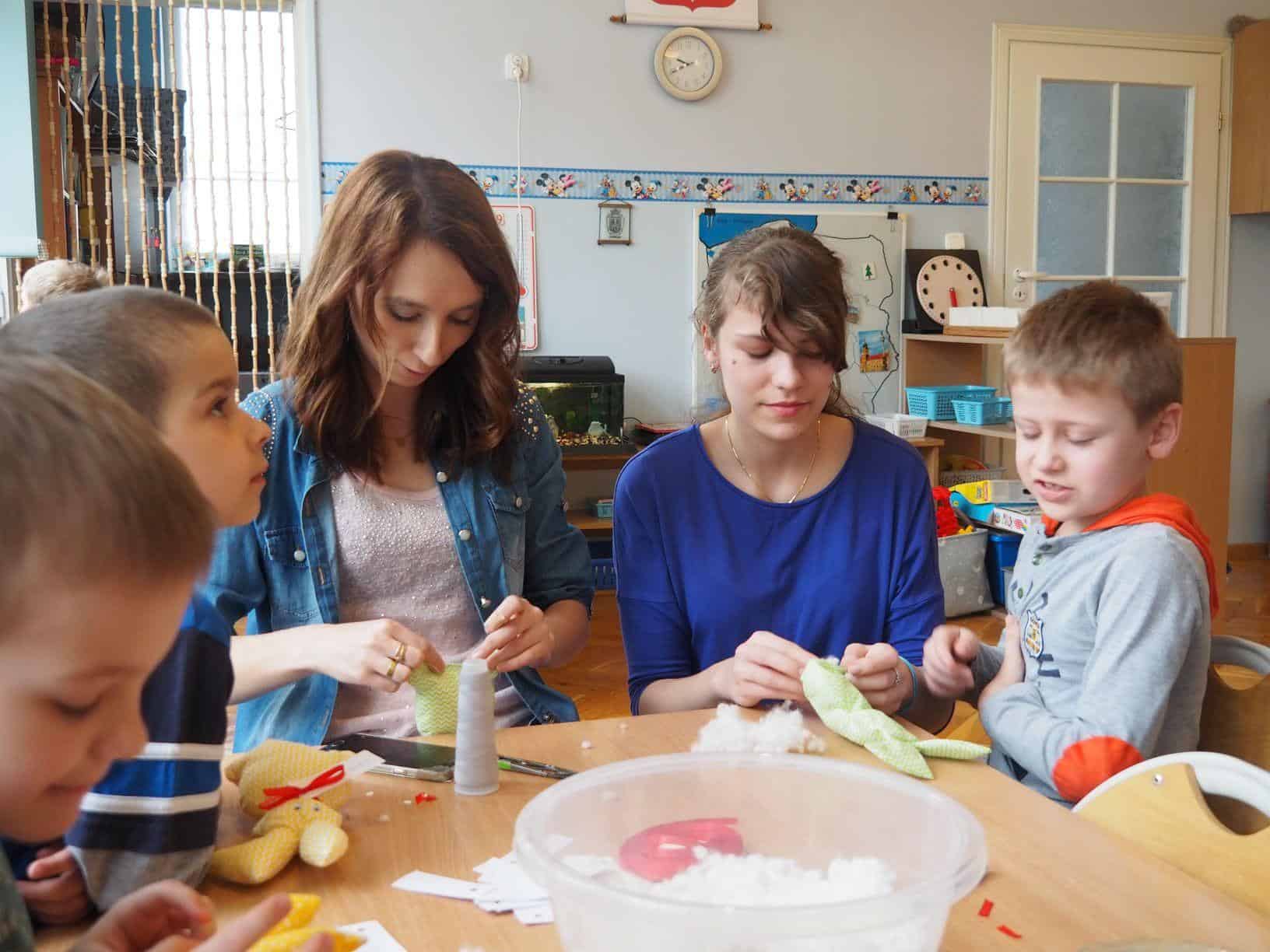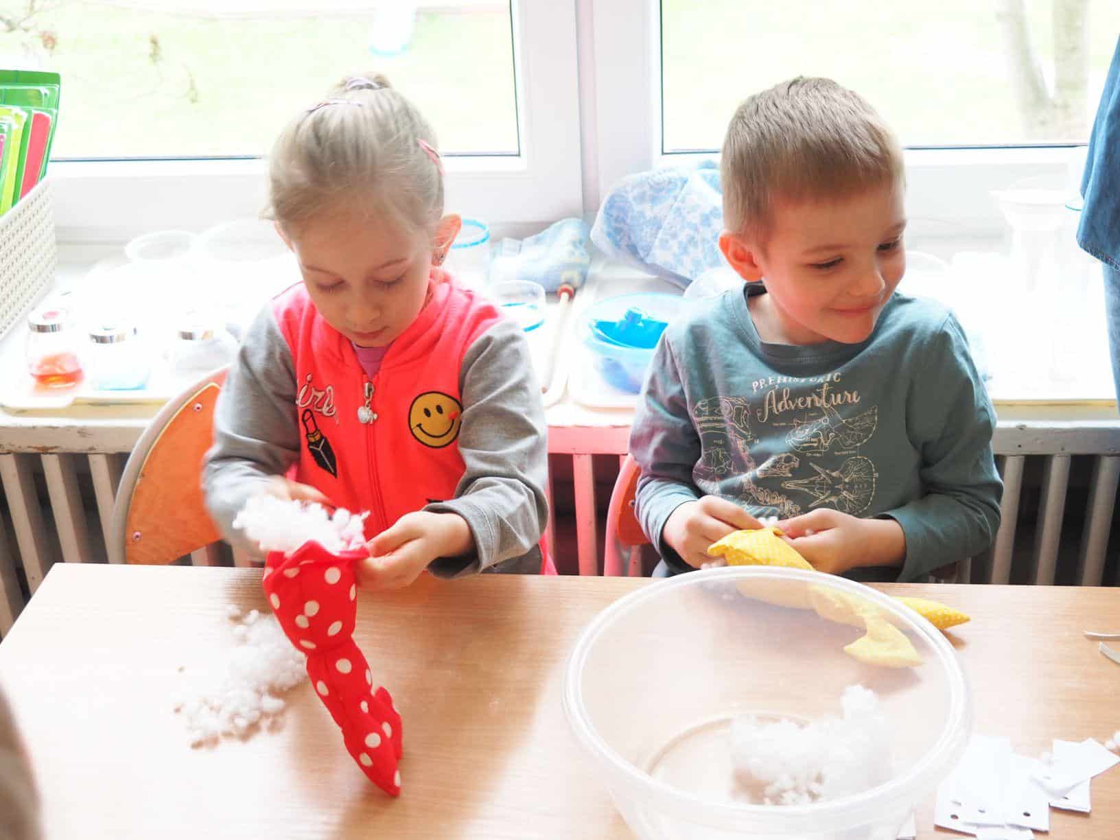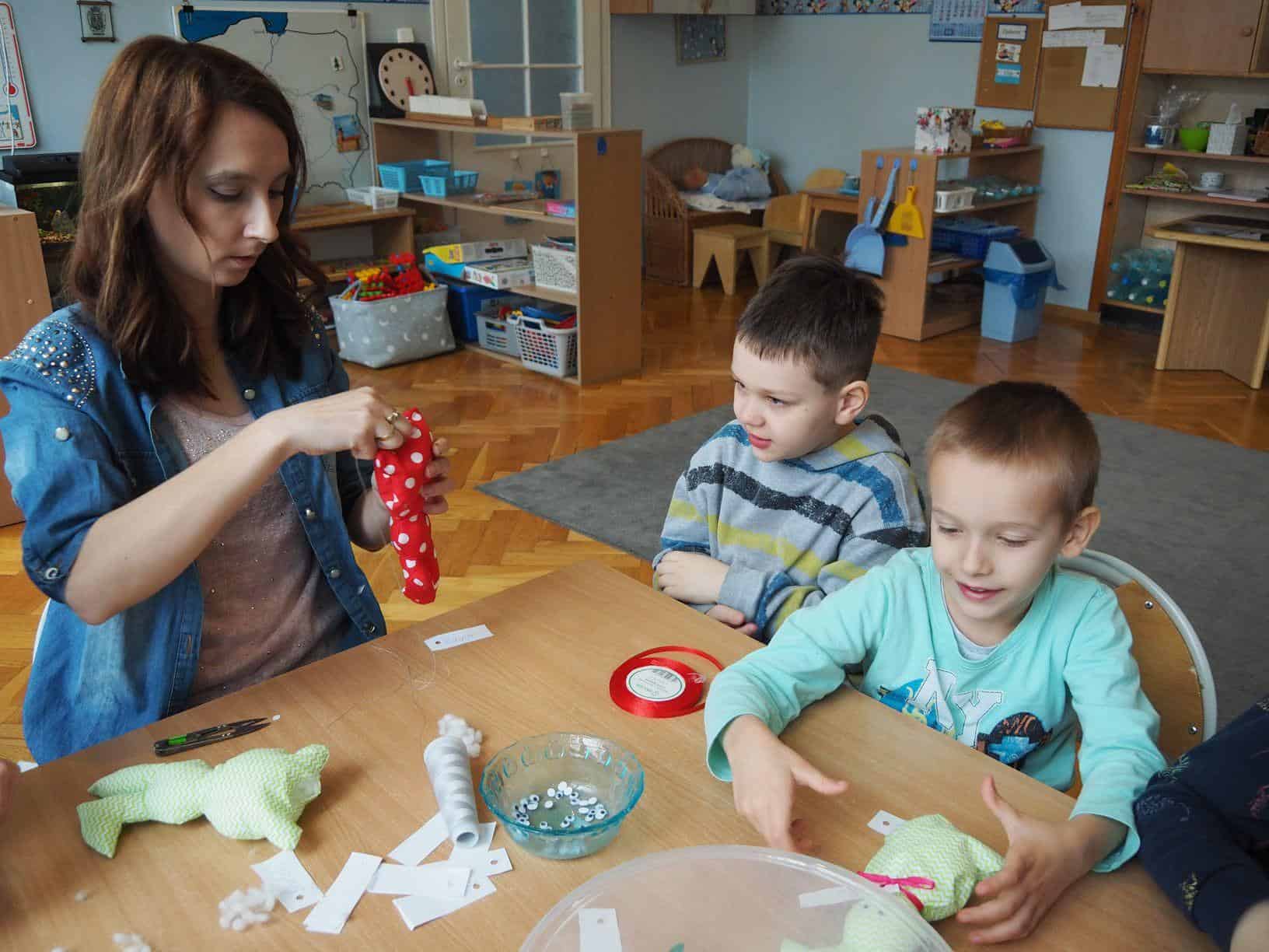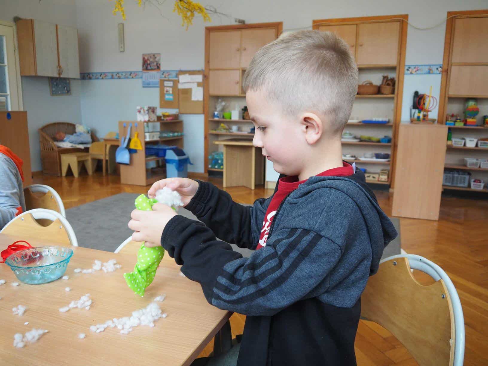 W przedświątecznych zajęciach plastycznych w grupie Niebieskiej uczestniczyło wielu gości. Dzięki ich pomocy dzieciom i oryginalnym pomysłom powstało wiele ozdób wielkanocnych. Na stołach zaroiło się od zajączków przygotowanych przez mamusię Bartka, wymyślnych pisanek, zajączków z jajek i barwnych kartek świątecznych.