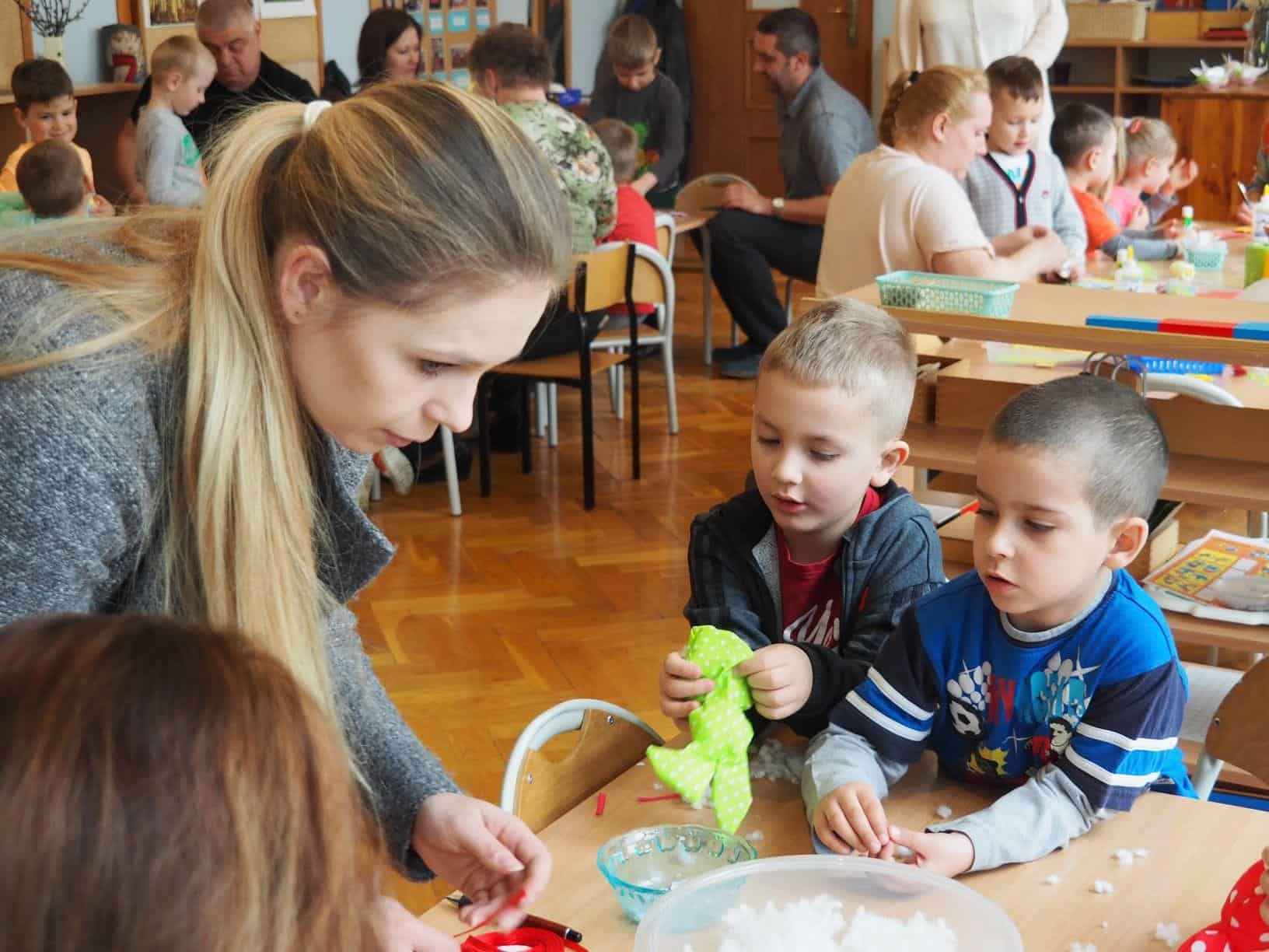 Już wkrótce Święta Wielkanocne. Ich atmosferę budujemy w przedszkolu na długo przed ich rozpoczęciem. Przygotowujemy się do świąt poprzez uczestniczenie w godzinkach wielkanocnych oraz organizowanie otwartych zajęć plastycznych dla rodziców.
