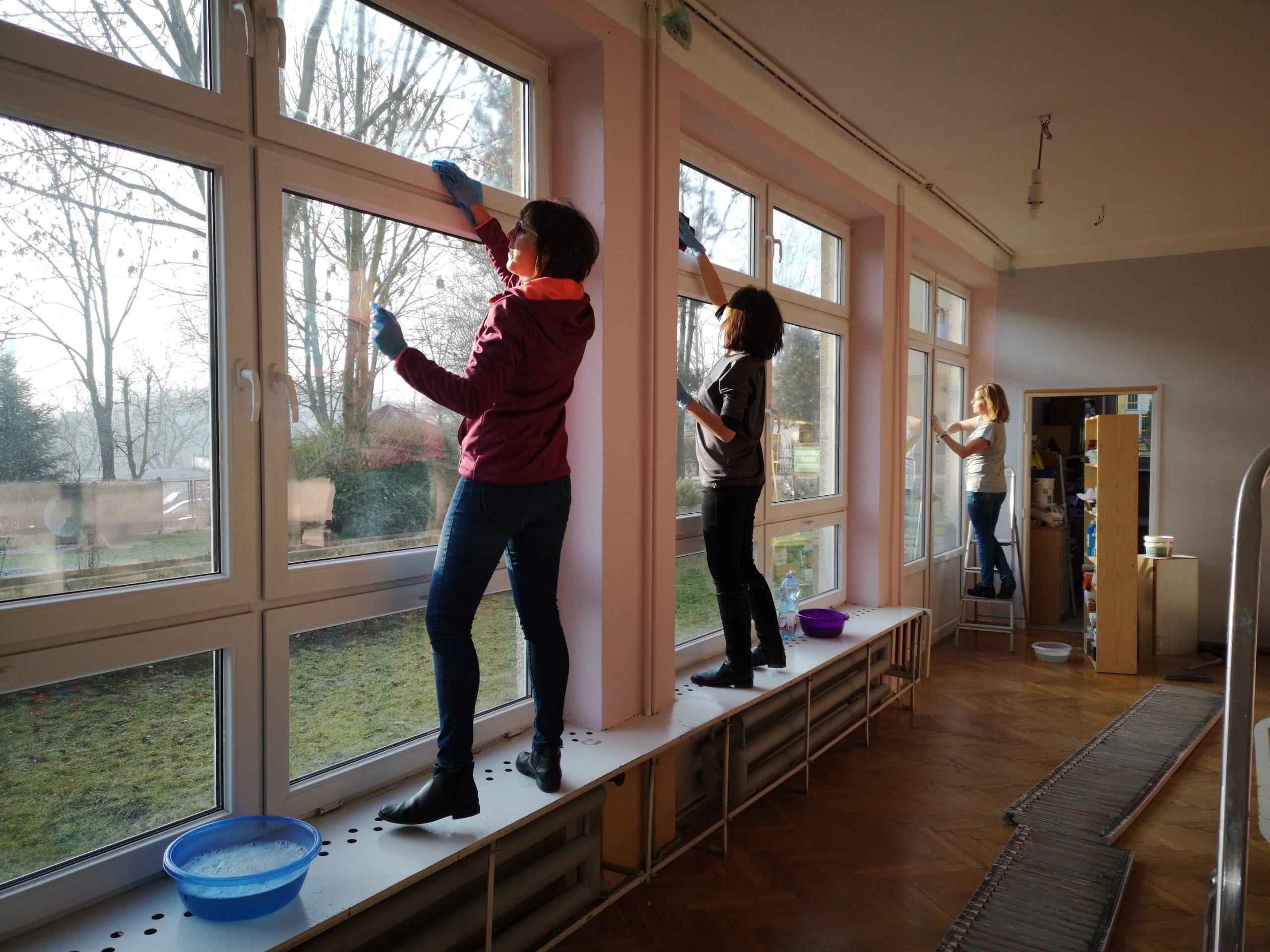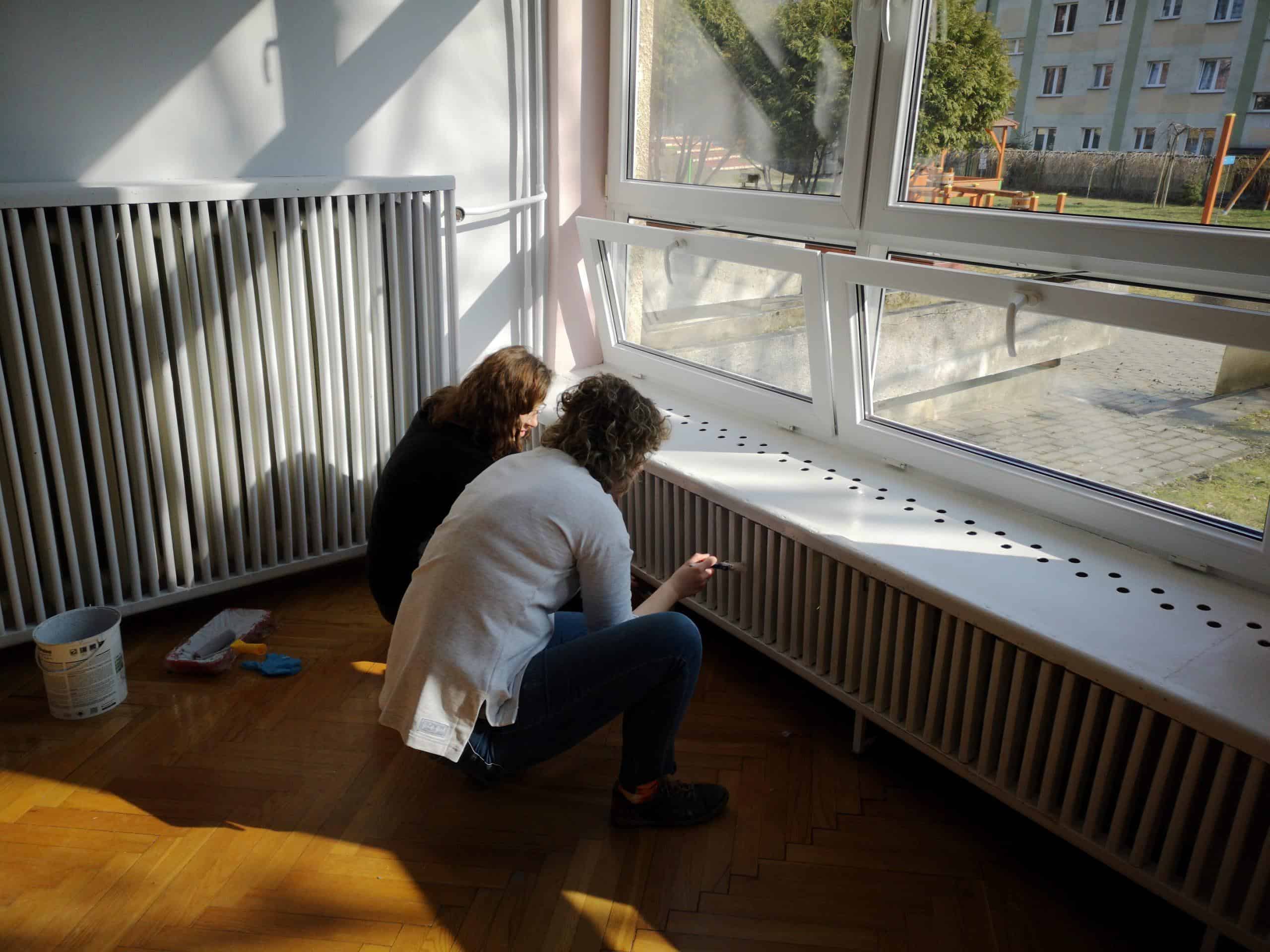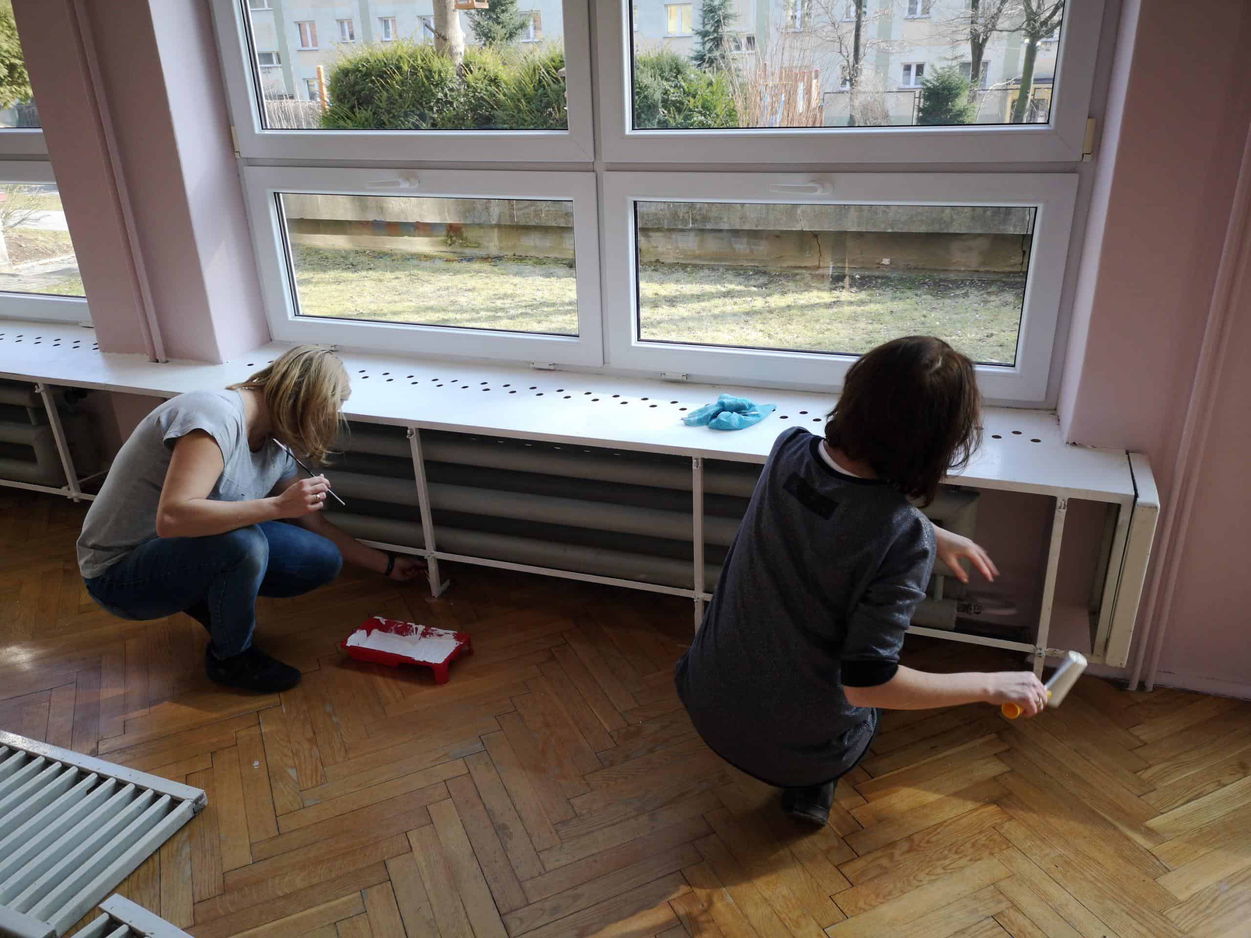 Nasze niezastąpione Mamusie pomogły malować parapety, osłony kaloryferów, a także posprzątać po malowaniu. Dziękujemy za pomoc: