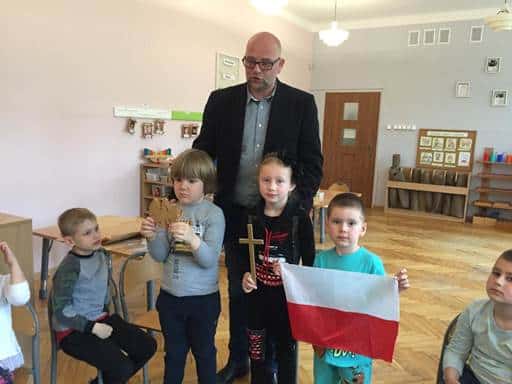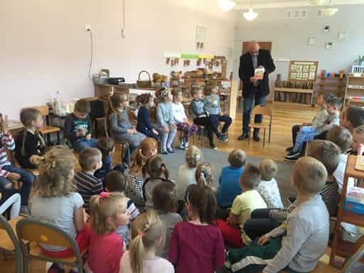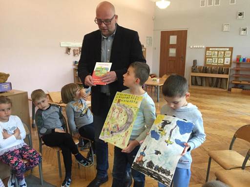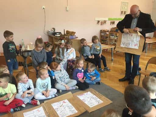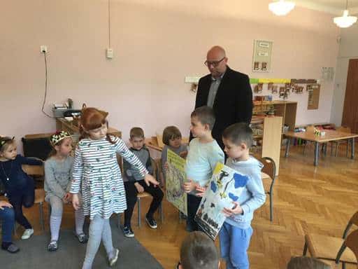 Od wielu lat nasze przedszkole współpracuje z Panem Krzysztofem Kubaszkiem, autorem wierszy dla dzieci. Dzisiaj Pan Krzysztof przeprowadził warsztaty literackie, których tematem uczynił Polskę. Polskę jako kraj którego nie było, a który odrodził się dzięki wierze i waleczności Polaków. Treść zajęć nawiązywała do ostatniego tomiku poezji Tak nam się odrodziła Polska, Ojczyzna miła!