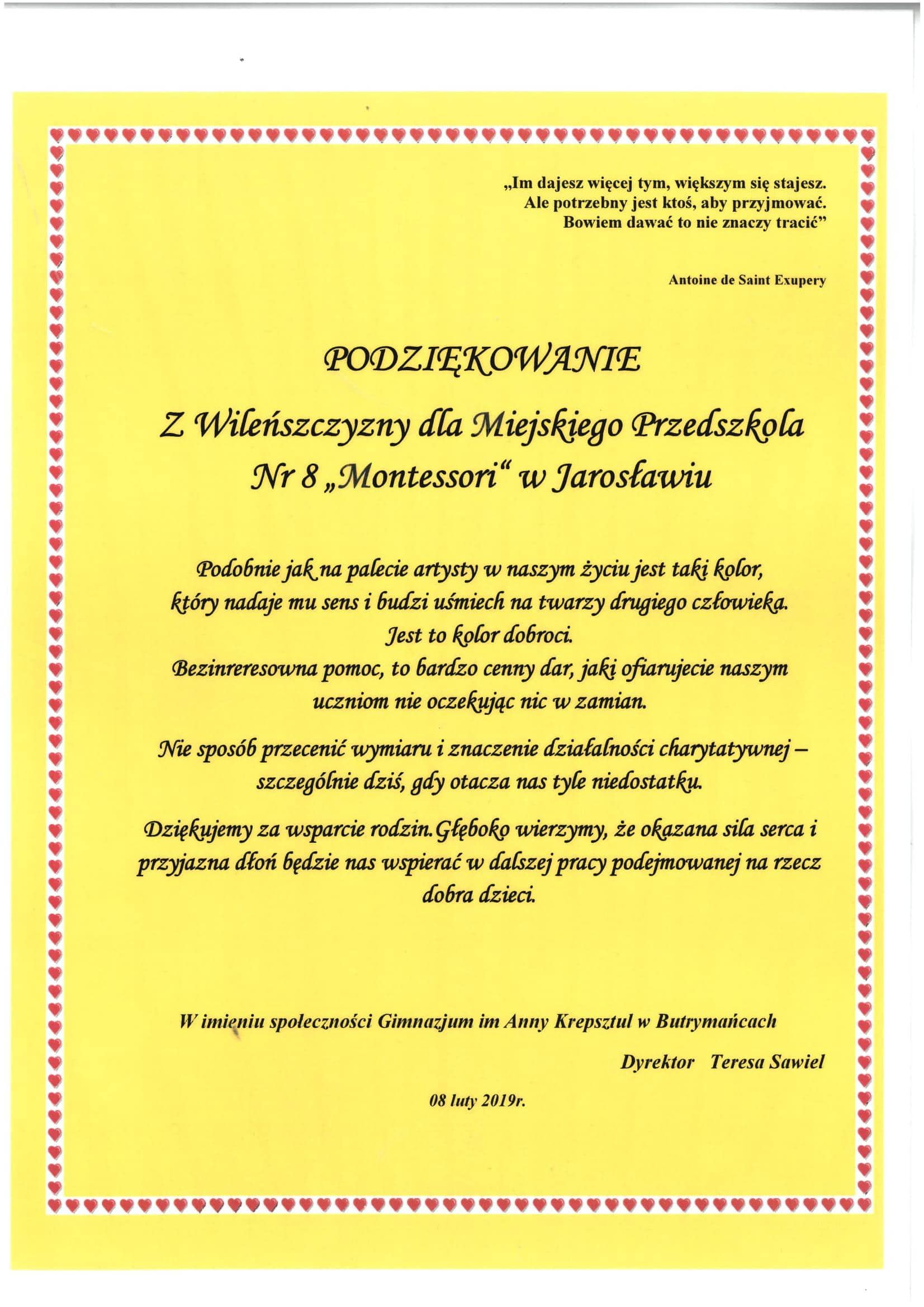 Spotkanie rozpoczęła grupa Czerwona, która zapoznała wszystkie obecne dzieci z symbolami narodowymi oraz ich znaczeniem dla każdego Polaka. Przedszkolaki dowiedziały się między innymi, dlaczego w godle Polski umieszczony jest orzeł, co symbolizują kolory na fladze oraz kiedy można usłyszeć hymn. W uroczysty sposób w postawie stojącej został odśpiewany hymn narodowy, którego słowa dzieciom z naszego przedszkola są doskonale znane Na zakończenie chętne dzieci z każdej grupy rozwiązały quiz utrwalający zaprezentowane przez dzieci wiadomości. Następnie dzieci z grupy Zielonej przedstawiły inscenizację o historycznych wydarzeniach związanych z uchwaleniem Konstytucji 3-go maja. Dzieci zaśpiewały pieśń patriotyczną pt. „Trzeci Maj”, a wszystko to w pięknej scenerii z narodowymi symbolami w tle. Kolejnym punktem naszej lekcji było zapoznanie zebranych ze znaczeniem obchodów Święta Pracy. Grupa Pomarańczowa zaprezentowała wiersz Juliana Tuwima „Wszyscy dla wszystkich” a następnie zaprosiła dzieci ze wszystkich grup do rozpoznawania i nazywania rekwizytów, które są charakterystyczne dla ludzi wykonujących różne zawody. I z tym zadaniem dzieci wspaniale sobie poradziły, bez problemu nazywając rekwizyty i zawody wykonywane z używaniem danych narzędzi i przyborów. W kolejnej części wielkiej patriotycznej lekcji dzieci z grupy Niebieskiej zapoznały wszystkich z patriotycznymi wierszami o naszej Ojczyźnie. Wspólnie została zaśpiewana piosenka „Jesteśmy Polką i Polakiem”, którą znają wspaniale wszystkie nasze przedszkolaki. Dzieci swoimi wierszami wprowadziły wszystkich w tematykę związane z naszą małą Ojczyzną, którą jest dla wszystkich dzieci nasze miasto Jarosław. W ostatniej części spotkania grupa Żółta przedstawiła prezentację multimedialną, która zapoznała dzieci z zabytkami naszego miasta oraz miejscami, które warto odwiedzić. Dzieci z wielkim zainteresowaniem oglądały, rozpoznawały i nazywały znajome im miejsca. Na zakończenie zabrała głos Pani Dyrektor, która zaprosiła wszystkie dzieci do zorganizowania rodzinnego spaceru i podziwianiu na żywo zaprezentowanych zabytków oraz wielu wspaniałych malowniczych miejsc w naszym mieście.