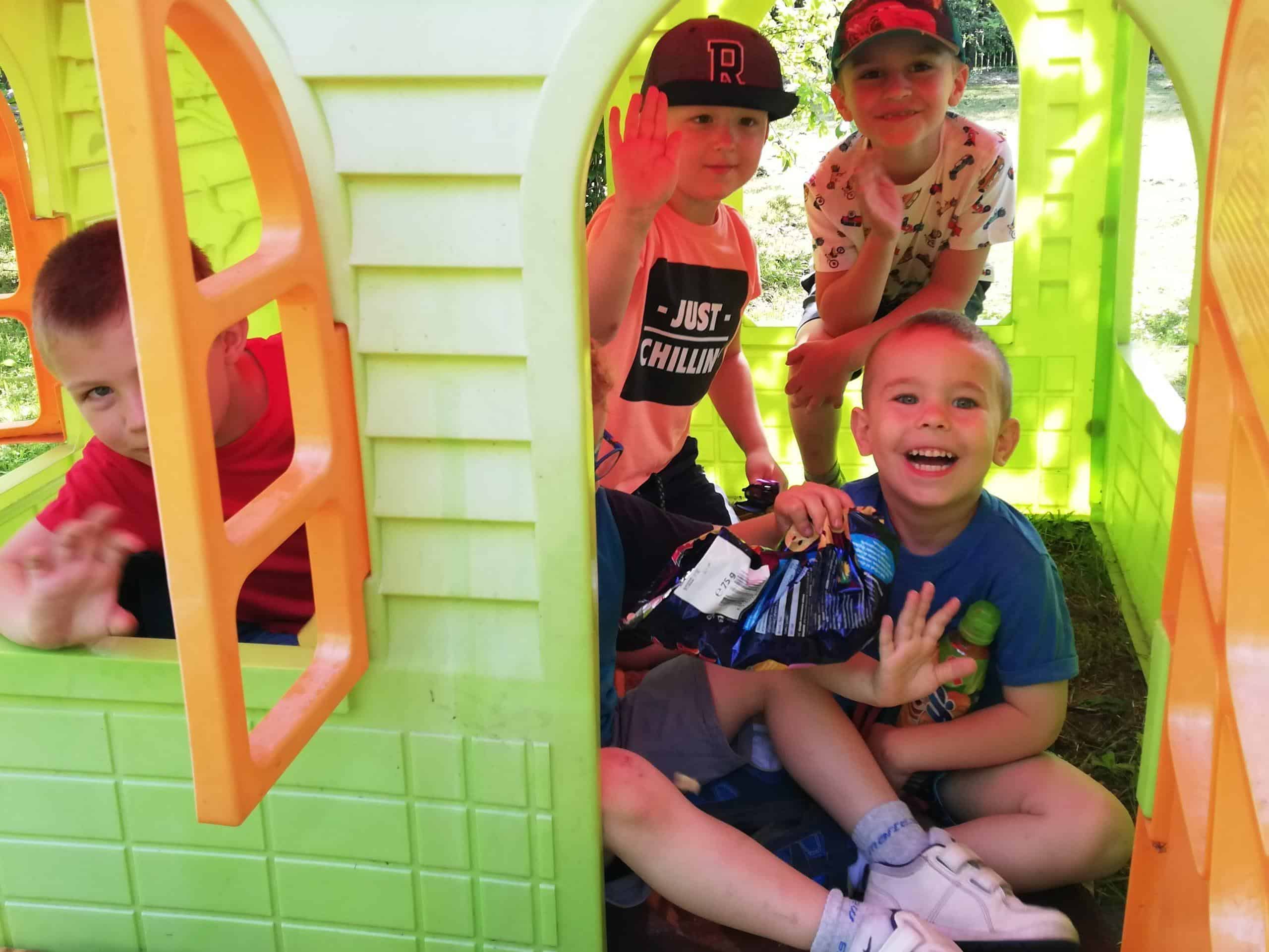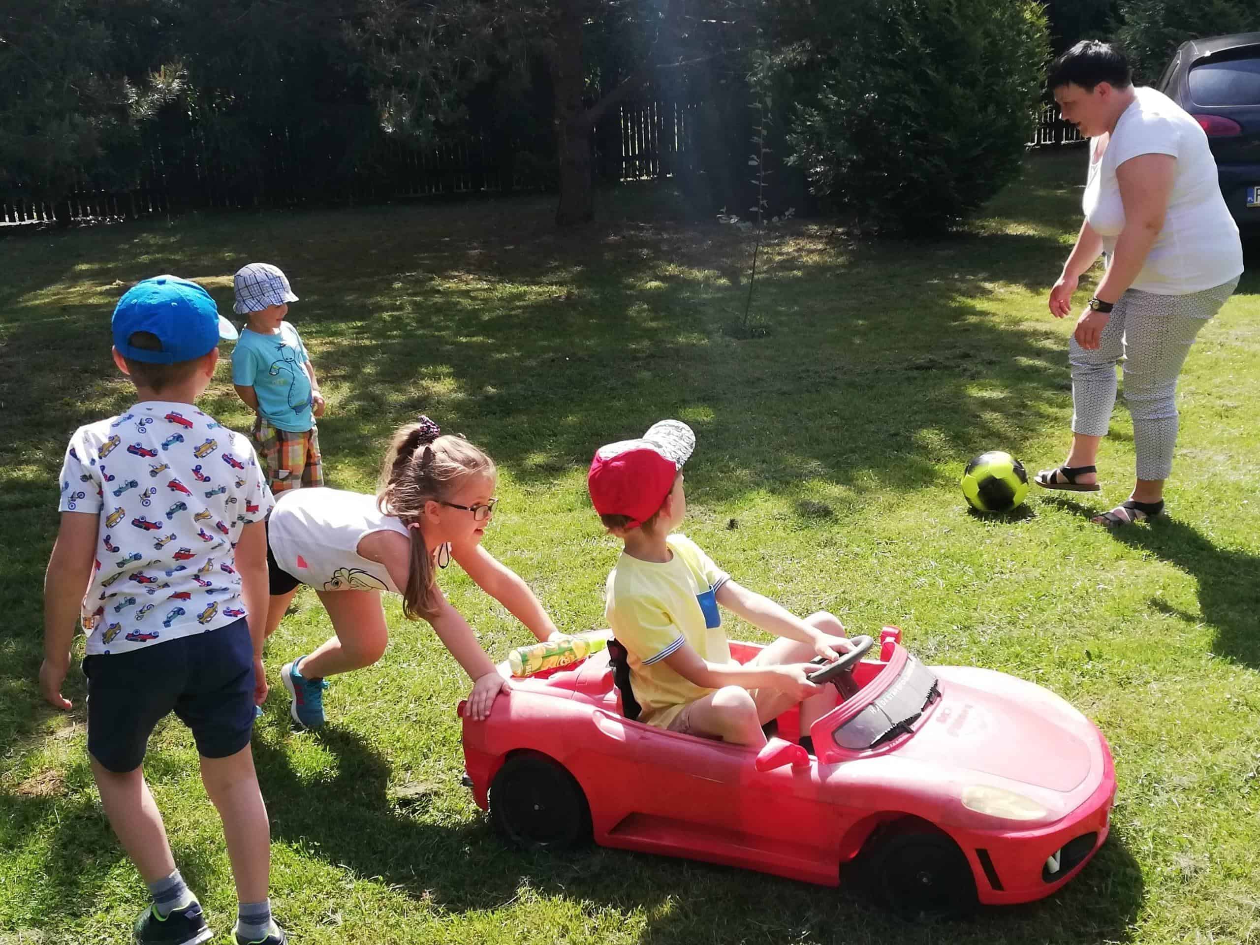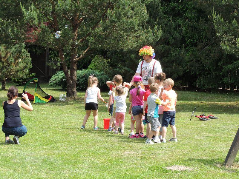 Czasem w życiu bywa tak, że historia zatacza koło…Tak właśnie stało się w naszej grupie, gdyż powitaliśmy rozpoczynający się rok szkolny w Radawie na prywatnej działce Państwa Figiel i zakończyliśmy go również w tym właśnie miejscu! Wszyscy z ogromną radością przyjęli ponowne zaproszenie Rodziców Zosi na ich działkę i tym oto sposobem naszą końcoworoczną wycieczkę przedszkolną odbyliśmy właśnie do Radawy. Była ona tym bardziej wyjątkowa, że została połączona z urodzinami naszej Zosi a dodatkową atrakcją był Pan Wodzirej, którego zaprosili Rodzice Zosi w celu uatrakcyjnienia naszego pobytu i zapewnienia dzieciom jeszcze lepszej zabawy.