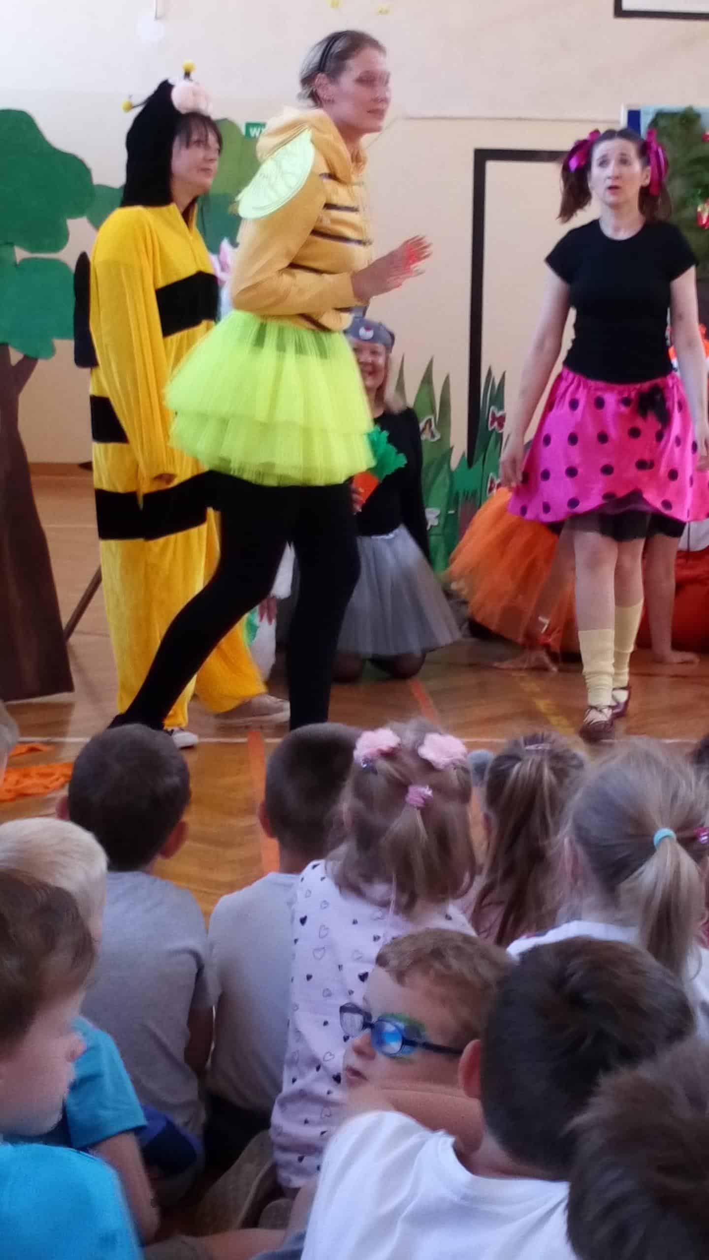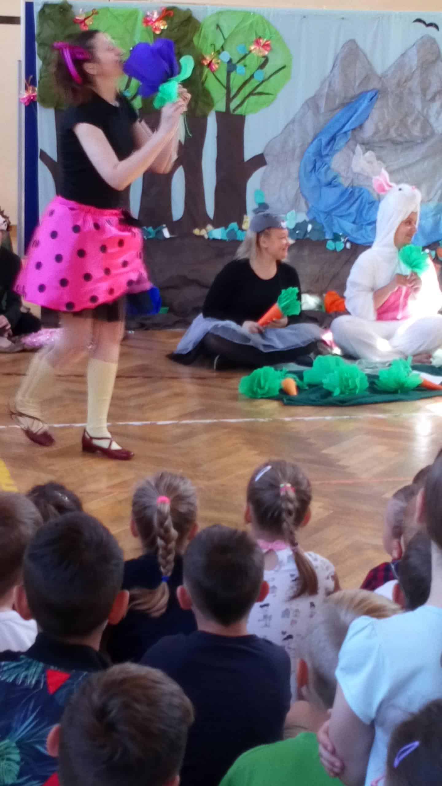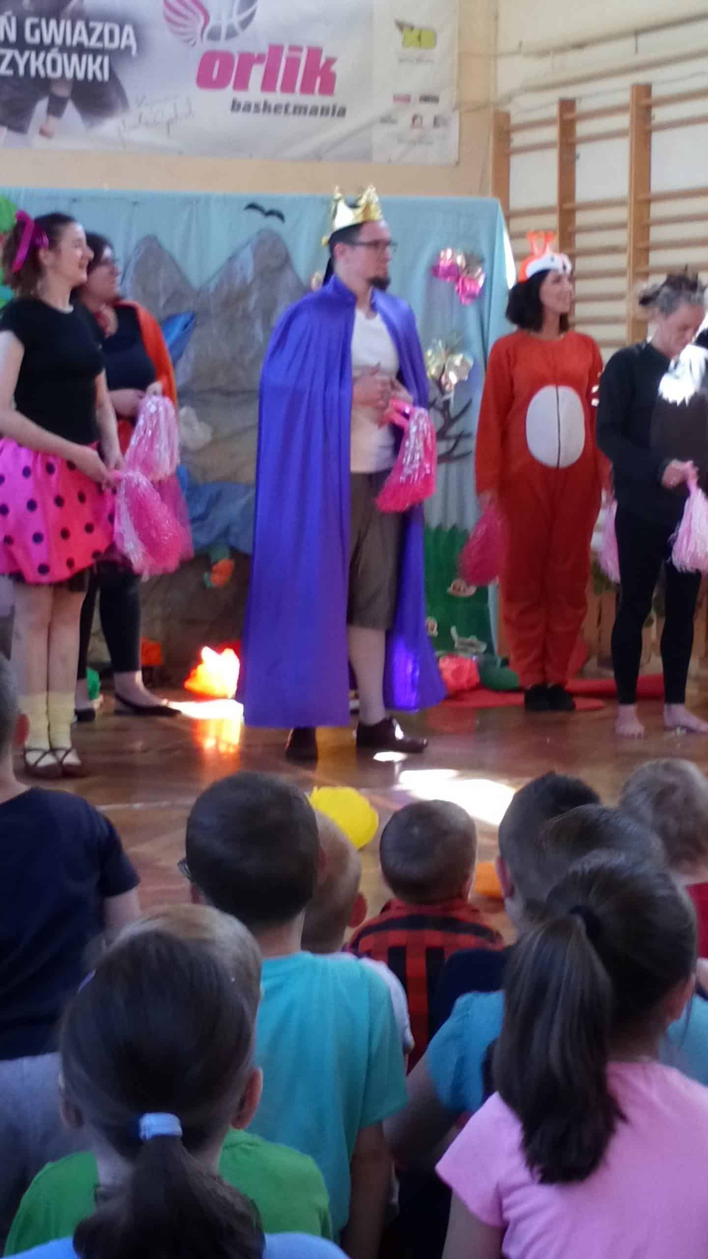 W ramach obchodów Dnia Dziecka dwie grupy Pomarańczowa i Czerwona wybrały się z wizytą do SP nr 10. Tam czekała na nas niespodzianka – przedstawienie teatralne w wykonaniu nauczycieli i rodziców. Interesujący scenariusz przedstawienia o „Księżniczce Ludwiczce”,piękna scenografia, ciekawa gra aktorska nauczycieli i rodziców bardzo zaciekawiła dzieci. Przedstawienie miało wiele ciekawych wątków, nie zabrakło też w nim walorów wychowawczych. Pani wicedyrektor szkoły przywitała dzieci i złożyła im życzenia z okazji ich święta- Dnia Dziecka. Było nam bardzo miło, że w tym dniu pamiętano o dzieciach przedszkolnych i również między innymi z myślą o nich przygotowano to przedstawienie.