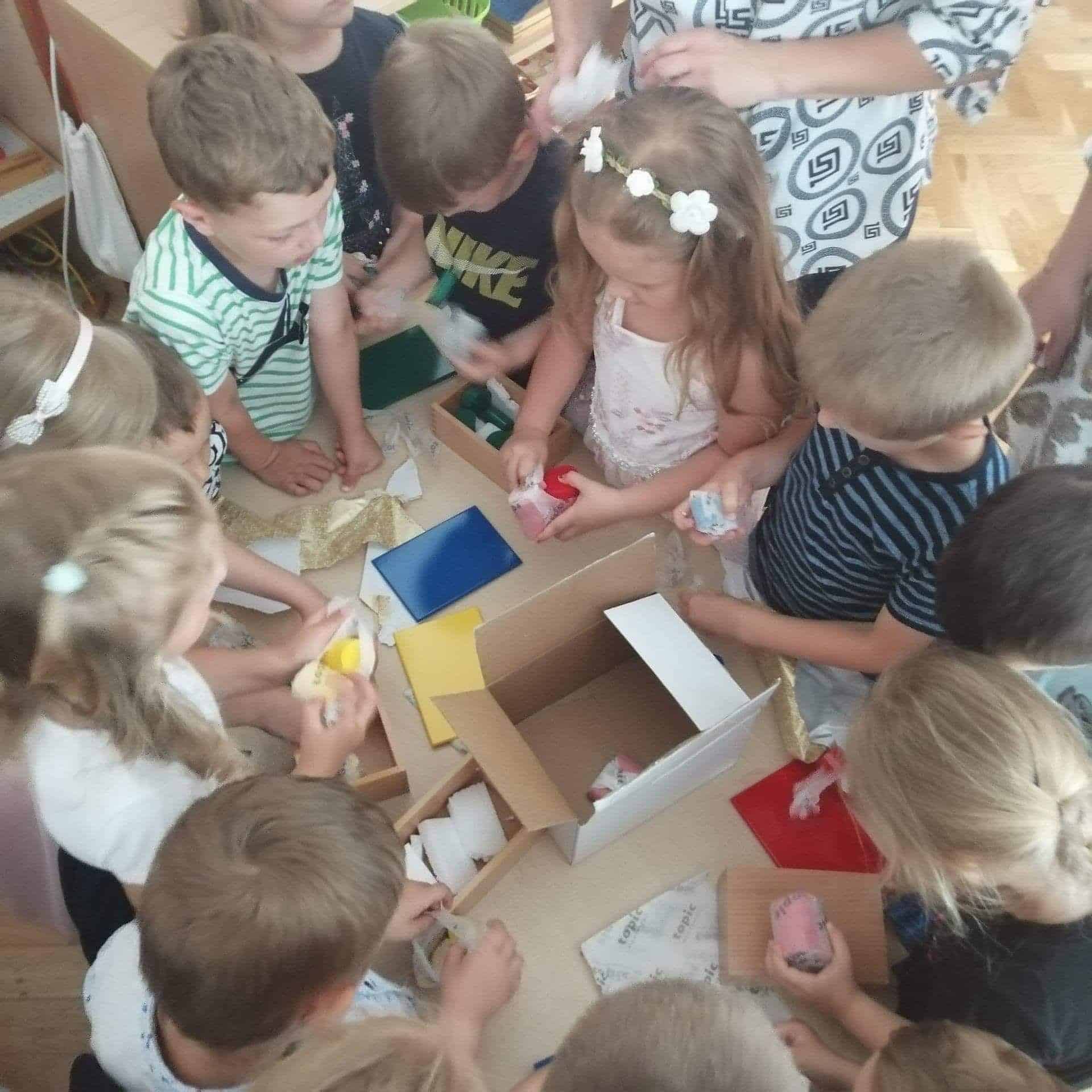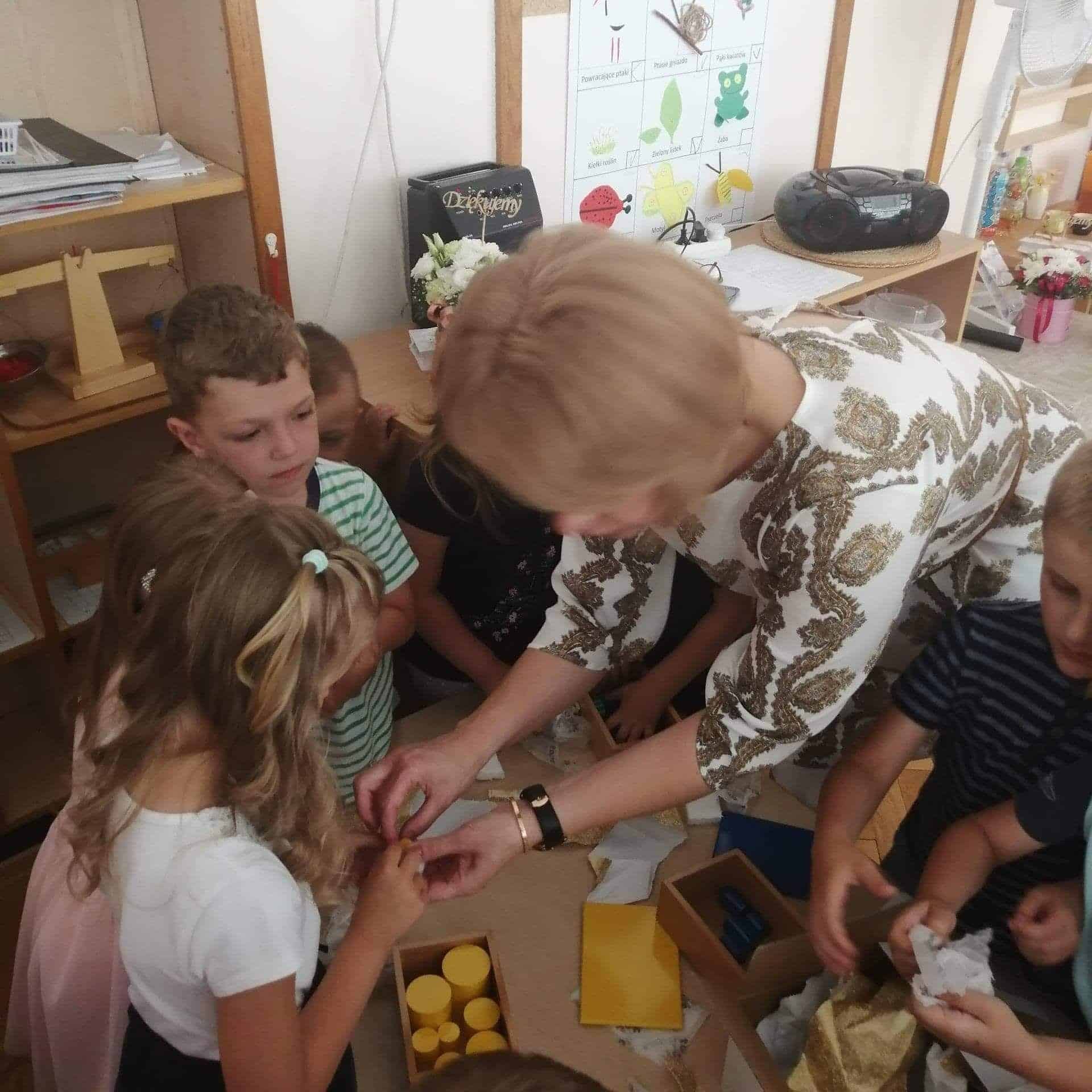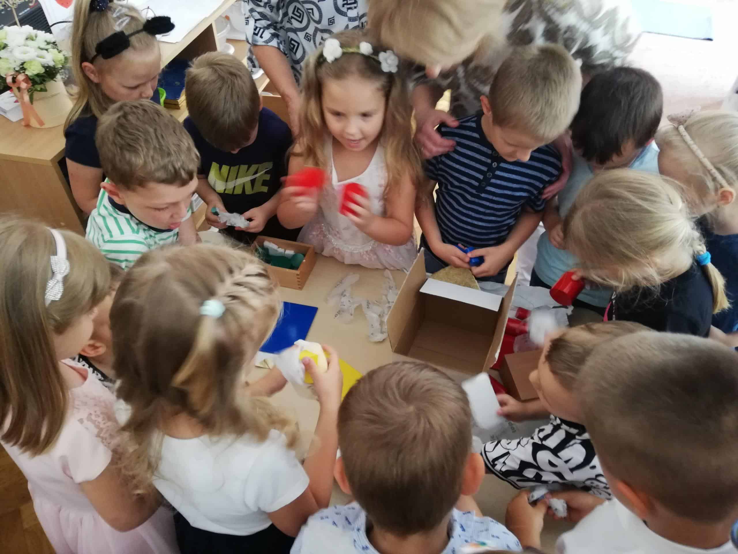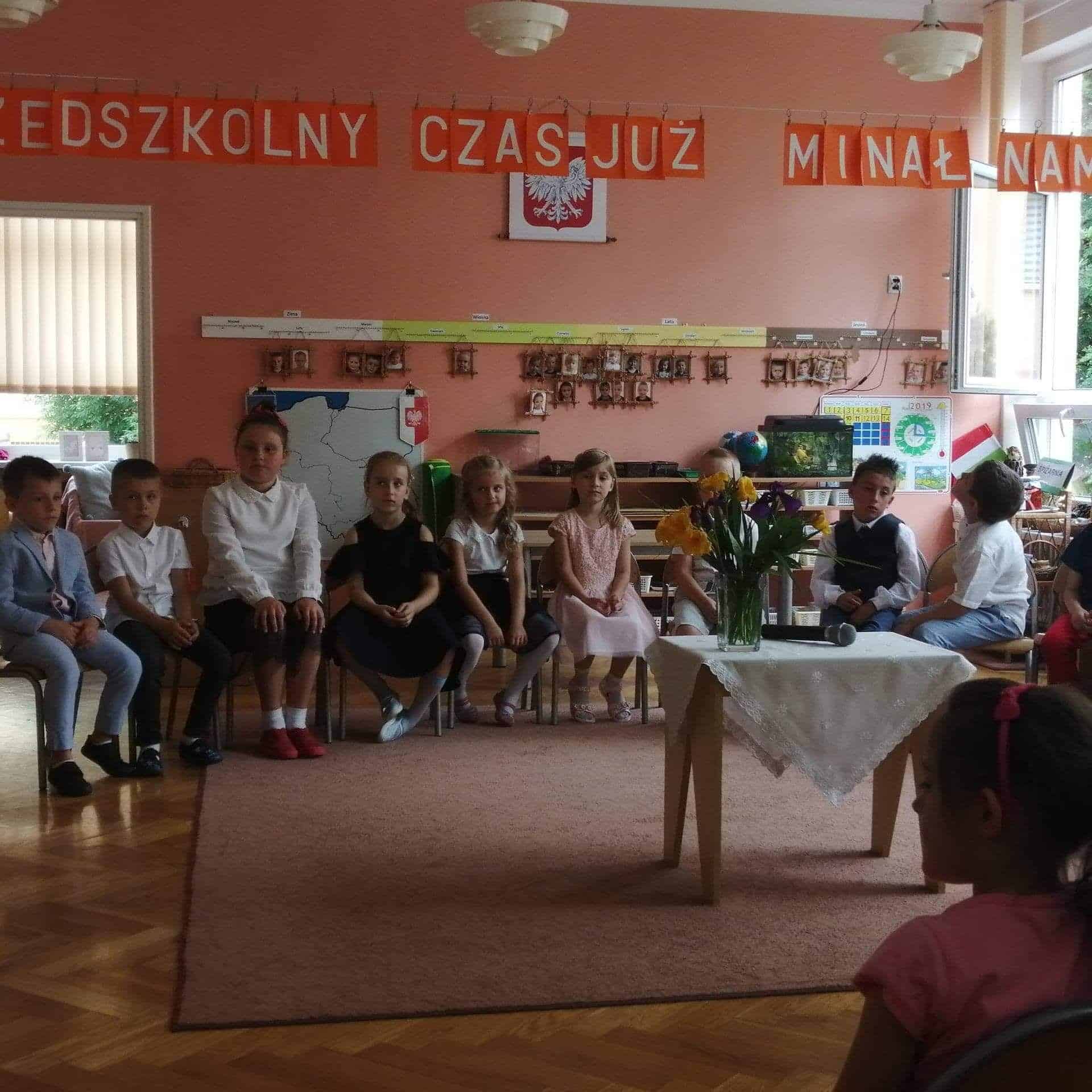 Uroczystość pożegnania dzieci kończących przedszkole zawsze wzbudza wiele emocji. Jest to symboliczny moment, kiedy zamyka się pewien okres w życiu każdego przedszkolaka. A przed nim nowe wyzwania i obowiązki wynikające z bycia uczniem. Podsumowanie tego okresu z postaci wierszy i piosenek było dla niektórych dzieci, a także Rodziców bardzo emocjonalne. Dzieci w wierszu i piosence opowiedziały o chwilach spędzonych w przedszkolu. Na pewno był to okres wytężonej pracy, zdobywania wiedzy i umiejętności  i odnoszenia sukcesów, niekiedy bardzo znaczących. Wręczenie dyplomów, pamiątkowych zdjęć i książeczek było bardzo podniosłym momentem. Wszyscy byli bardzo wzruszeni. Nie zapomniano również  o Rodzicach, którzy przez kilka lat pobytu swoich pociech w przedszkolu bardzo nas wspierali w rożnych formach działalności, organizowali różne akcje, prezentowali swoje pasje, zawody, towarzyszyli nam podczas wycieczek. To były zawsze bardzo ważne i szczególne spotkania.  Najbardziej zaangażowanym Rodzicom również wręczono podziękowania w postaci pamiątkowych dyplomów. Wyjątkowo miłym akcentem były serdeczne słowa, kwiaty i upominki dla nauczycieli. Nie zapomniano również o młodszych dzieciach. Sześcio i siedmiolatki obdarowały ich nowym materiałem montessoriańskim w postaci 4 zestawów kolorowych cylindrów. Ależ to była niespodzianka!. Ogromnie dziękujemy wszystkim Rodzicom za wsparcie, za bardzo owocną współpracę. Będziemy zawsze o tym pamiętać.  DZIĘKUJEMY !!!.