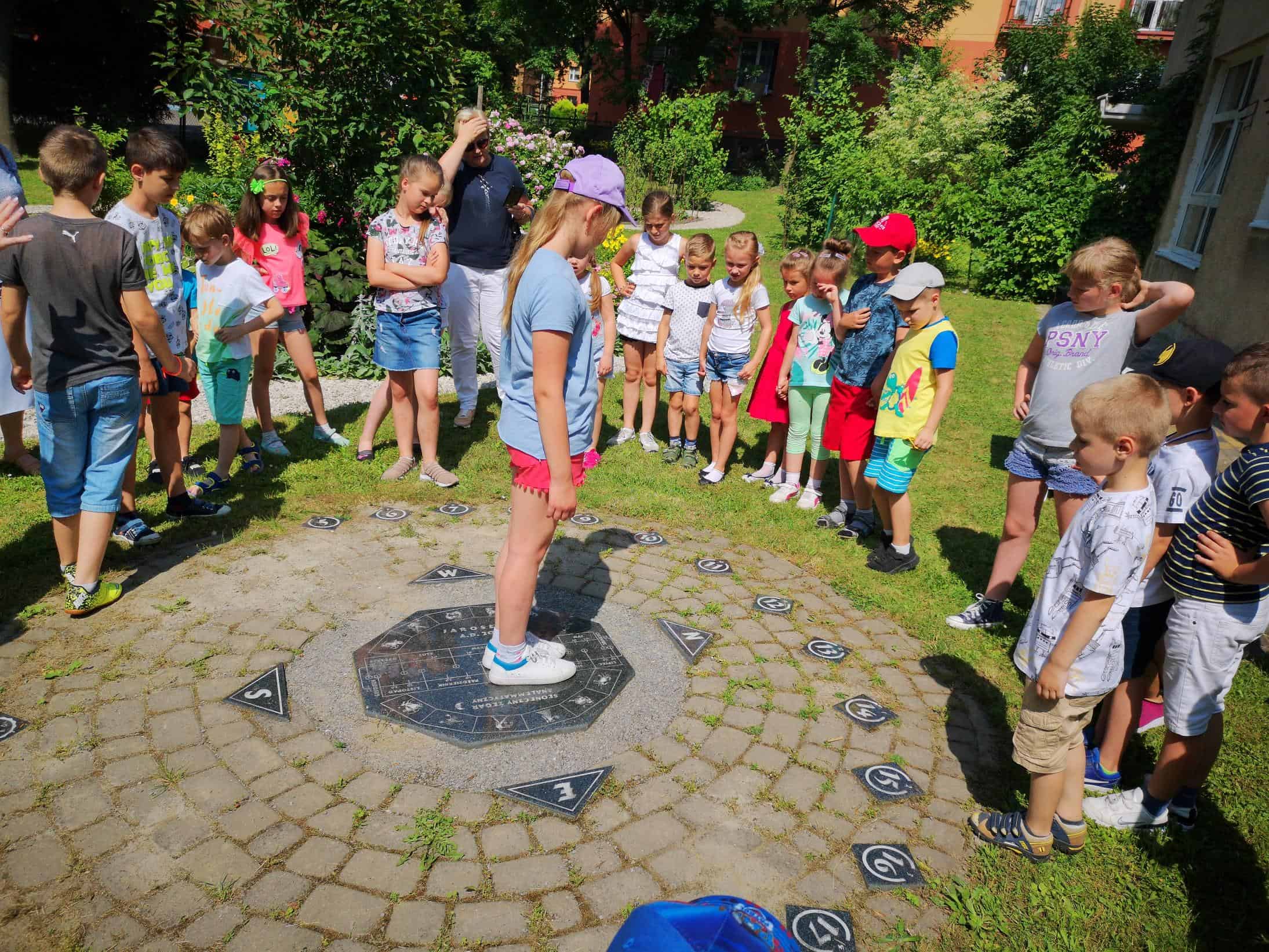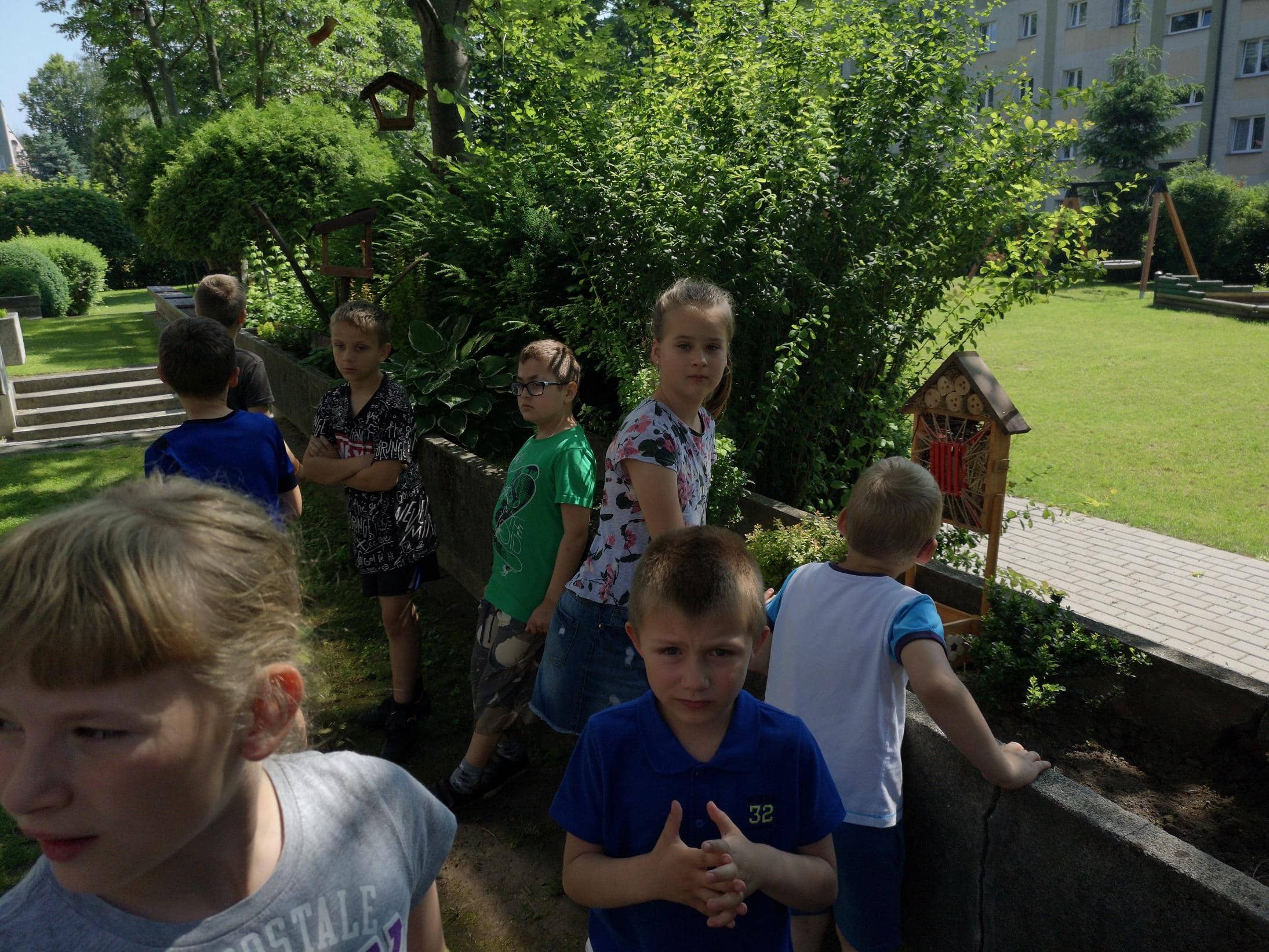 Uczniowie z ogromnym zainteresowaniem oglądali budki lęgowe, domki dla owadów, stację meteorologiczną, gdzie odczytywali ciśnienie, temperaturę powietrza oraz ilość opadów, a także godzinę na zegarze słonecznym.