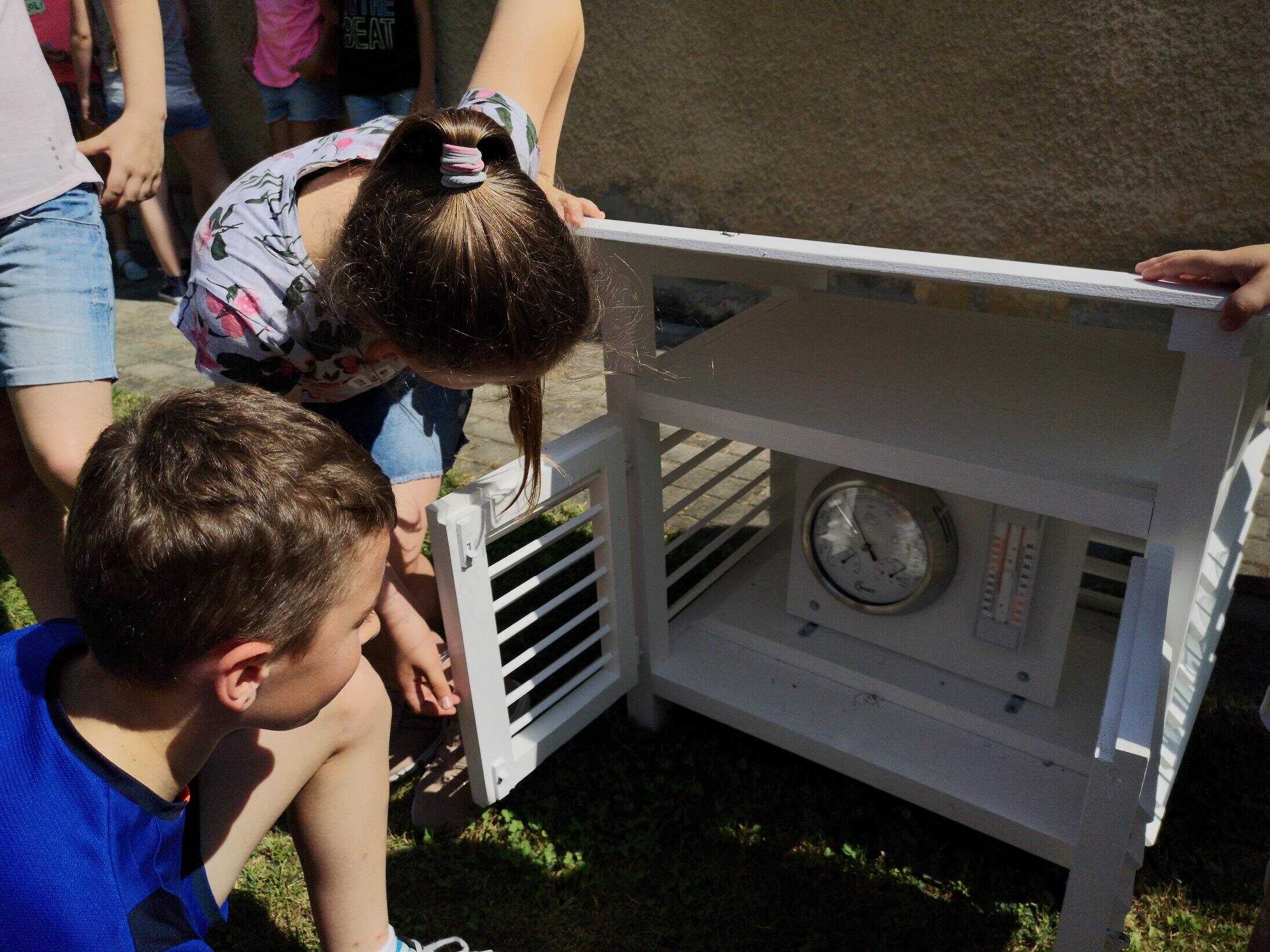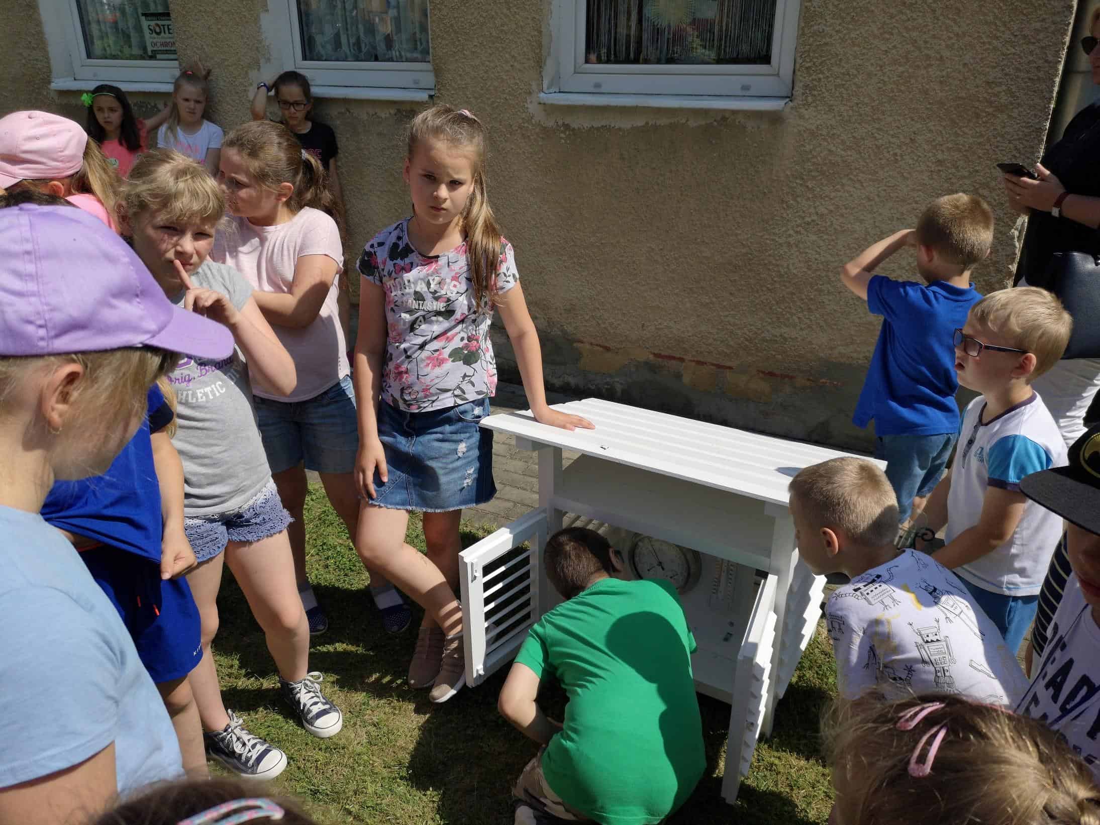 Niezwykłe zainteresowanie przedszkolaków wzbudziła stacja pogodowa. Jej rolę oraz znajdujące się w niej przedmioty zaprezentowali dzieciom rodzice. Objaśnili potrzebę pomiaru opadów i wykorzystania barometru w obserwacji pogodowych zmian. Nowa stacja pogody to bardzo istotny wkład w gromadzenie urządzeń pozwalających na jej obserwację. Na zewnątrz przedszkola działają już wiatromierze, a w sprzyjających warunkach można odczytać czas ze słonecznego zegara.