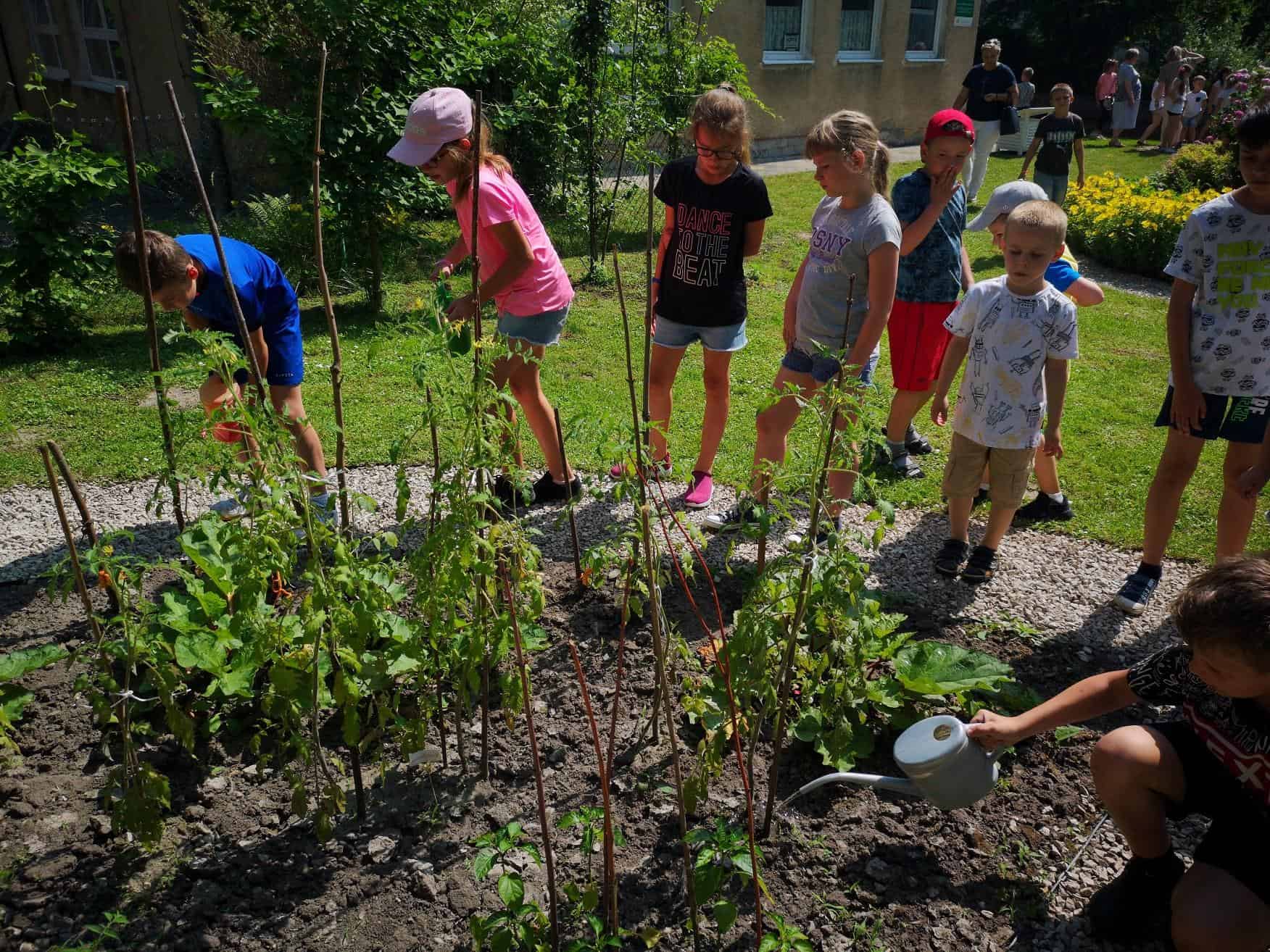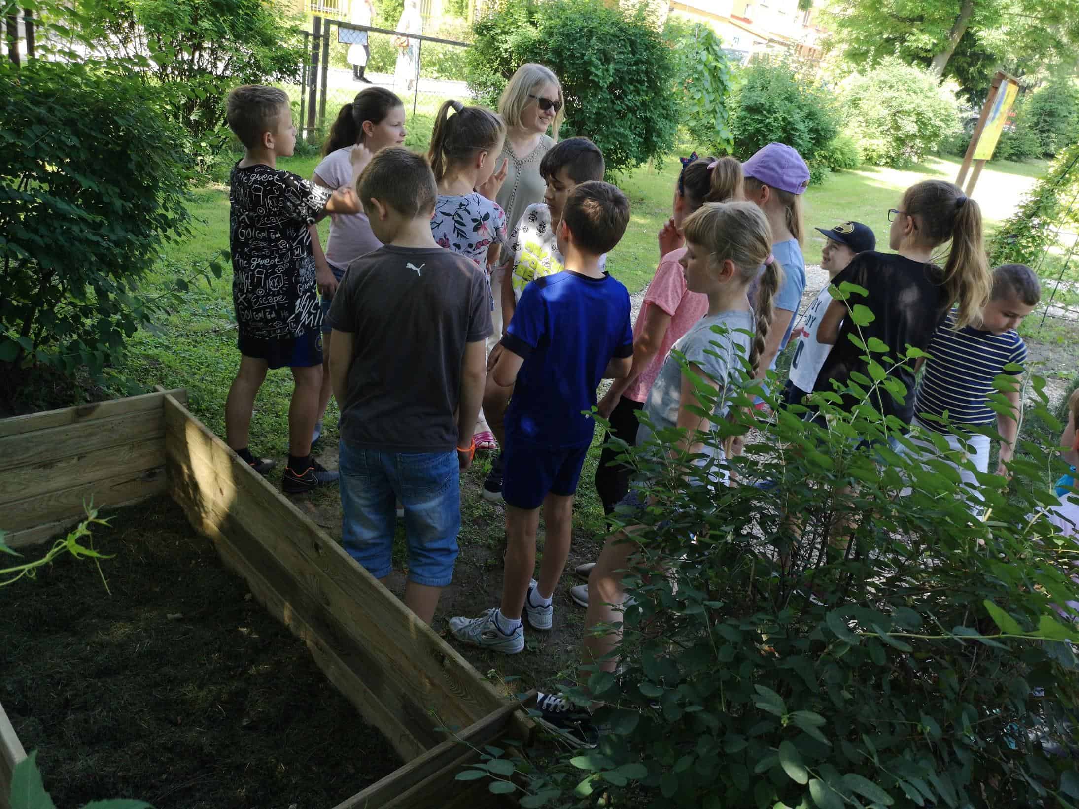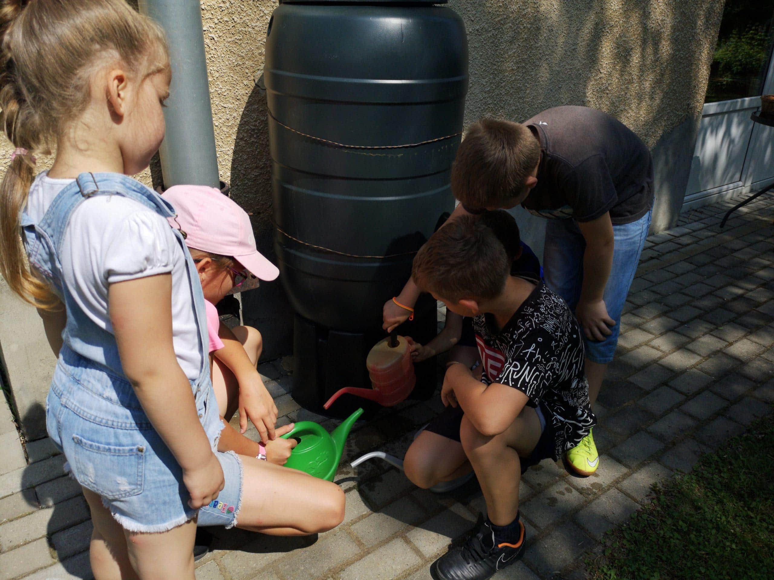 Nasi Goście wykazali się dużą wiedzą, nie sprawiły im trudności pytania na temat kompostownika i kompostu, który ze względu na swoje walory nazywany jest przez ogrodników „czarnym złotem” albo „sercem ogrodu”, wiedzieli także jakie są zalety deszczówki, którą ochoczo nalewali z beczki do konewek i podlewali roślinki na Przyrodniczej Ścieżce.
