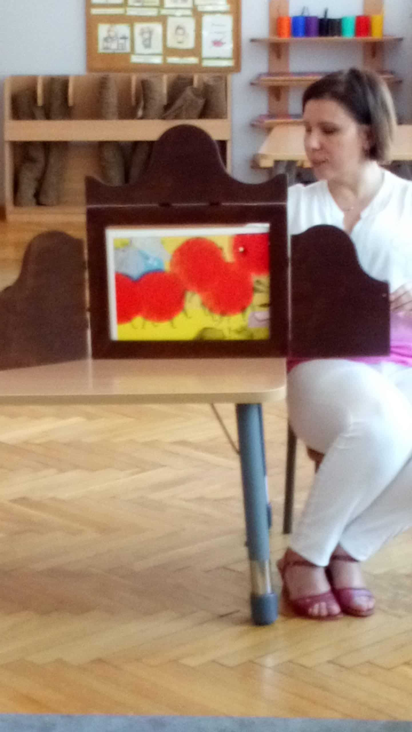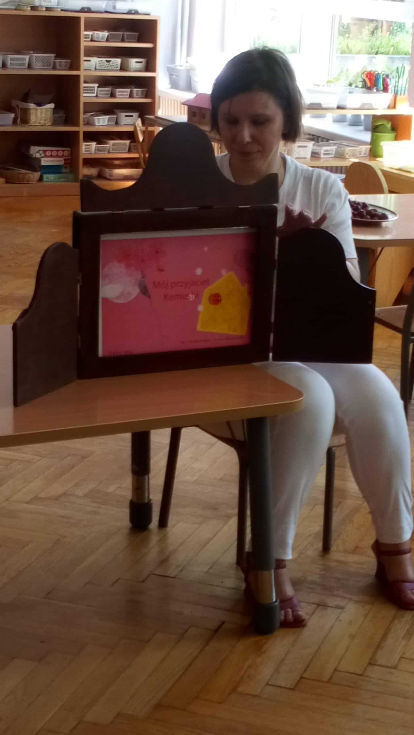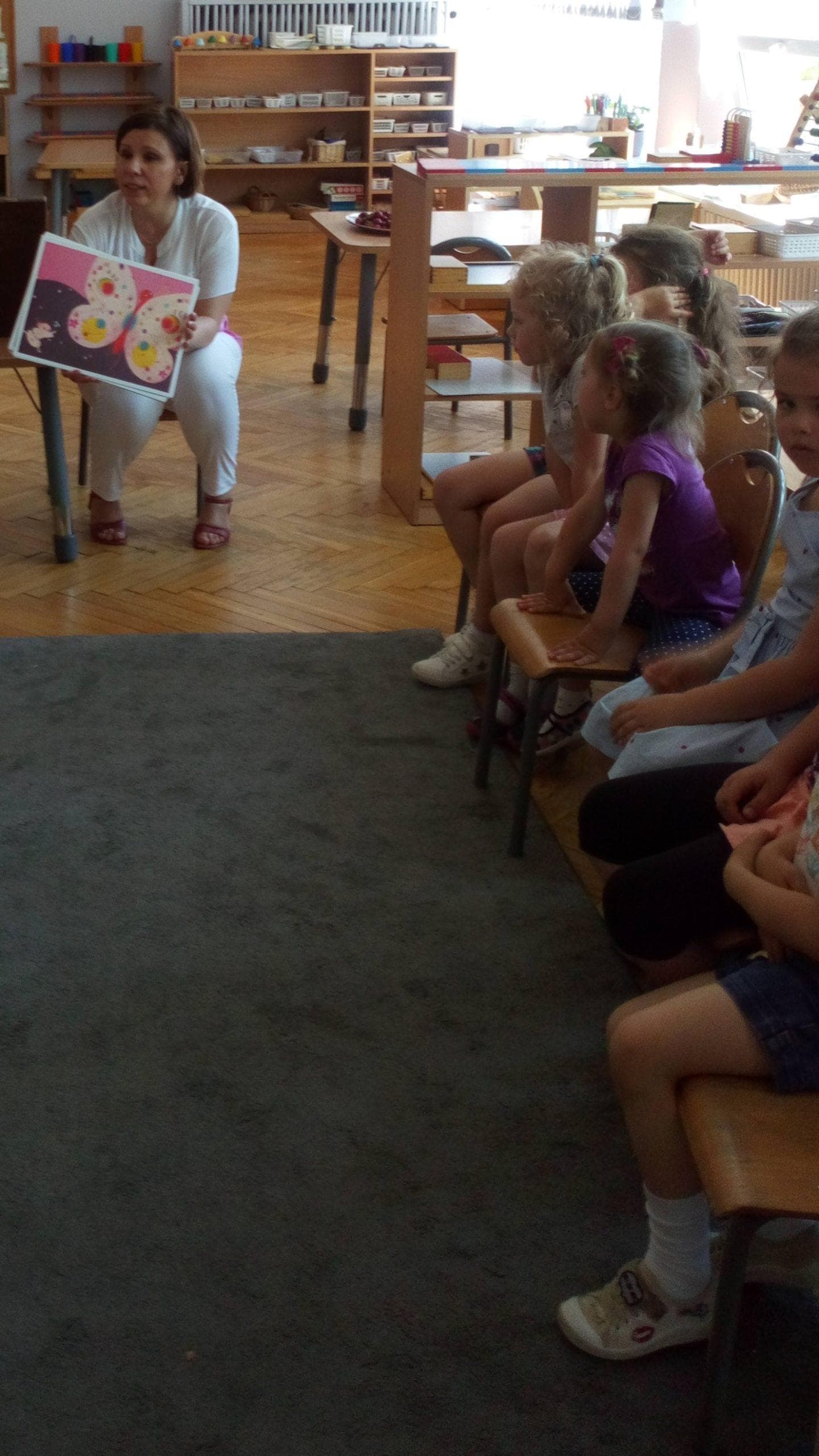 Żeby opowiadać o przyrodzie wcale nie trzeba być na łące, w lesie czy w ogrodzie. Wystarczyło zjawić się we wtorek 11 czerwca w naszej grupie, aby wysłuchać Pani Dorotki, mamusi naszego Przemka, która w niezwykle barwny i ciekawy sposób opowiedziała nam o motylu imieniem Kemushi. Było to o tyle wyjątkowe spotkanie, że Pani Dorotka przedstawiła nam tę historię za pomocą sztuki Kamishibai – japońskiej techniki czytania bajek lub inaczej teatru ilustracji. Za pomocą kartonowych plansz z obrazkami poznaliśmy historię mówiącą o przemianach w przyrodzie wraz ze zmieniającymi się porami roku. Narrator opowieści, dziecko, zabrało nas w swój mały świat, w którym fascynowała go gąsienica mieszkająca w małym domku na drzewie. Każdego dnia przychodził tam i obserwował to stworzenie nazwane przez niego Kemushi ( co w języku japońskim oznacza gąsienica), które całą zimę rosło i dojrzewało schowane pod ciepłą ,,kołderką”. Czas mijał a gąsienica z dnia na dzień stawała się coraz większa. W domku, w którym mieszkała było już jej za ciasno. Kiedy owocowe drzewa przekwitły a ,,płatki spadły jak konfetti”, kokon pękł a Kemushi stała się pięknym motylem. „Płatki opadają, a on odlatuje.”