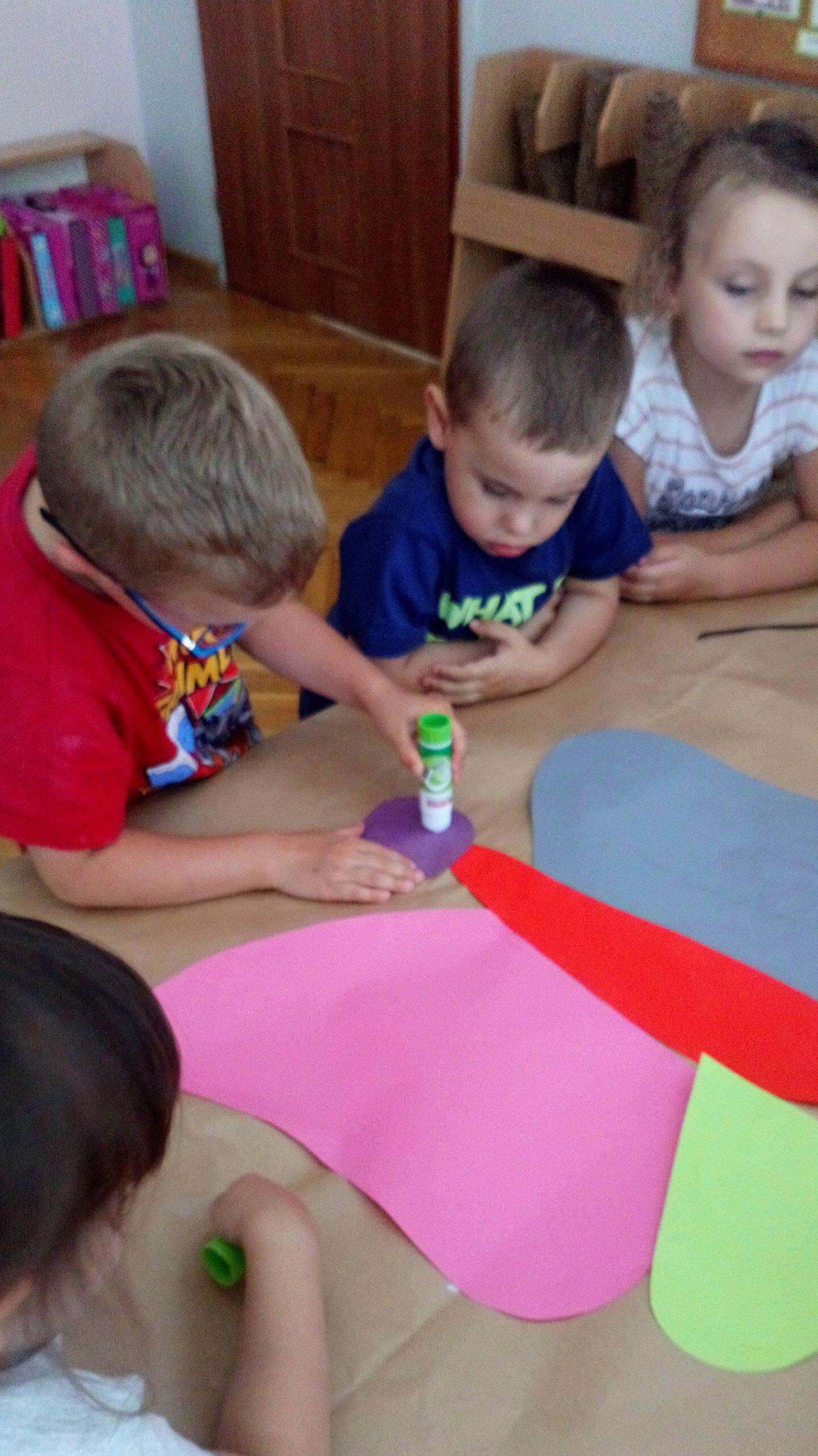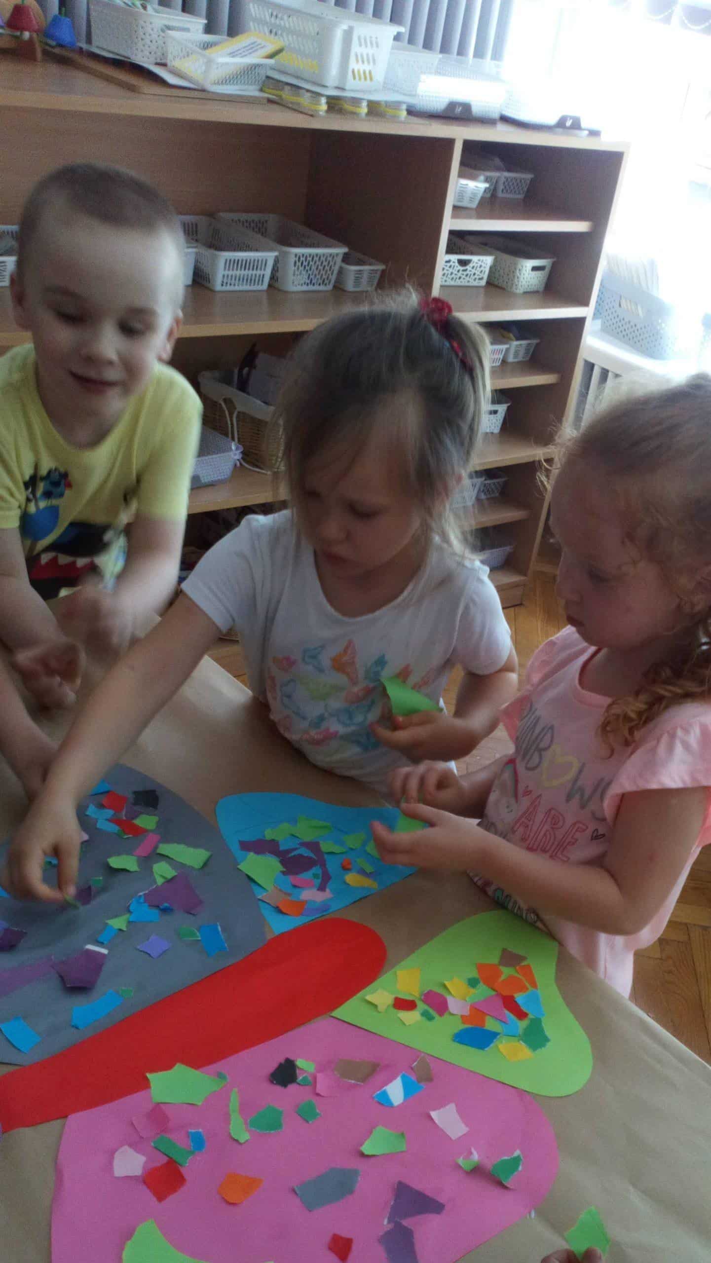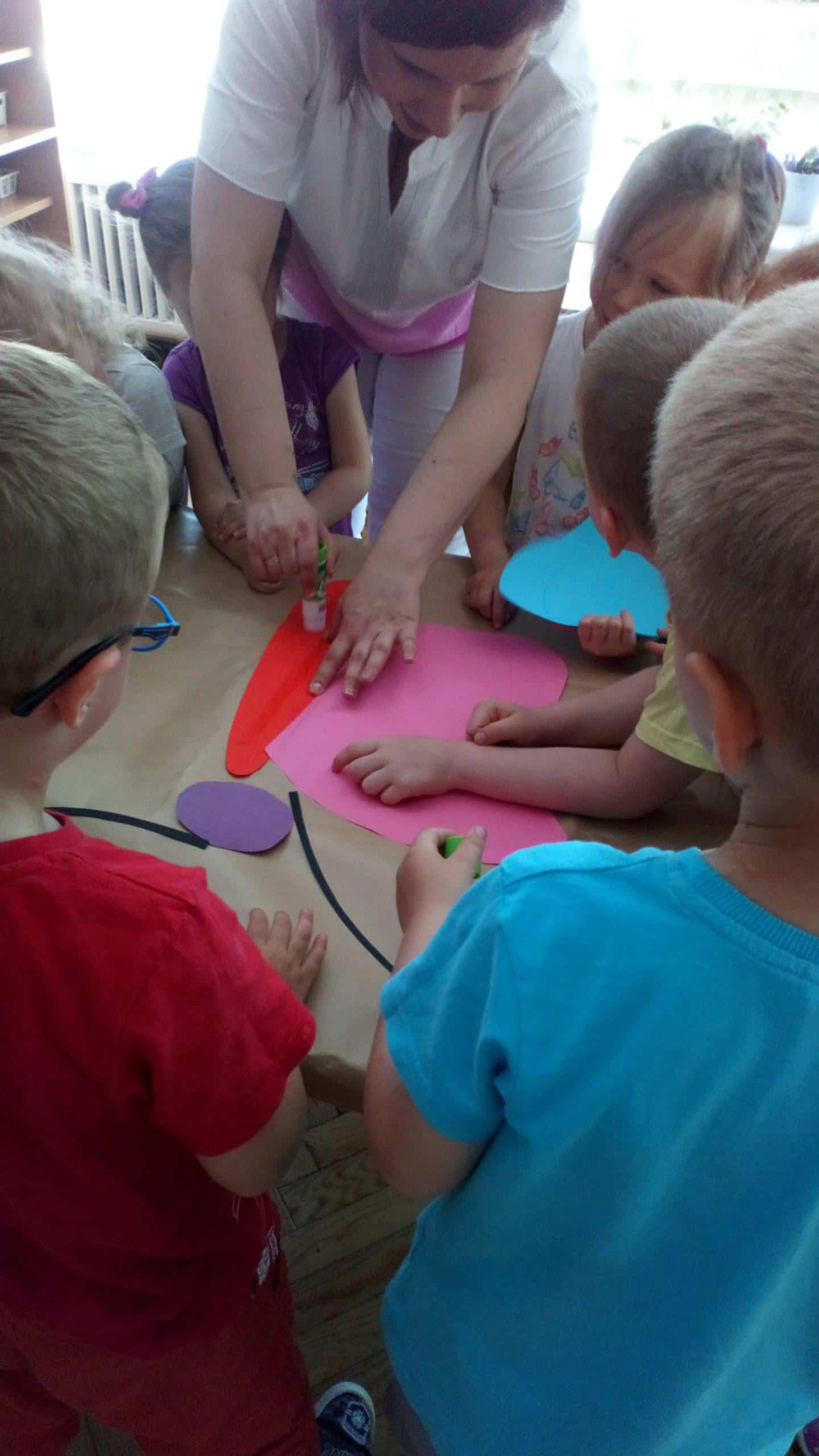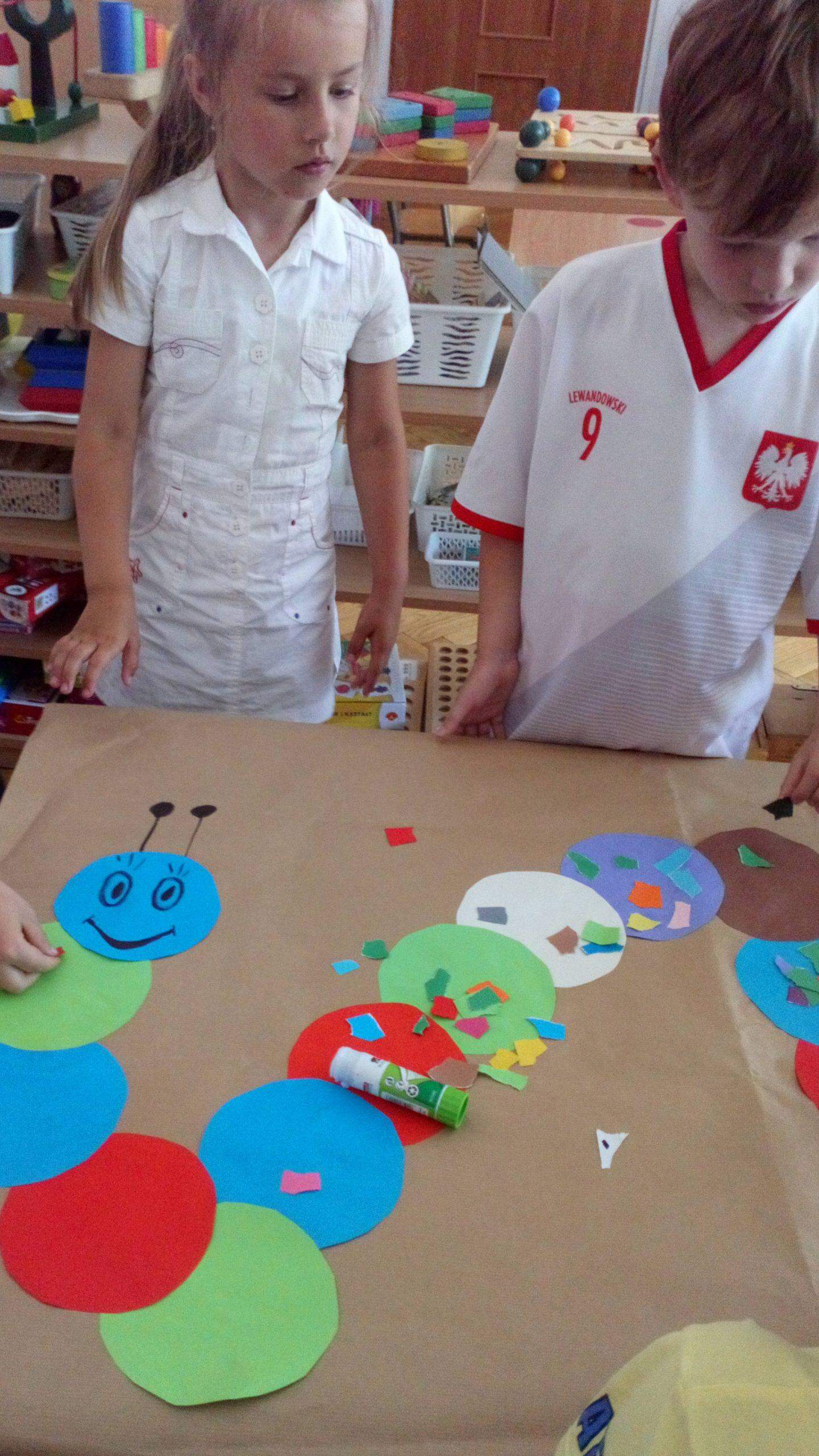 Po warsztatach czytelniczych odbyły się także zabawy ruchowe – Motyle i Gąsienice, oraz działania plastyczne dzieci, podczas których zostały tworzone motyl i gąsienica. Ach, ile przy tym było radości…Pani Dorotka powiedziała: No cóż kochani, nie było zbyt cicho, ale za to bardzo twórczo 🙂 i miała rację, bo spod rąk dzieci wyszły naprawdę piękne prace!