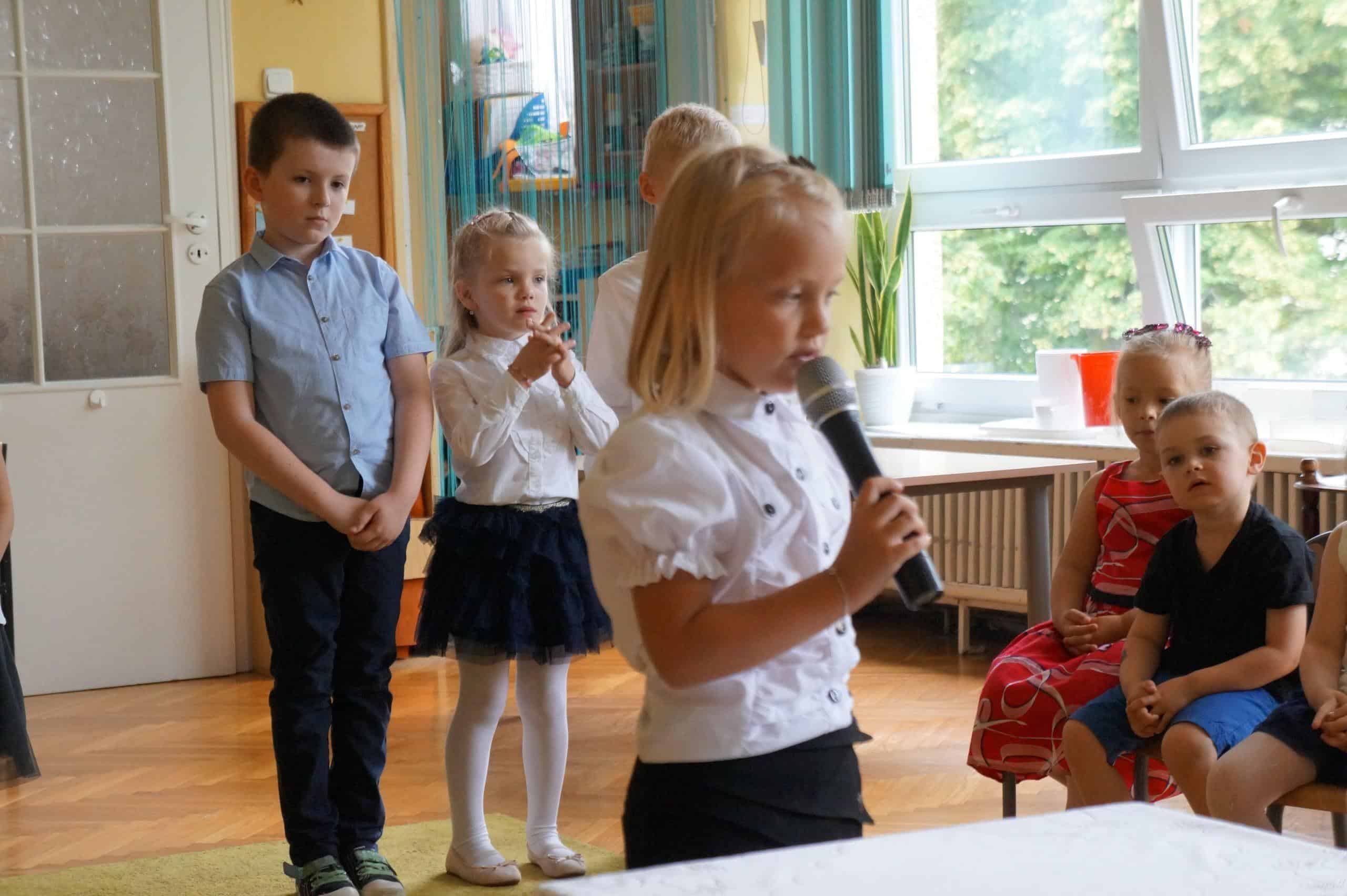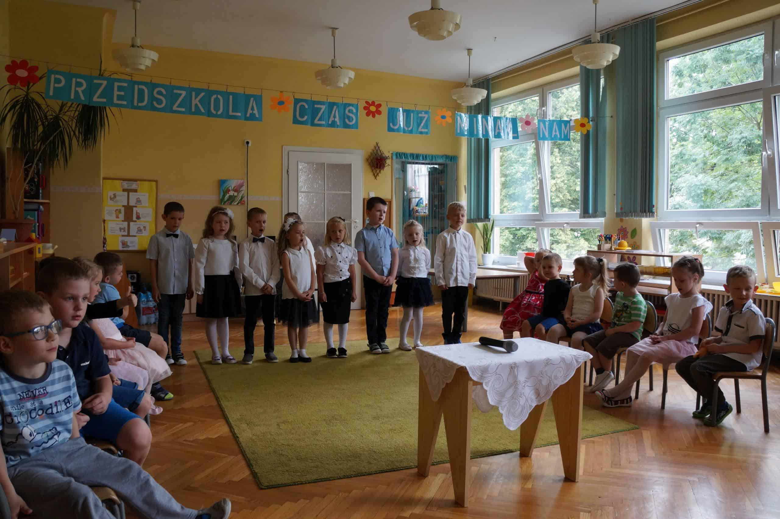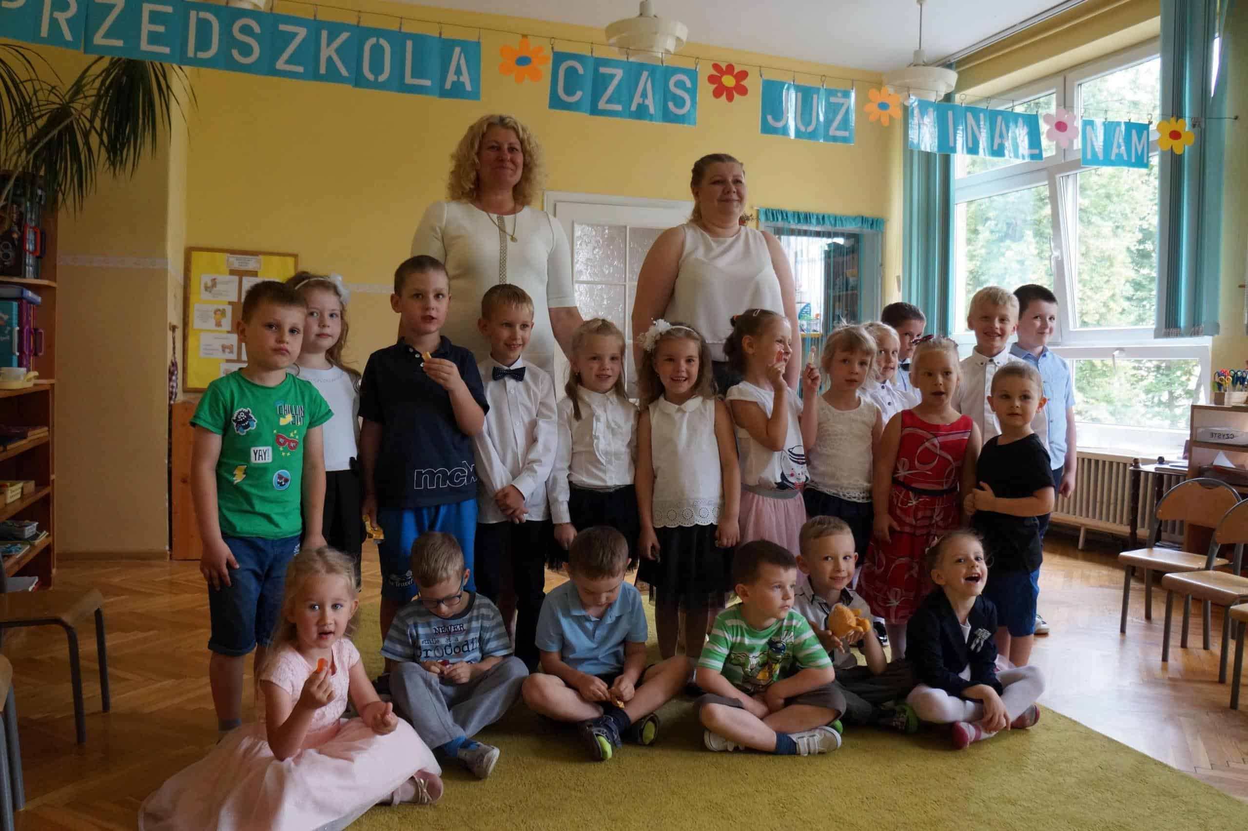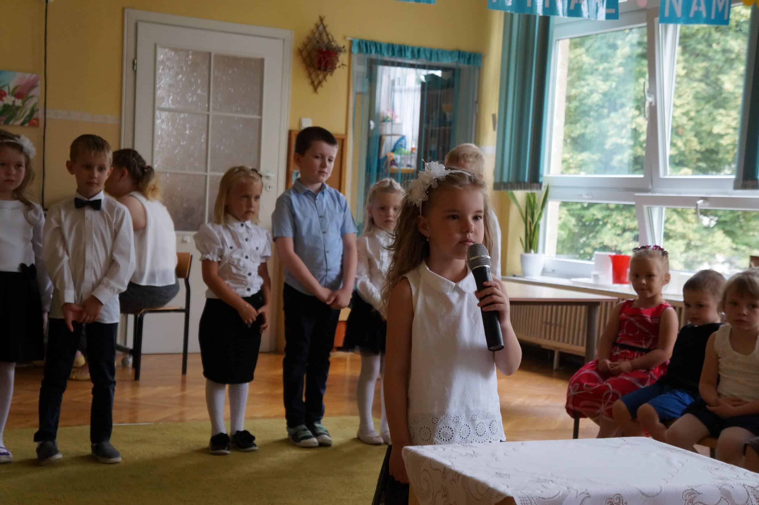 18 czerwca w naszej grupie odbyło się uroczyste pożegnanie dzieci odchodzących do szkoły. W tym pięknym czerwcowym dniu młodsze dzieci pożegnały swoich kolegów i koleżanki którzy zaczną w nowym roku szkolnym swoją przygodę ze szkołą zaś Starszaki, które po wakacjach idą do szkoły żegnały przedszkole krótkim programem artystycznym. Były piosenki i wierszyki, które opowiadały o pożegnaniu, tęsknocie, ale i nowych zadaniach czekających przed przyszłymi uczniami. Na pamiątkę tego wydarzenia dzieci otrzymały dyplomy, książki nie zabrakło również słodkiego poczęstunku. Wszystkim Rodzicom dziękujemy za zaangażowanie w pracę przedszkola i grupy a dzieciom życzymy radości , powodzenia w szkole, nowych przyjaźni i udanych bezpiecznych wakacji.