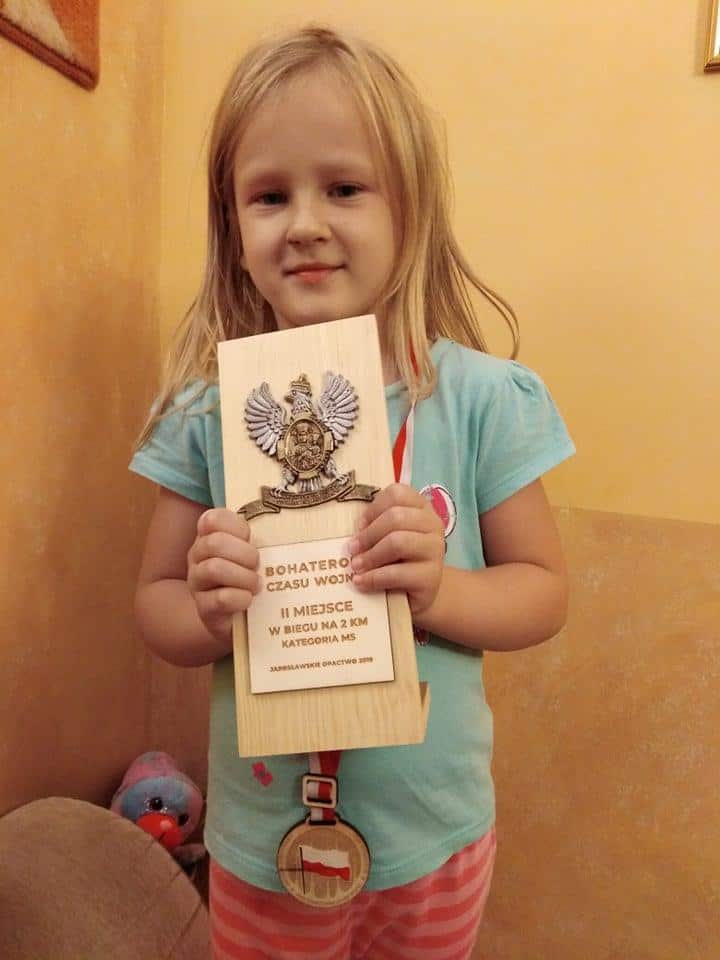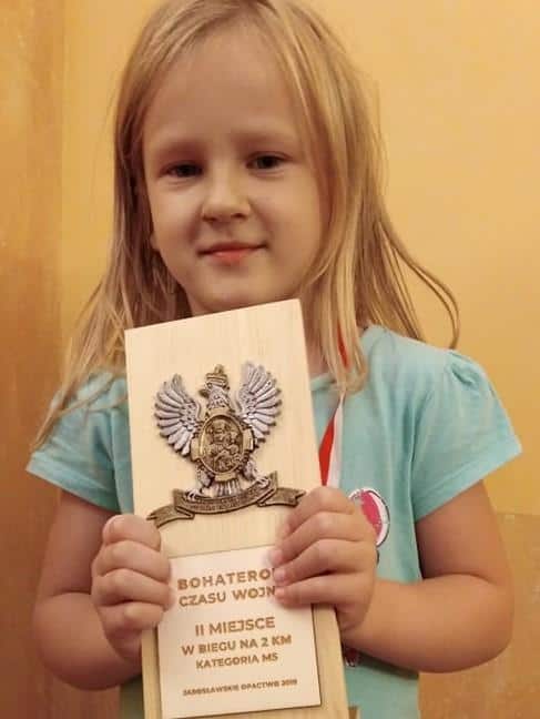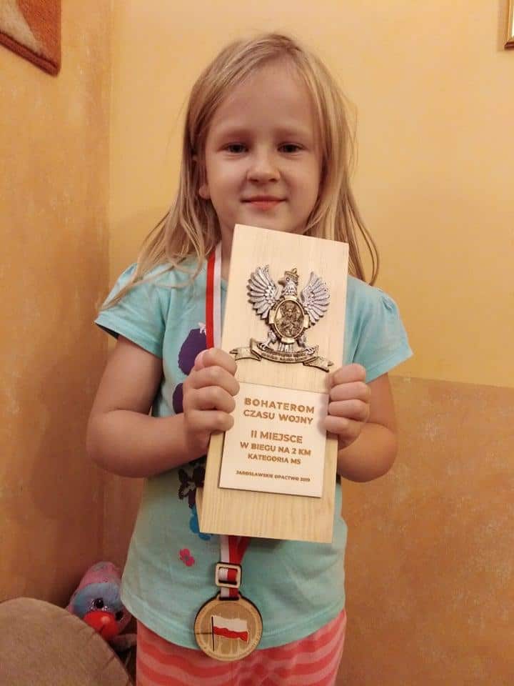14 września 2019 r. na jarosławskich ulicach, pod hasłem „Bohaterom czasu wojny”, odbyła się Pielgrzymka Biegowa upamiętniająca 80 rocznicę polskiej wojny obronnej 1939 r. W tym właśnie wydarzeniu wzięła udział nasza Zuzia. Biegnąc na dystansie 2 kilometrów zajęła wysokie, bo aż drugie miejsce, za które została odznaczona pamiątkowym medalem i statuetką. Bardzo serdecznie GRATULUJEMY naszej biegaczce i życzymy dalszych sukcesów sportowych. Zuziu, mamy nadzieję, że będziesz rozwijać swój sportowy talent a ten medal stanie się początkiem Twoich wielkich sukcesów. Obyś stała się dla innych inspiracją do aktywnego spędzania czasu a przy tym rozbudzania w sobie uczuć patriotycznych i pielęgnowania wartości narodowych.