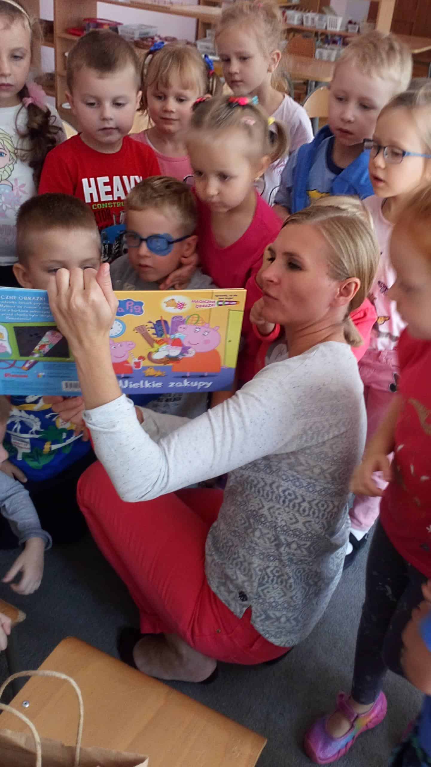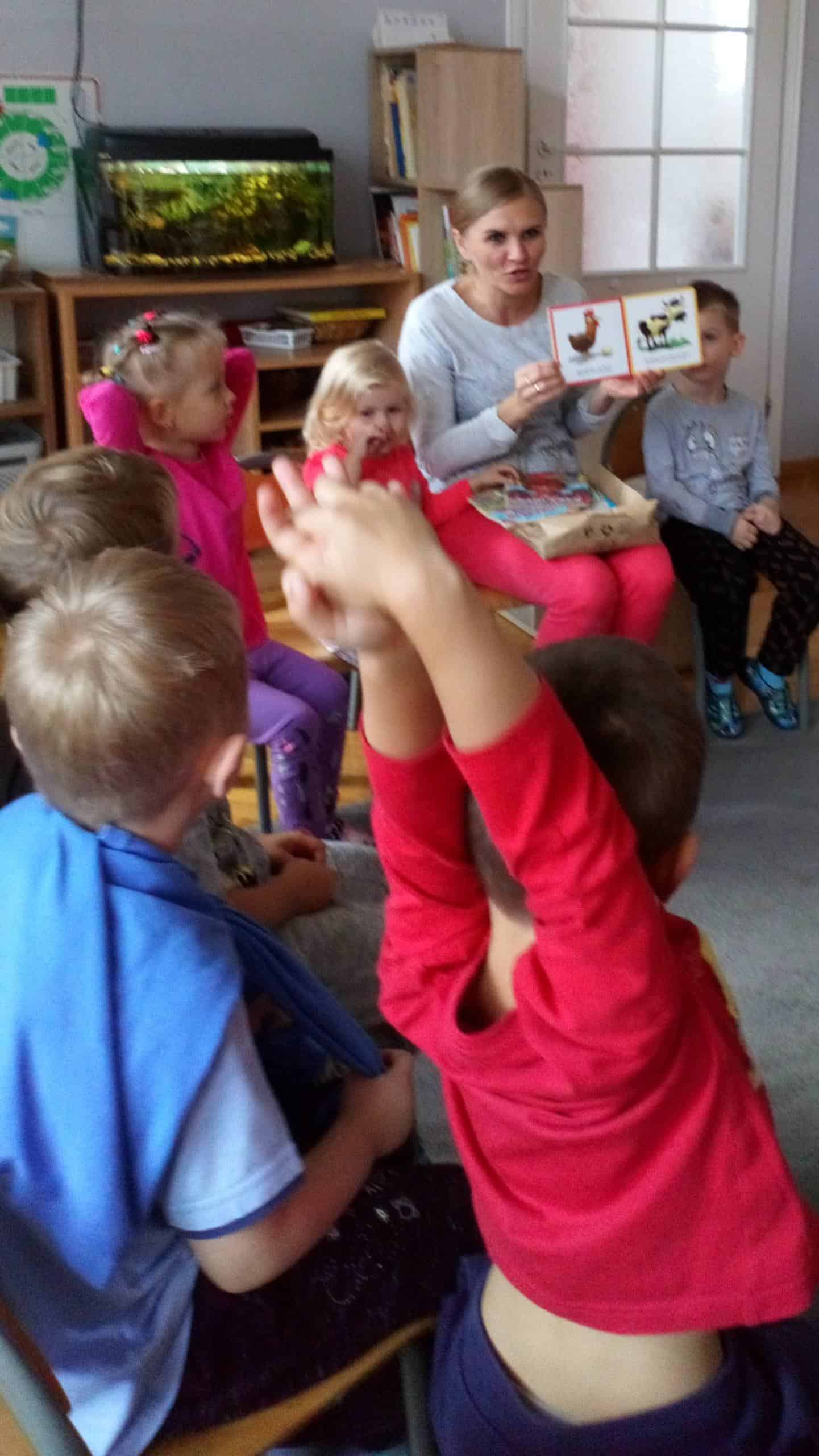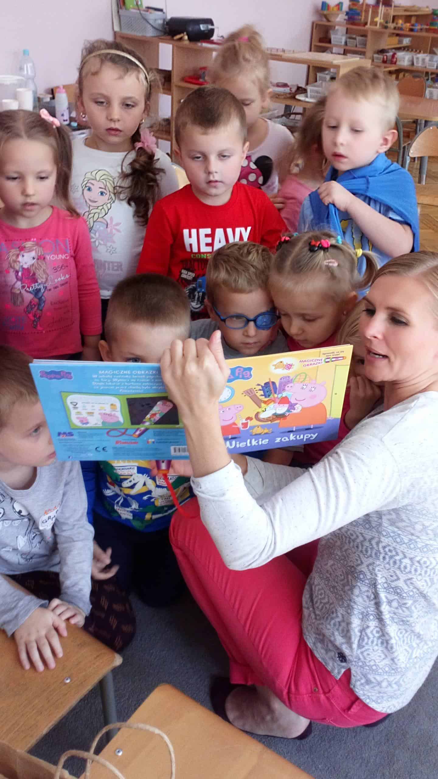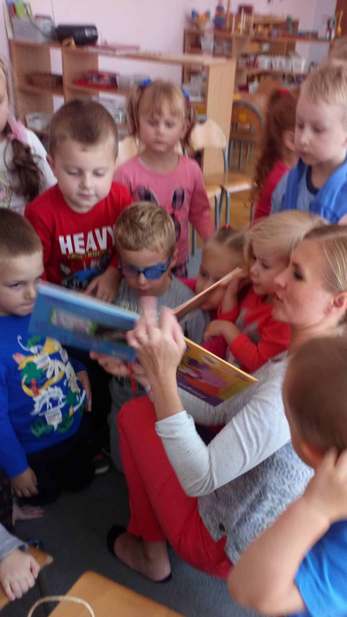 Takie właśnie spotkanie odbyło się u nas w piątek, 20 września, kiedy do naszej grupy zawitała Pani Agnieszka – mamusia Wiktorii i przeczytała dzieciom ulubione książeczki córki. Mogliśmy posłuchać o zwierzętach na wsi i o „Małpce w kąpieli”, którą Wiktoria znała na pamięć i była drugim głosem mamusi, ale największą furorę zrobiła interaktywna książeczka z latarką, która pomagała dzieciom odszukiwać wskazane przedmioty lub postacie nie będące widoczne bez niej. Na koniec Pani Agnieszka poczęstowała dzieci cukierkami i zachęcała do wspólnego czytania z rodzicami.