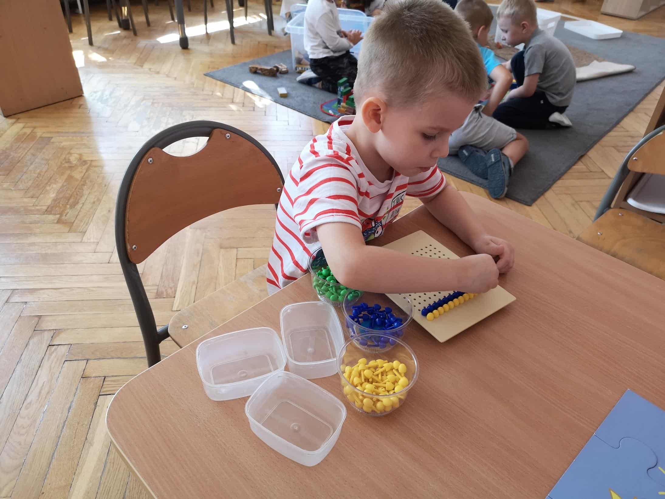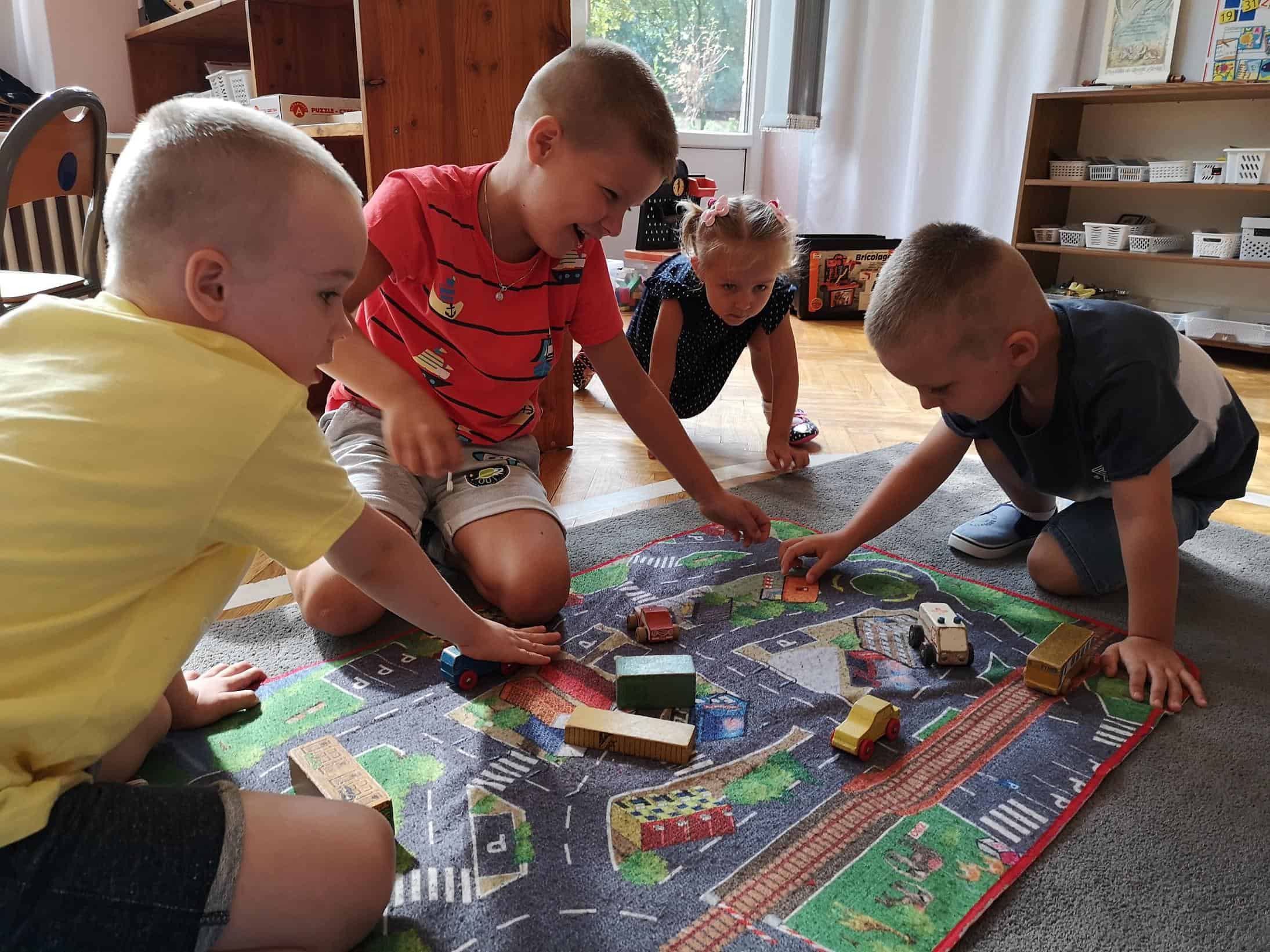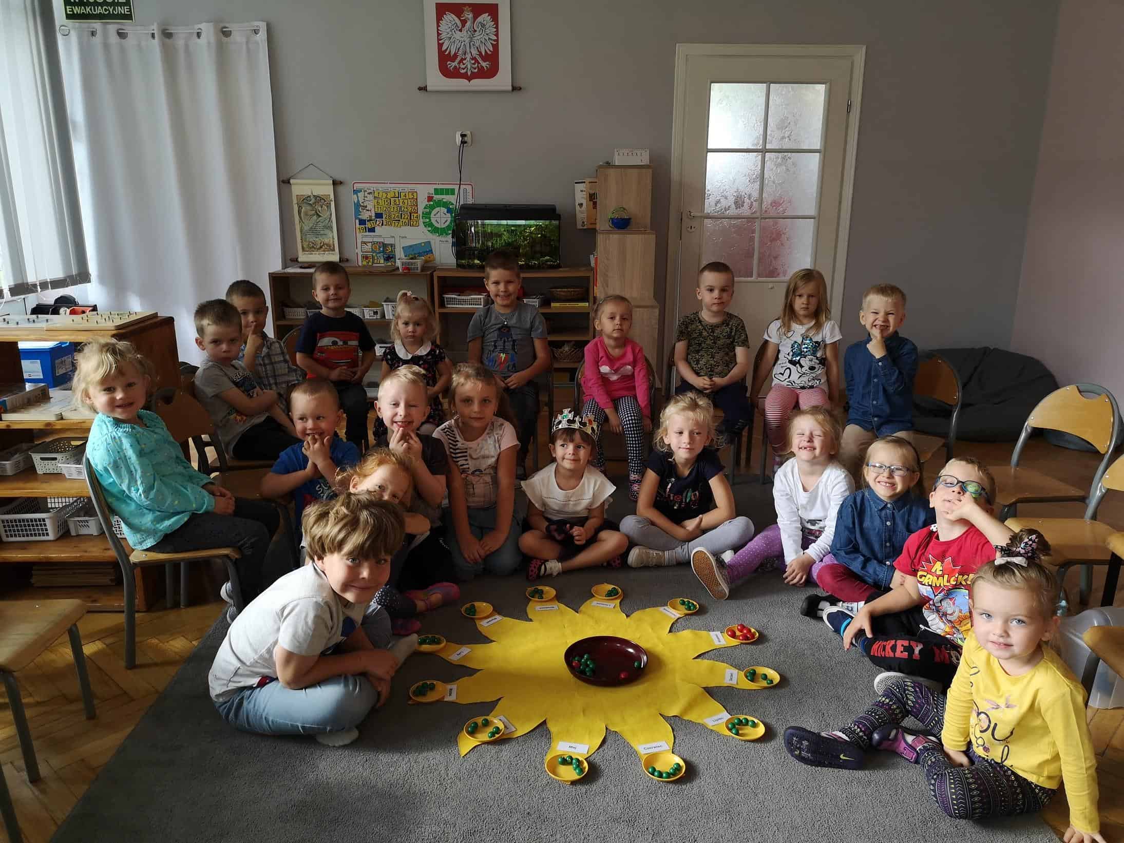 Ogromnym wydarzeniem i przeżyciem w życiu prawie każdego dziecka są pierwsze kroki w przedszkolu. Jest to zarazem rozpoczęcie nowego okresu w rozwoju dziecka. Rozłąka z rodzicami, nowe środowisko przedszkolne, nowe zasady i coraz to nowe wyzwania. W tym roku szkolnym dołączyli do grupy Pomarańczowej: Jowitka, Helenka, Milenka, Przemuś, Natanek, Karolek, Maksiu, Szymonek, Krzyś i Jerzyk. Od pierwszego dnia stwarzano warunki do łagodnej adaptacji dzieci, organizowano wspólne zabawy, gry, zajęcia dzieci już wcześniej uczęszczających do przedszkola z tymi, które pierwszy raz w tym roku szkolnym przekroczyły próg przedszkola . Od pierwszego dnia skupiano uwagę na dziecku, jego potrzebach, możliwościach i zainteresowaniach. Wspólnie z dziećmi wypracowywano zasady i normy społeczne obowiązujące w grupie, uczono postaw społecznie pożądanych. Współżycie i współdziałanie w grupie to bardzo trudna i złożona umiejętność, którą dzieci uczą się przez wiele lat. Treścią jej jest stosunek do drugiego dziecka. Zawiązały się pierwsze przyjaźnie, dzieci z ochotą uczestniczą w wielu zabawach integracyjnych.