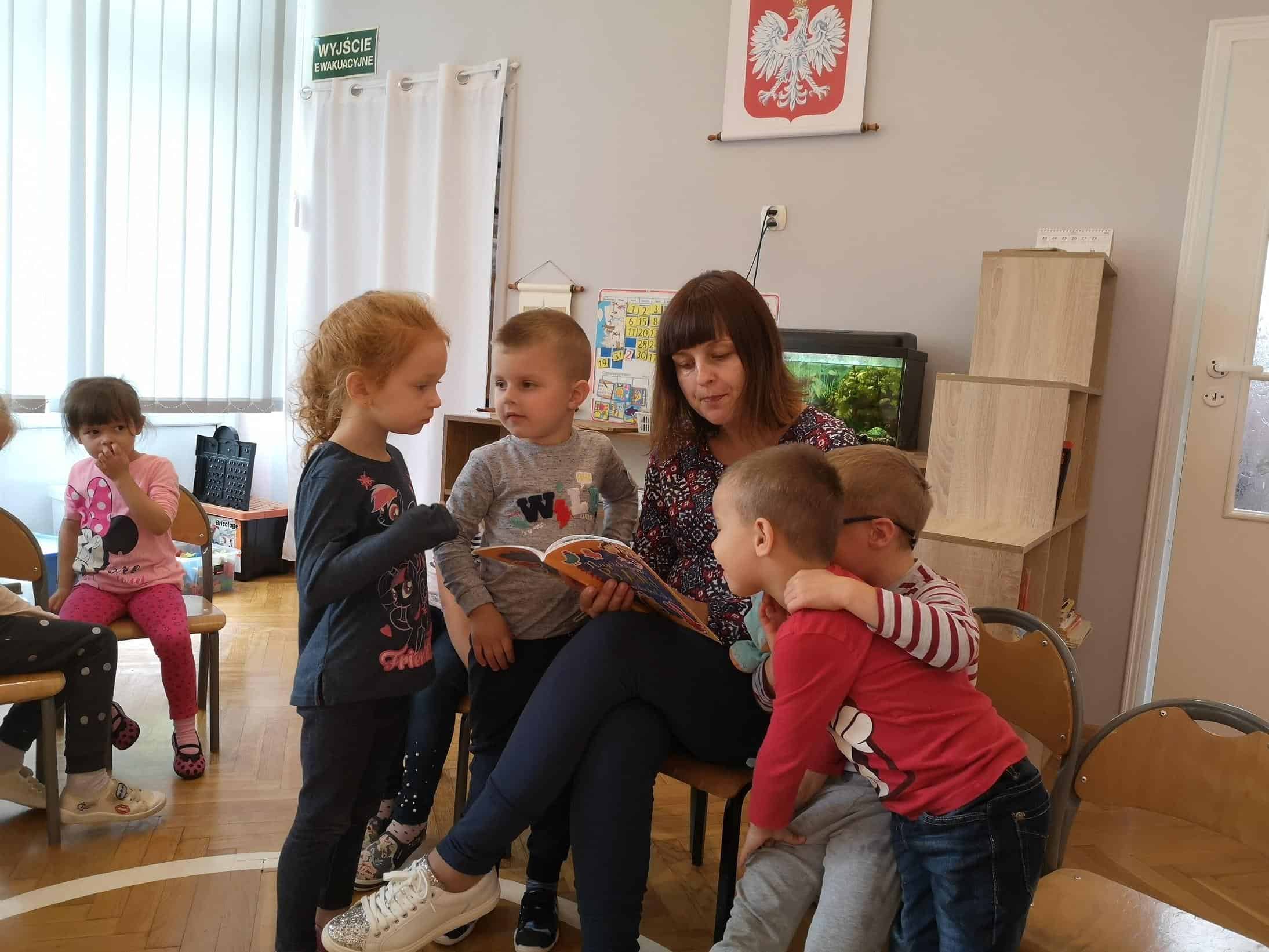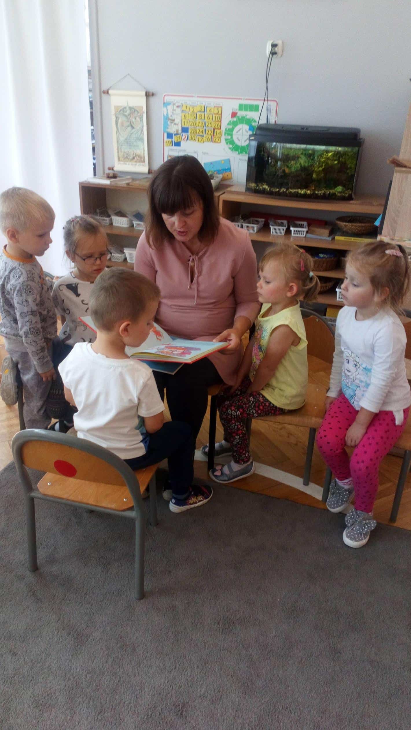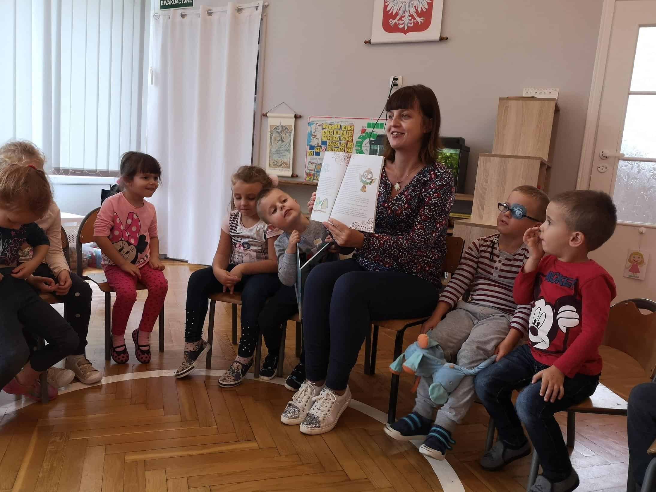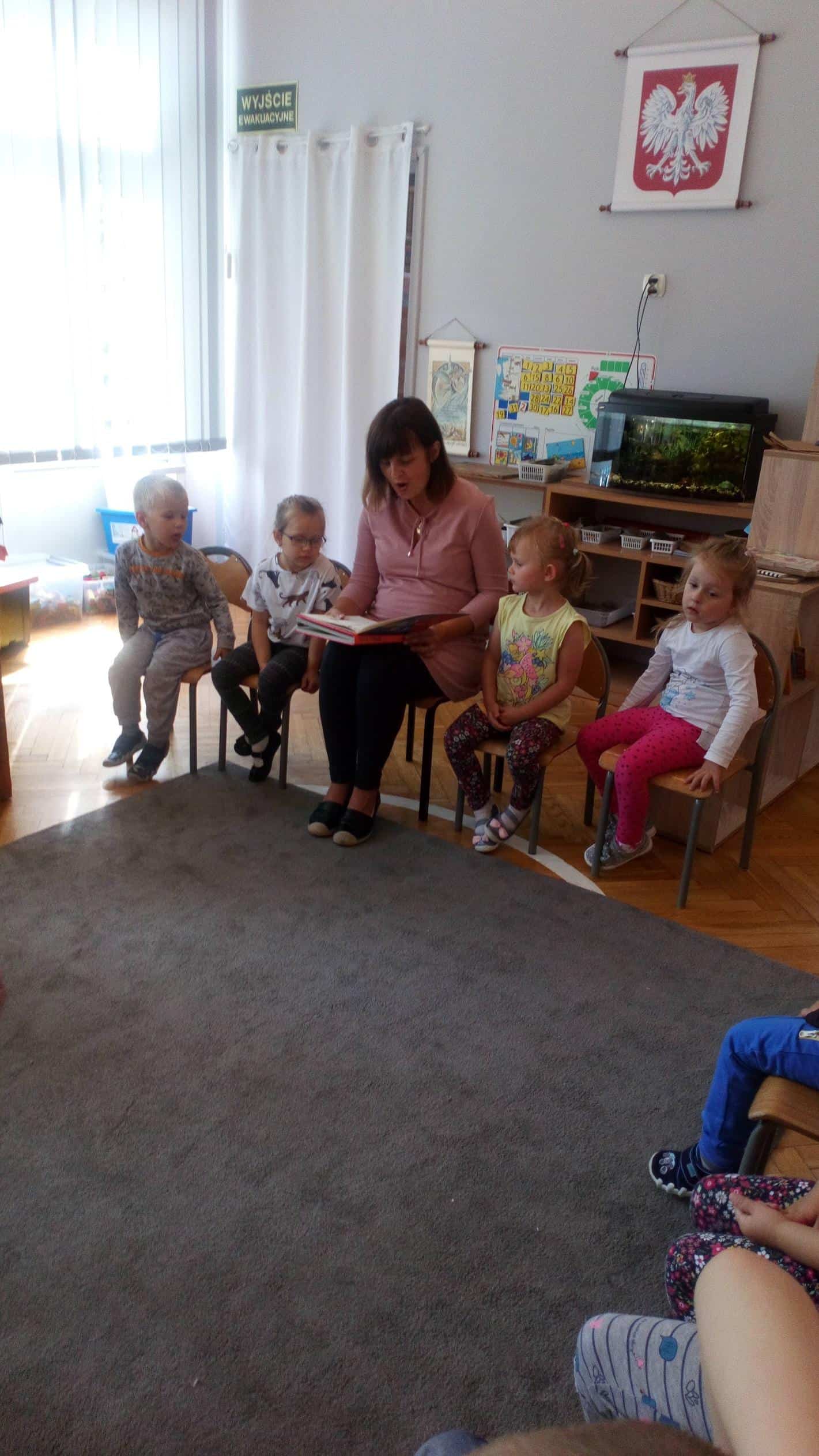 W naszą akcję głośnego czytania dzieciom z wielkim zaangażowaniem włączyła się mamusia Wojtusia D. Pani Ewa odwiedziła nas już trzy razy. Dzieci z uwagą słuchały czytanych utworów, chętnie rozmawiały o ich treści, zadawały pytania, jak również odpowiadały na pytania naszego Gościa.