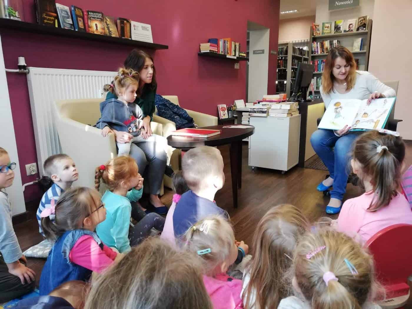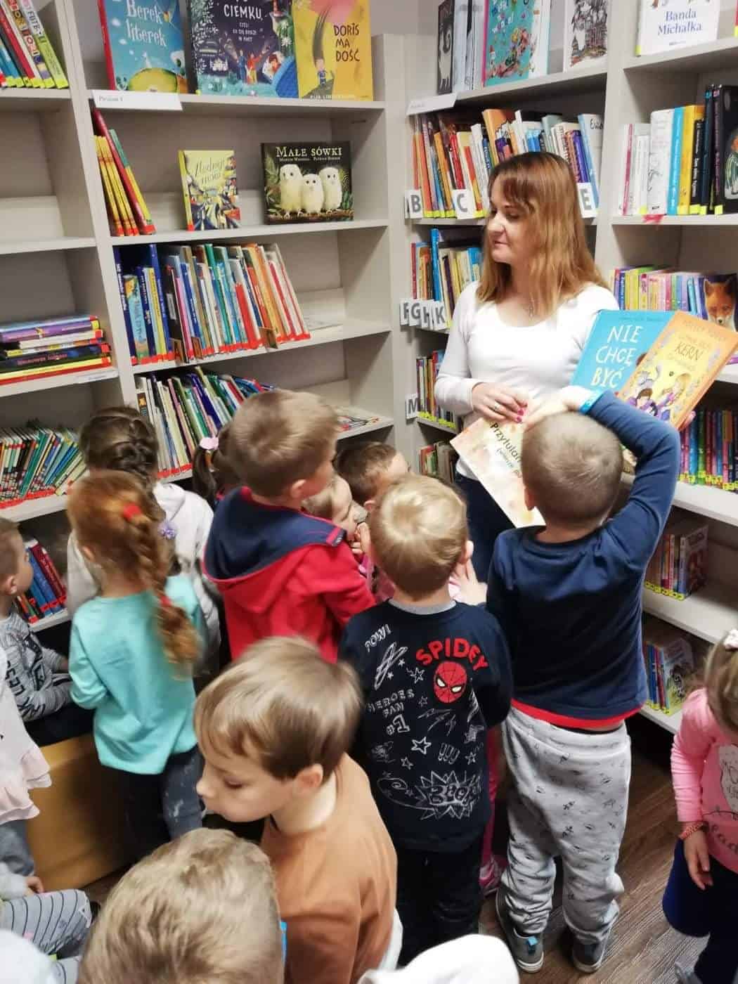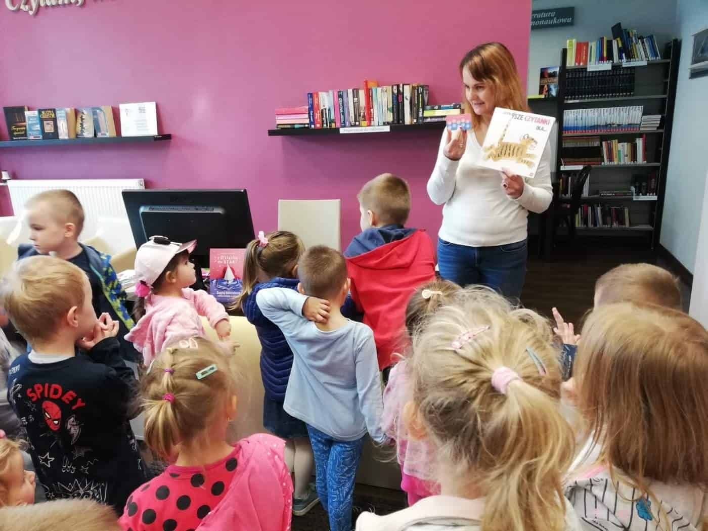 Pani Anetka zachęcała dzieci do włączenia się w kampanię czytelniczą, pokazała nam bibliotekę, opowiedziała o pracy bibliotekarza, a także przeczytała opowiadanie Laury Ellen Anderson pt. „Nie chcę być mały”. Dzieci z zainteresowaniem słuchały przygód małego chłopca, po czym odpowiadały na pytania.