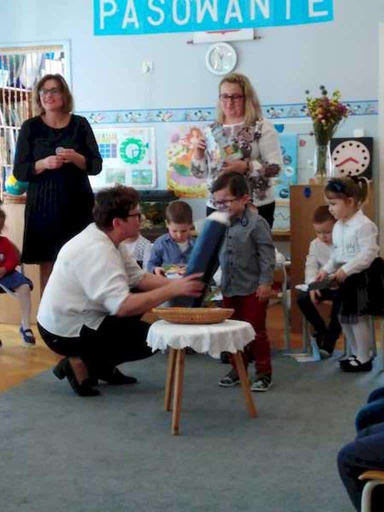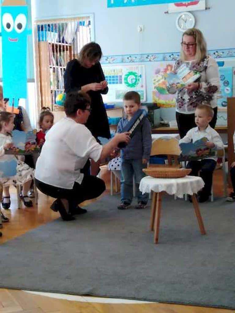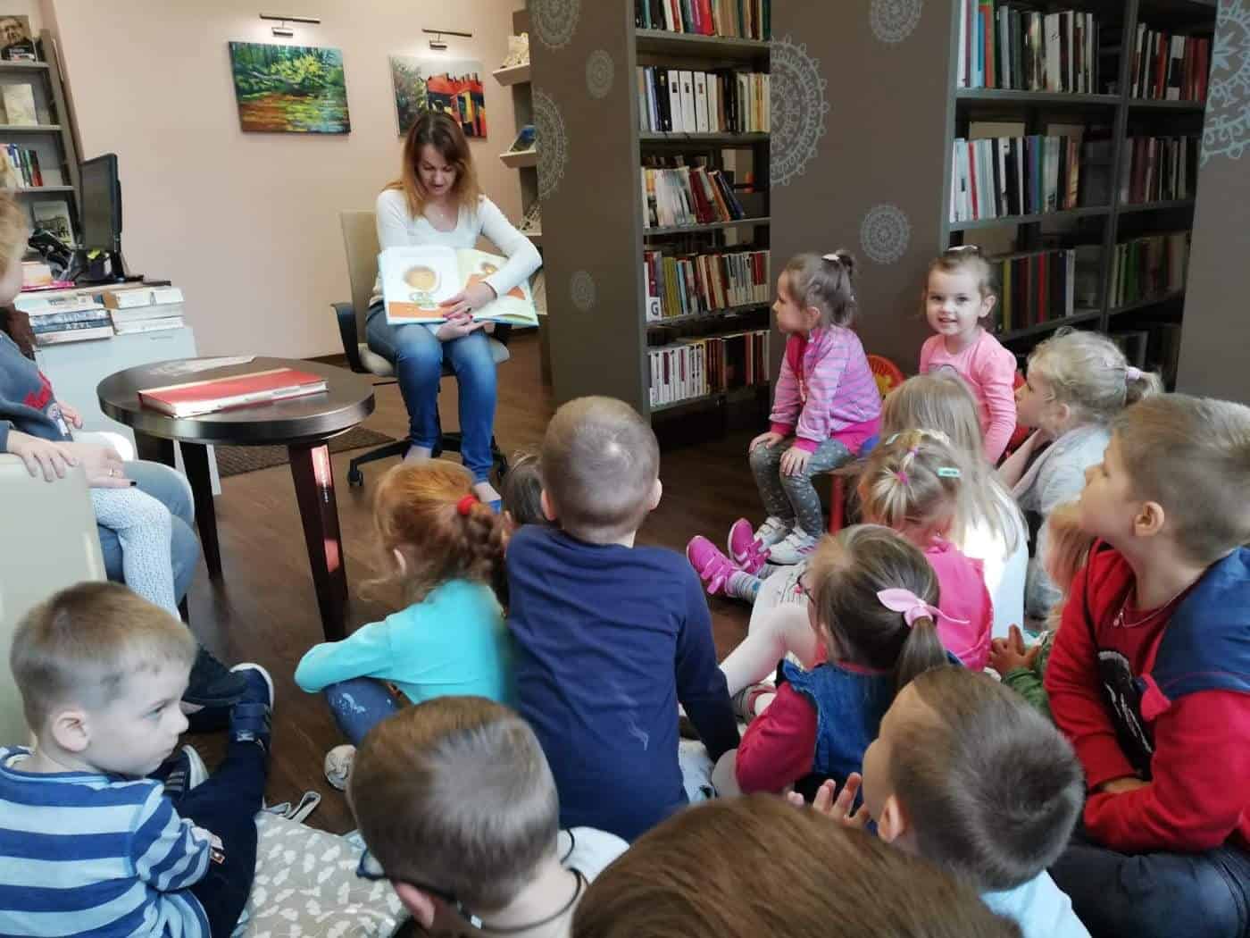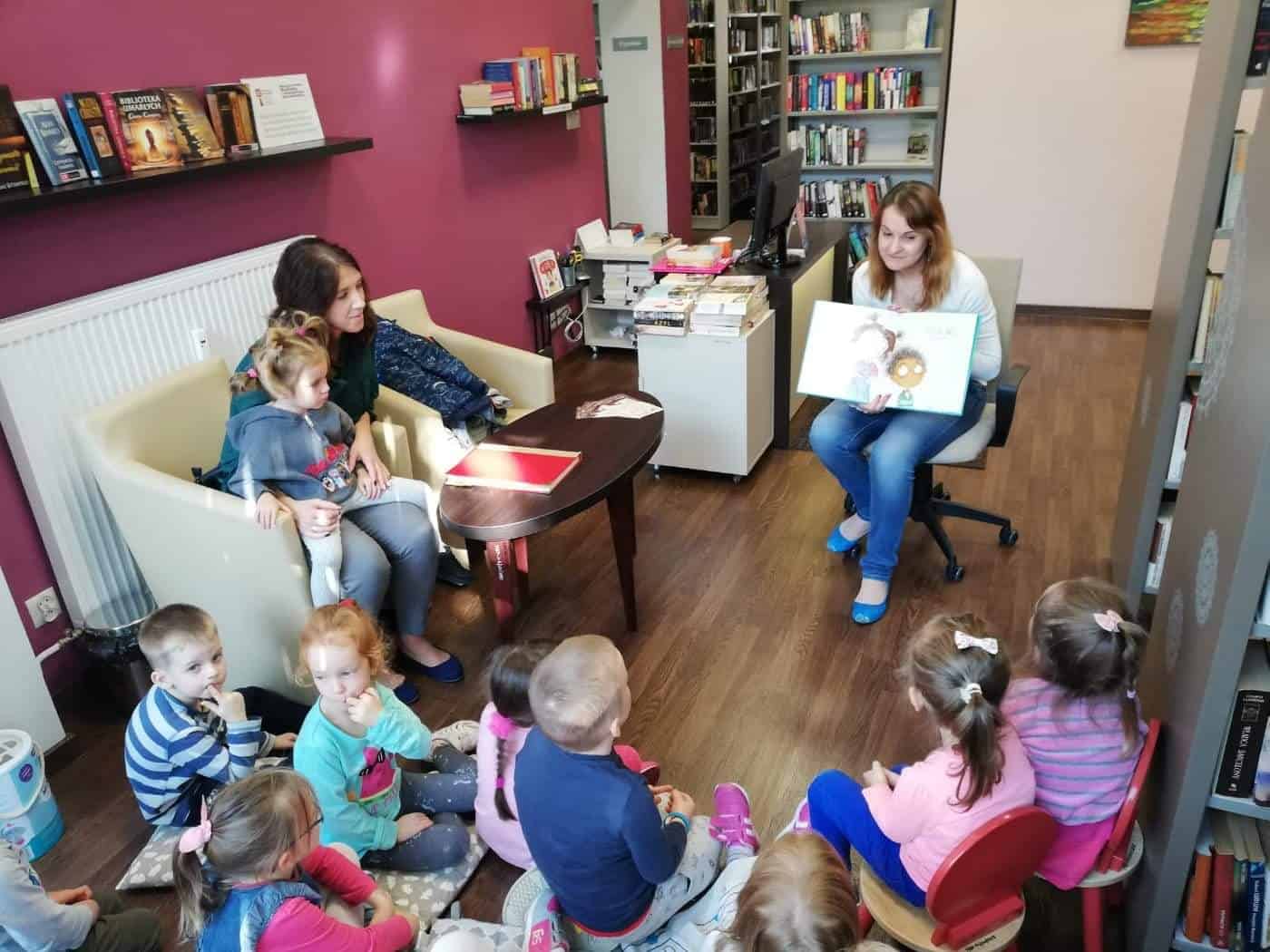 Pani Anetka zachęcała dzieci do włączenia się w kampanię czytelniczą, pokazała nam bibliotekę, opowiedziała o pracy bibliotekarza, a także przeczytała opowiadanie Laury Ellen Anderson pt. „Nie chcę być mały”. Dzieci z zainteresowaniem słuchały przygód małego chłopca, po czym odpowiadały na pytania.