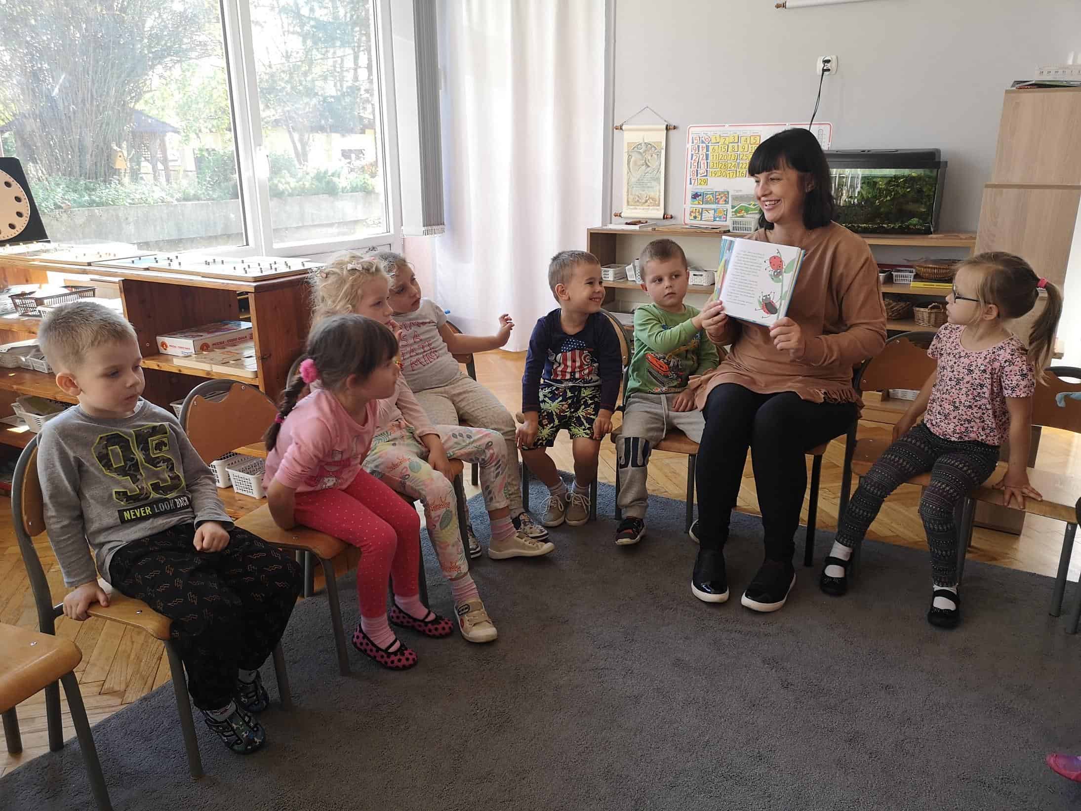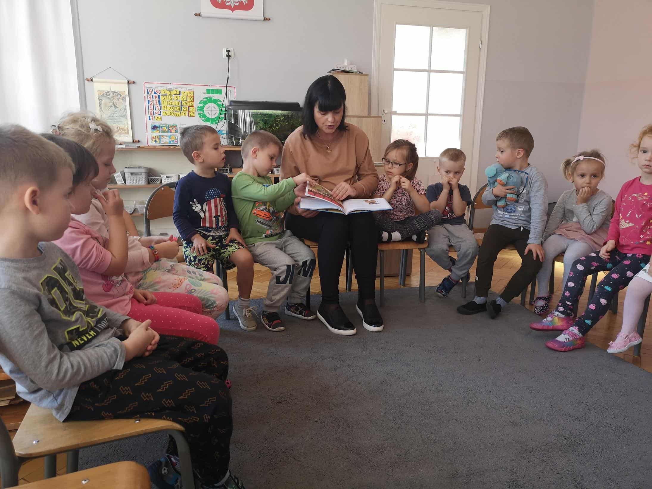 W czwartek 24 października odwiedziła nas już po raz kolejny mamusia Wojtusia D. Pani Ewa bardzo sumiennie zaangażowała się w akcję czytelniczą praktykowaną w przedszkolu. Dzieci z zainteresowaniem wysłuchały opowiadania Joanny Wachowiak pt. „Skarb biednych myszek”. Jak się okazało Szarka i Łatka – biedne, polne myszki, główne bohaterki opowiadania miały ogromny skarb – PRZYJAŹŃ, która jest bardzo ważna w życiu. Drugie opowiadanie tej samej autorki pt. „Zabawy ślimaka” uświadomiło dzieciom, że inny nie znaczy wcale gorszy.
