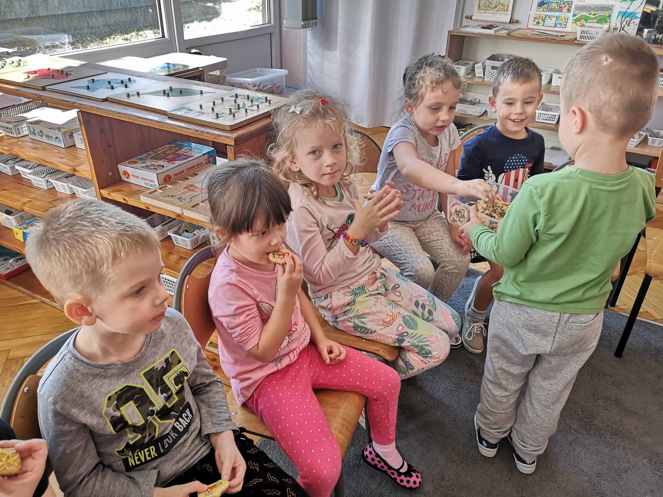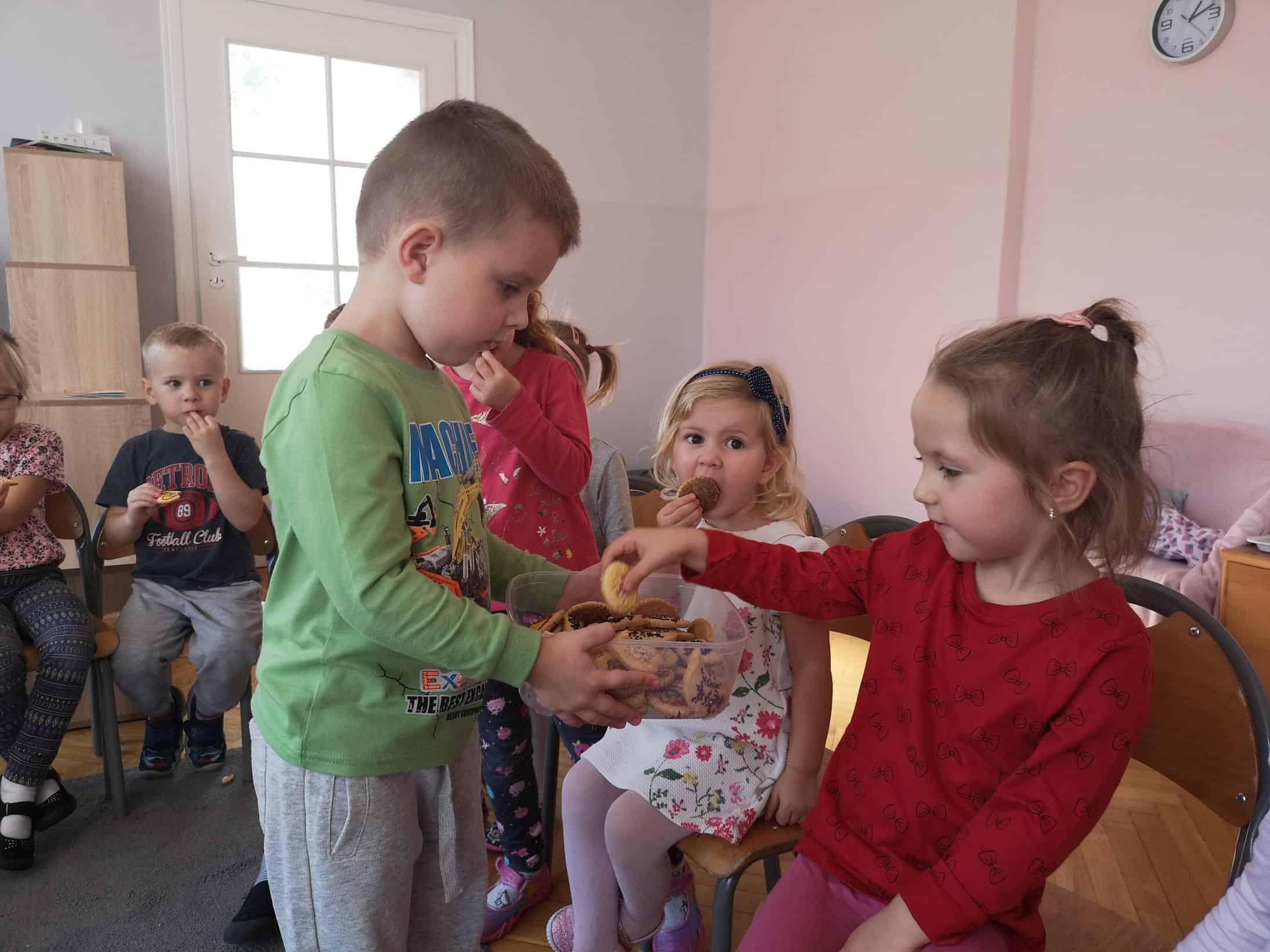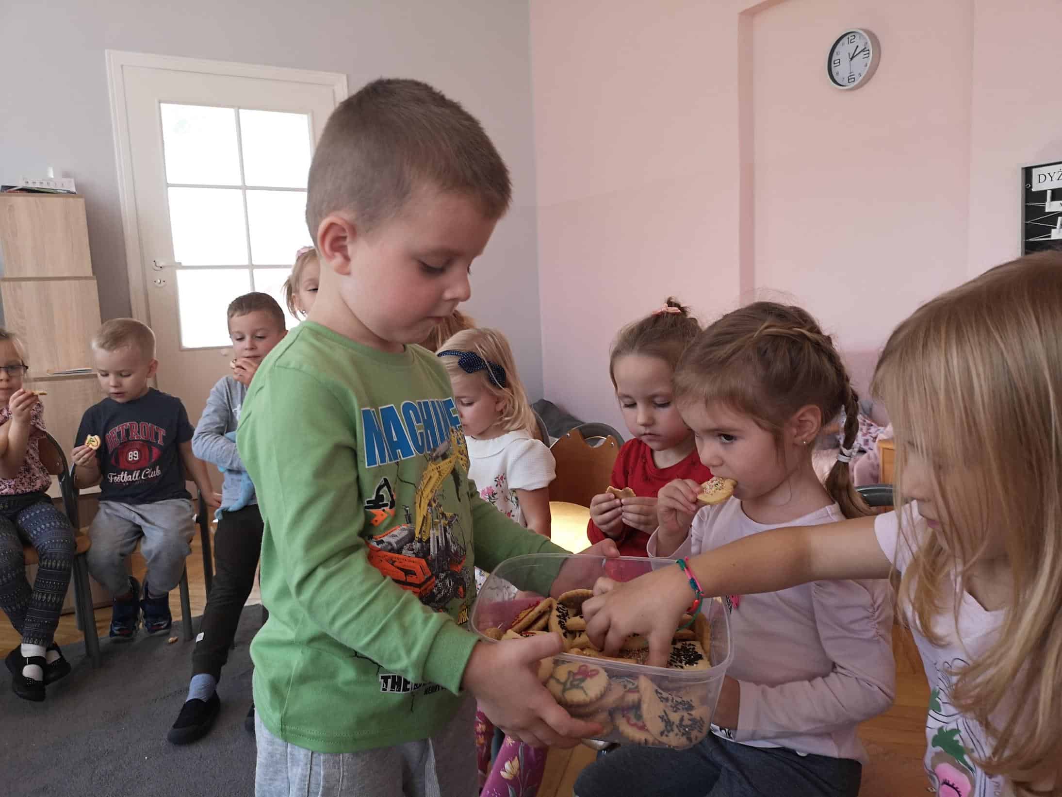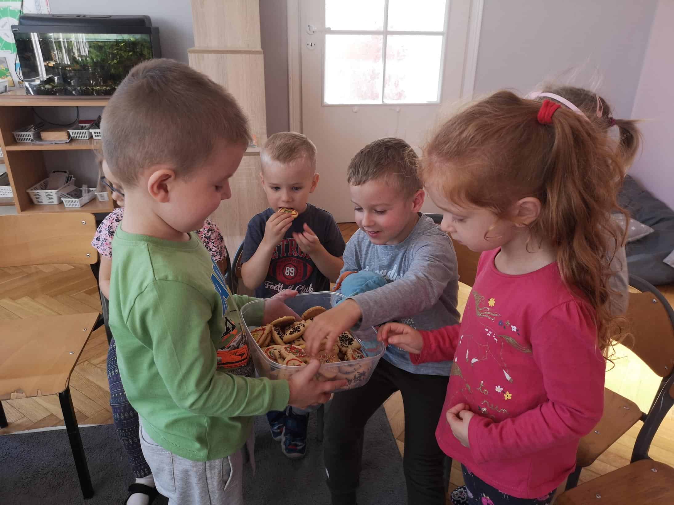 Po wysłuchaniu opowiadań Wojtuś poczęstował wszystkich pysznymi, kruchymi ciasteczkami, które upiekł razem z mamusią 🙂