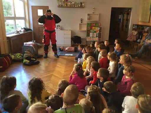 Tak właśnie dzieje się w naszym przedszkolu. Już po raz kolejny gościliśmy ratowników z Państwowej Straży Pożarnej w Jarosławiu. Pan Karol i Pan Józef (prywatnie tata Milenki i Elizki) przeprowadzili warsztaty z zakresu udzielania pierwszej pomocy przedmedycznej.