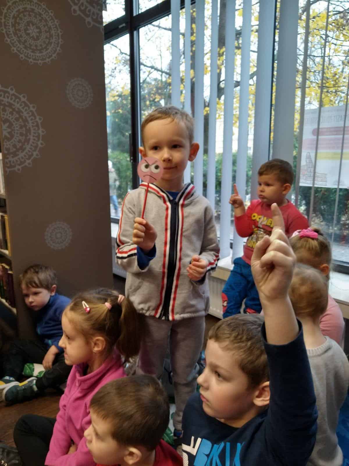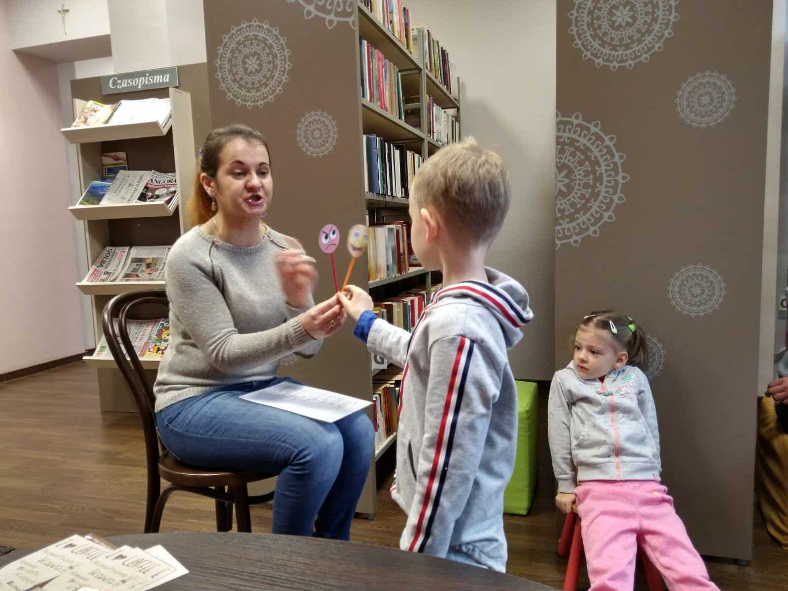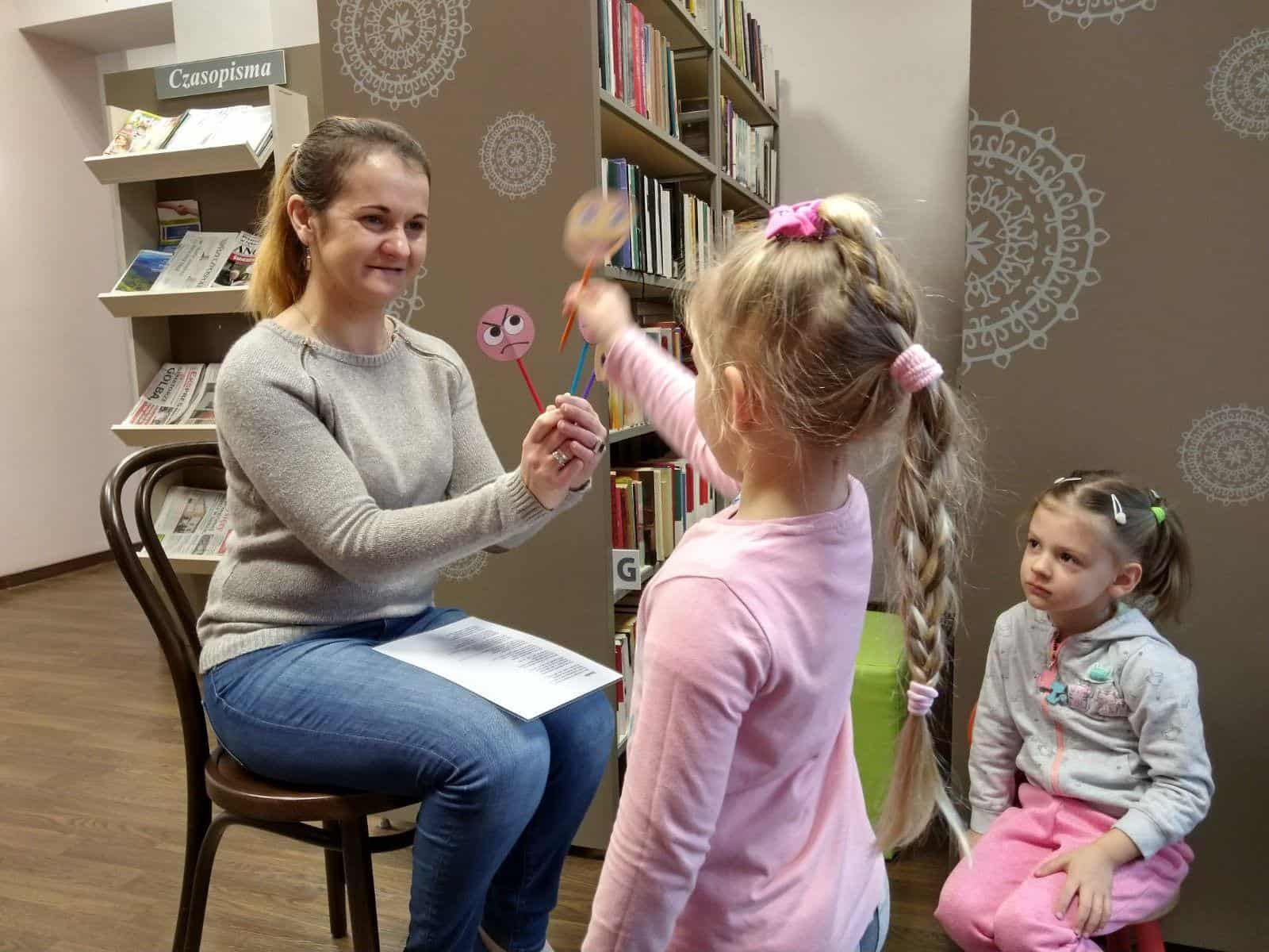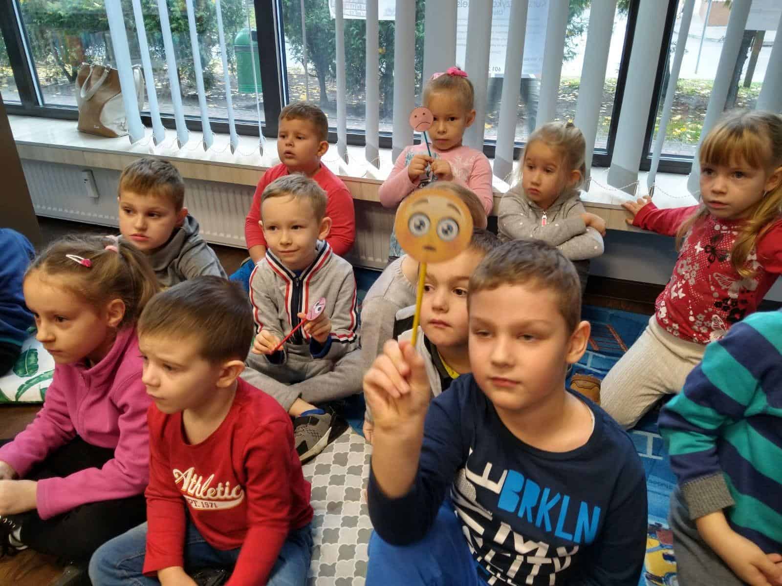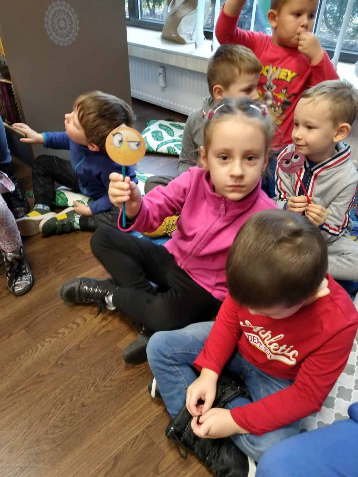 Bardzo pouczająca była również zabawa, która pomogła dzieciom rozpoznawać i nazywać emocje. Pani z biblioteki oparła zabawę o wiersz Doroty Gellner: „Złu humorek”.