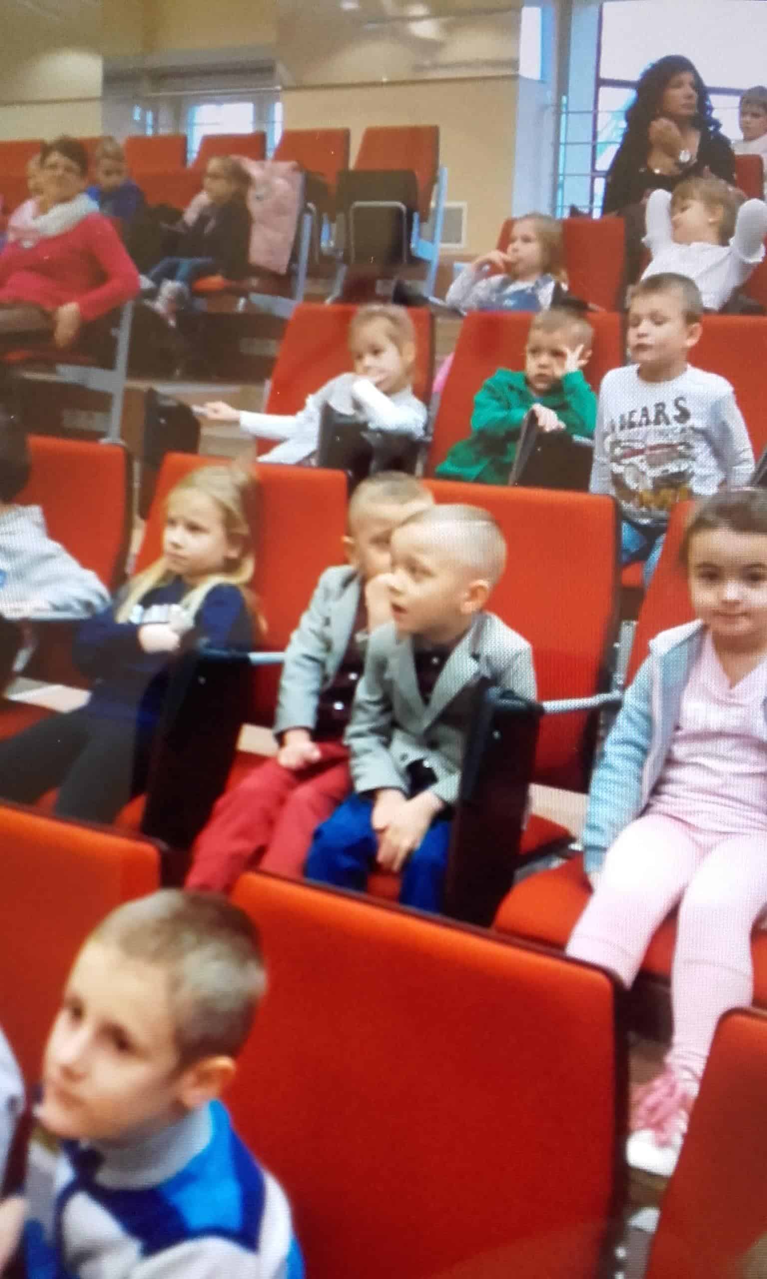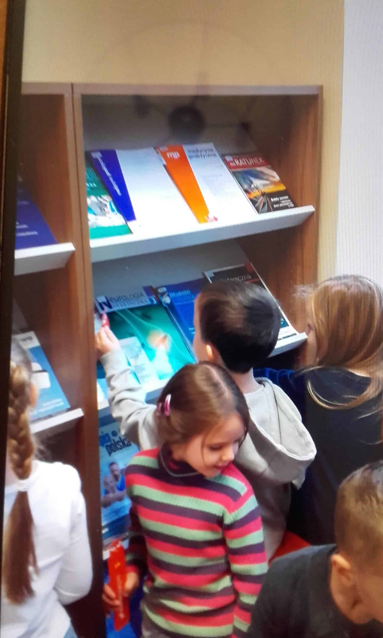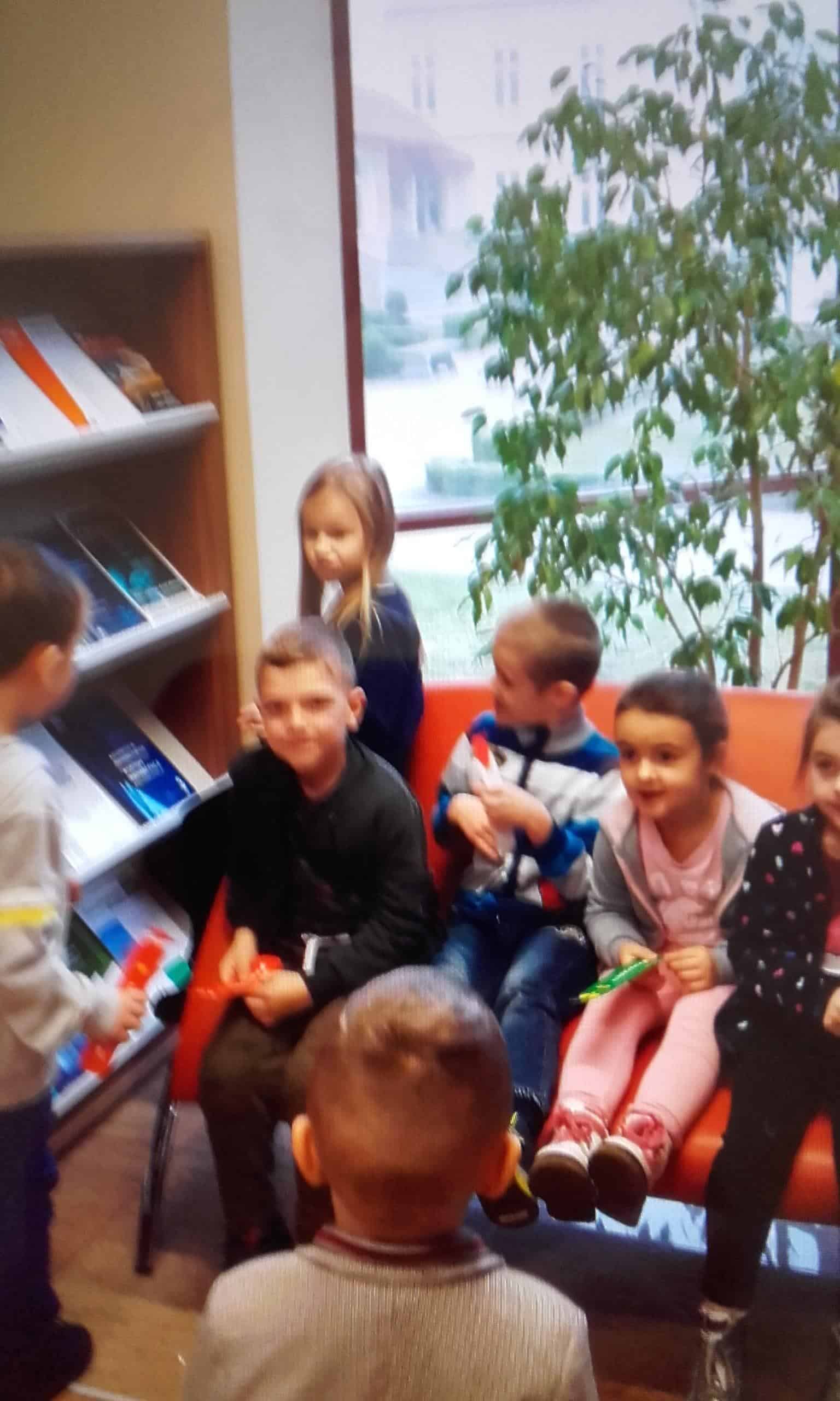 Podczas wizyty na uczelni dzieci z grupy Pomarańczowej skorzystały z możliwości zwiedzenia biblioteki i czytelni. Pomieszczenia i ilość zgromadzonych książek zrobiła na dzieciach ogromne wrażenie. Dzieci mogły poznać różne rodzaje książek – słowniki, encyklopedie, książki naukowe, atlasy, leksykony itp. Przy okazji same mogły opowiedzieć o swoich ulubionych książkach, czy bohaterach bajek. Jednak najciekawsze było poznanie „drogi książki” od momentu złożenia zamówienia u Pani Bibliotekarki ,aż do momentu odbioru książki przez studenta. Spore zainteresowanie wzbudził również wózeczek do przewożenia większej ilości książek przez pracowników, winda na książki oraz magazyn książek. Dzieci były pod dużym wrażeniem. Dziękujemy Mamusi Pawełka Pani Dominice za umożliwienie nam wizyty w bibliotece i czytelni PWSTE- serdecznie dziękujemy.