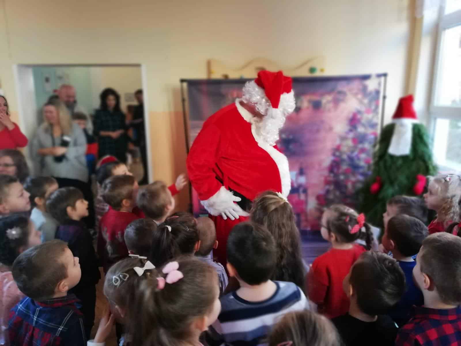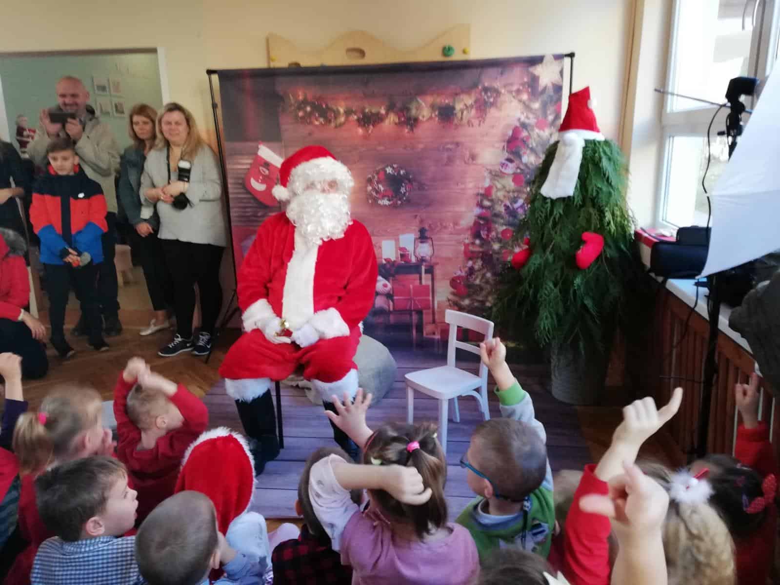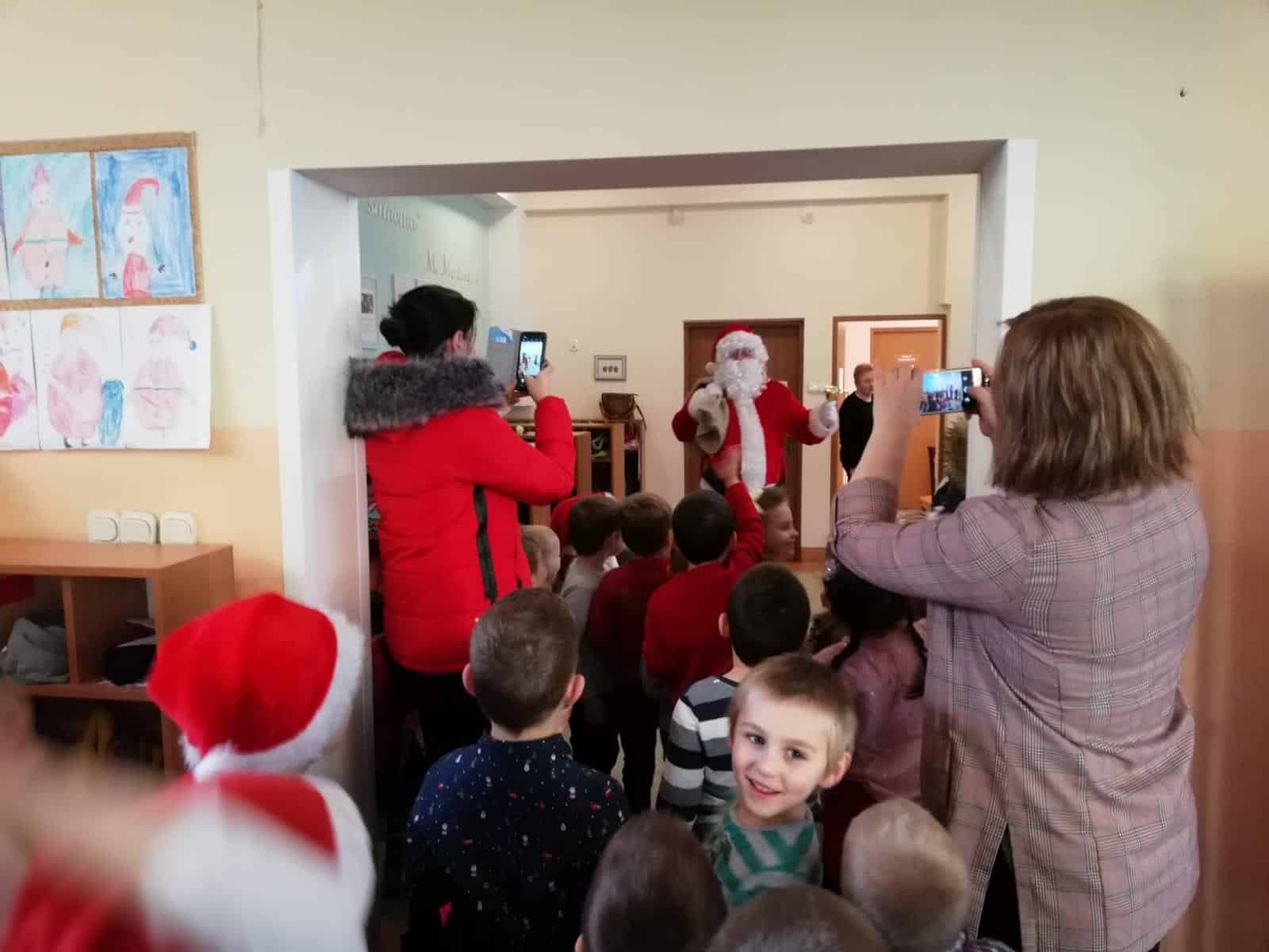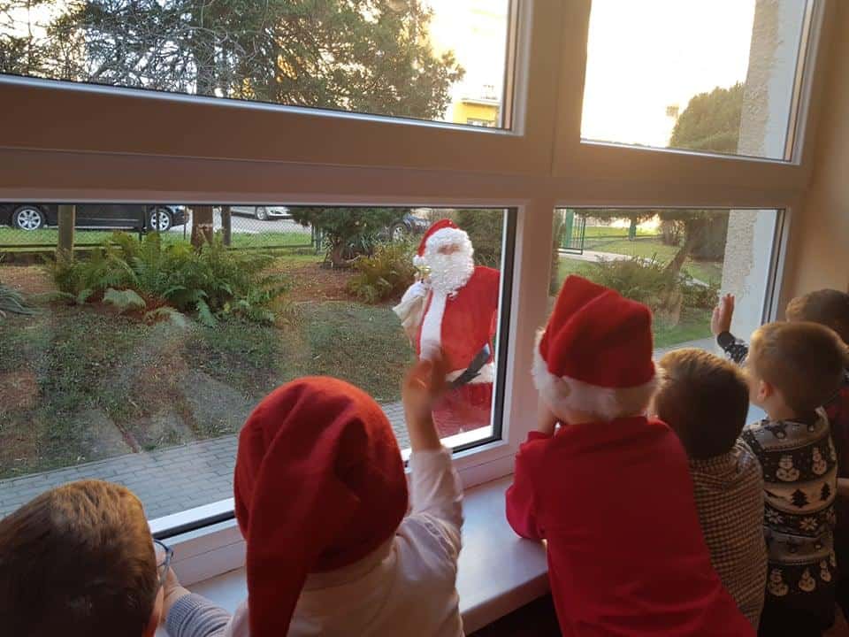 Wizyta Świętego Mikołaja w naszym przedszkolu, to jeden z najbardziej oczekiwanych przez dzieci dni w roku. Każdy wie, że Święty Mikołaj stara się odwiedzić dzieci na całym świecie. Dla nas znalazł czas 5 grudnia, gdzie z workiem pełnym prezentów, przyjechał do naszego przedszkola. Przedszkolaki już od samego rana wyczekiwały wyjątkowego gościa. Wszystkie bardzo przeżywały to spotkanie. Na niejednej twarzy można było zobaczyć niepewność, obawę, a nawet lęk. Trwało to jednak bardzo krótko. Kiedy tylko zobaczyły postać Mikołaja za oknem, a na korytarzu usłyszały dźwięk dzwoneczków, zaczęły podskakiwać z radości. Po tej ogromnej euforii pięknie zaśpiewały przygotowaną piosenkę, rozmawiały z Mikołajem i oczywiście chwaliły się, że są bardzo grzeczne 🙂 Po oficjalnym przywitaniu Świętego każda z grup wychodziła na hol, aby móc pobyć z tym uroczym gościem. Nasze kochane przedszkolaki powitały Mikołaja wierszami i piosenką i tym samym zasłużyły sobie na wspaniałe prezenty oraz wspólne zdjęcia.