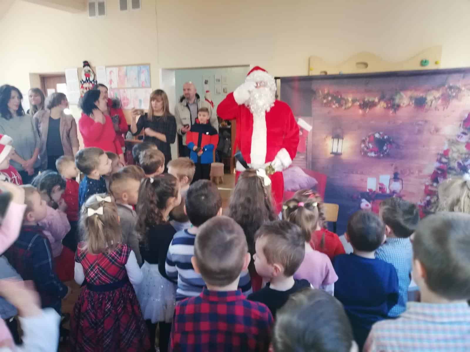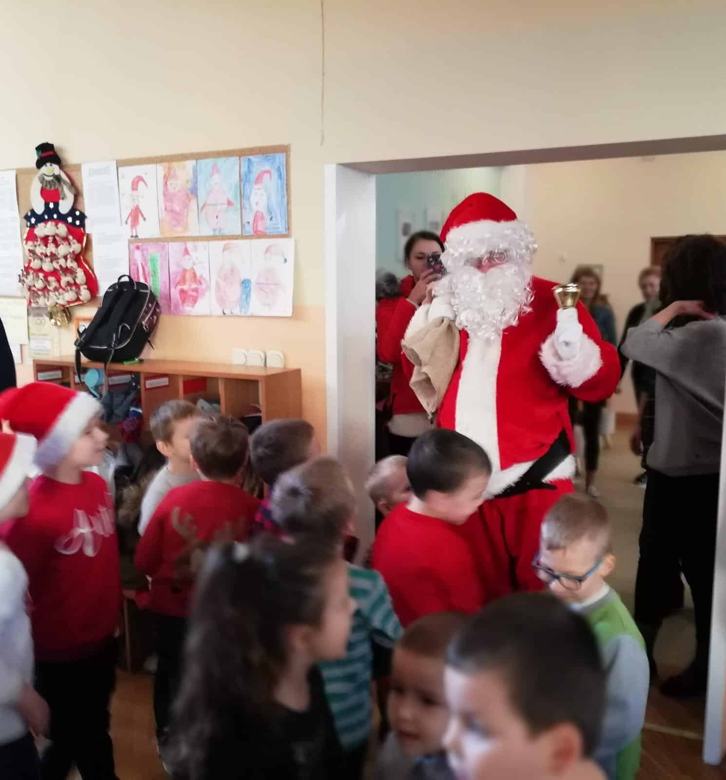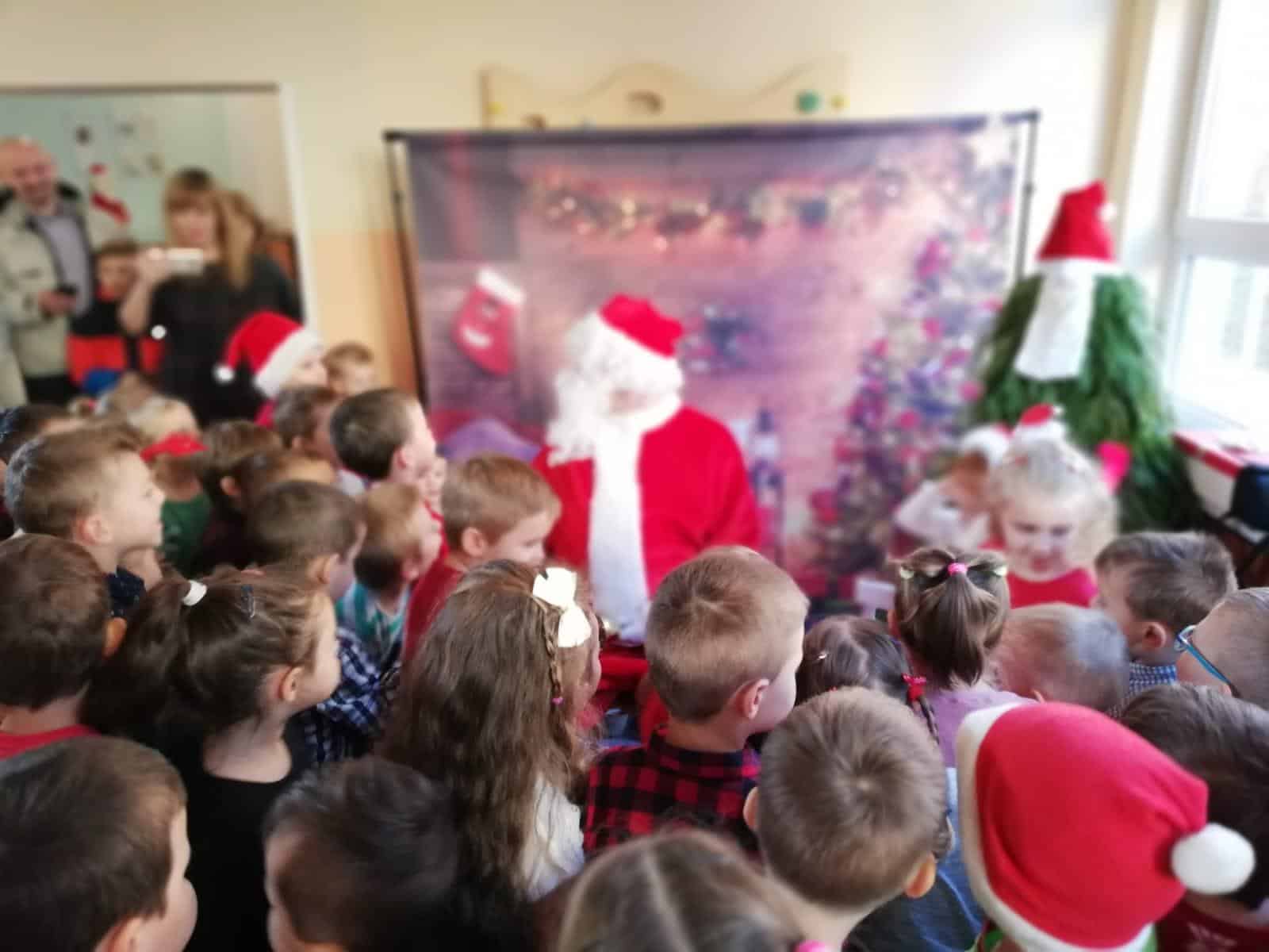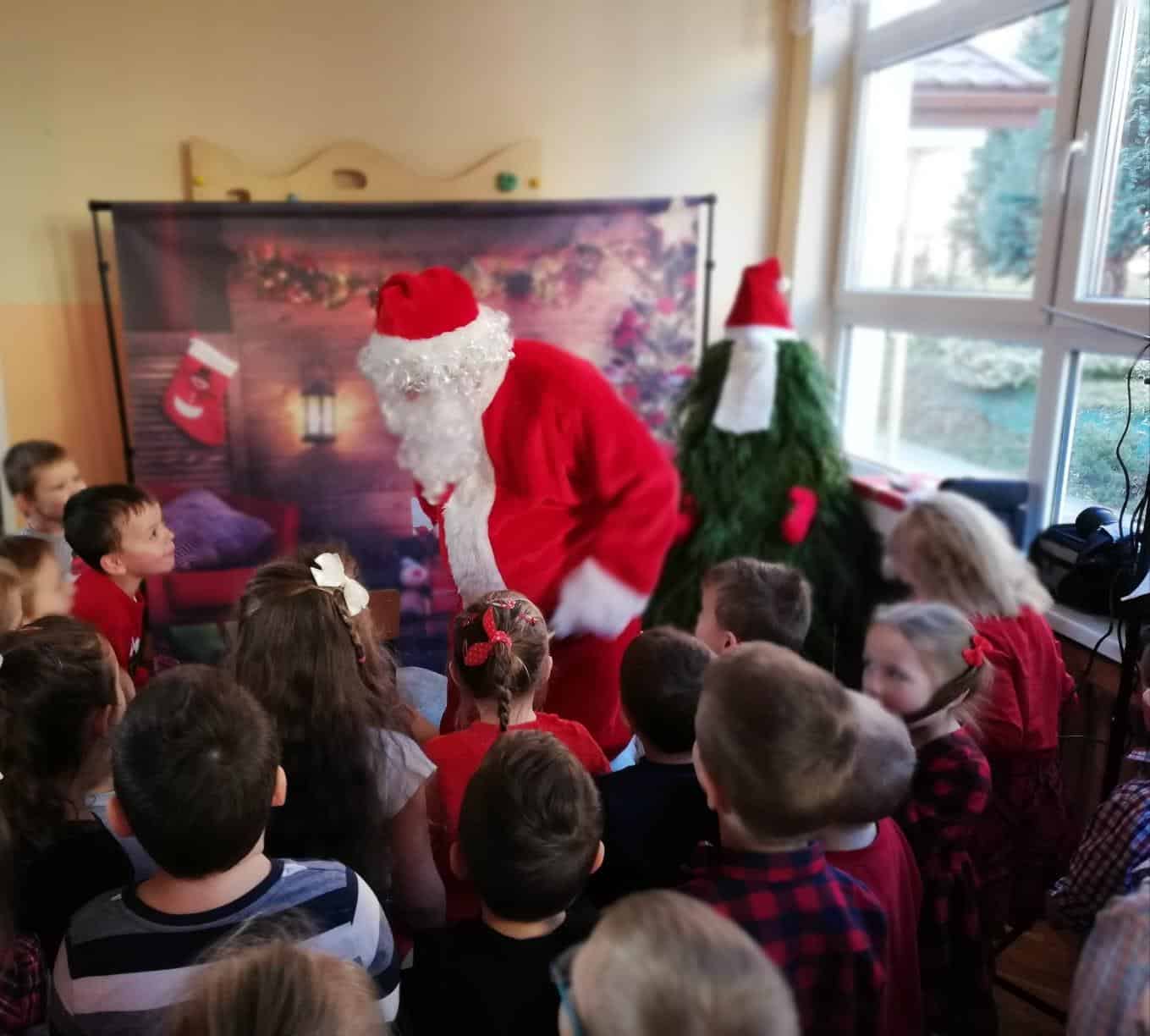 Wizyta Świętego Mikołaja w naszym przedszkolu, to jeden z najbardziej oczekiwanych przez dzieci dni w roku. Każdy wie, że Święty Mikołaj stara się odwiedzić dzieci na całym świecie. Dla nas znalazł czas 5 grudnia, gdzie z workiem pełnym prezentów, przyjechał do naszego przedszkola. Przedszkolaki już od samego rana wyczekiwały wyjątkowego gościa. Wszystkie bardzo przeżywały to spotkanie. Na niejednej twarzy można było zobaczyć niepewność, obawę, a nawet lęk. Trwało to jednak bardzo krótko. Kiedy tylko zobaczyły postać Mikołaja za oknem, a na korytarzu usłyszały dźwięk dzwoneczków, zaczęły podskakiwać z radości. Po tej ogromnej euforii pięknie zaśpiewały przygotowaną piosenkę, rozmawiały z Mikołajem i oczywiście chwaliły się, że są bardzo grzeczne 🙂 Po oficjalnym przywitaniu Świętego każda z grup wychodziła na hol, aby móc pobyć z tym uroczym gościem. Nasze kochane przedszkolaki powitały Mikołaja wierszami i piosenką i tym samym zasłużyły sobie na wspaniałe prezenty oraz wspólne zdjęcia.