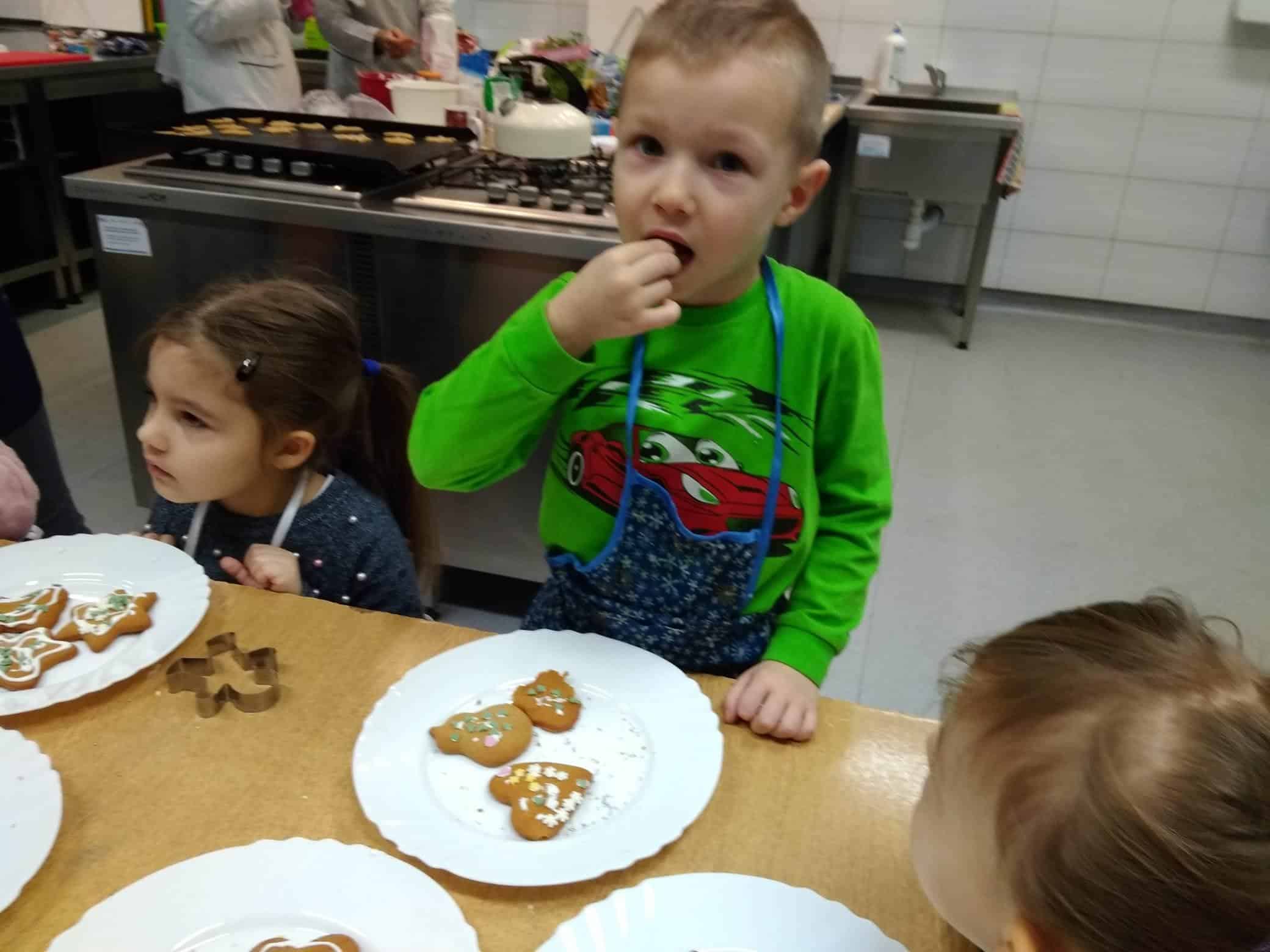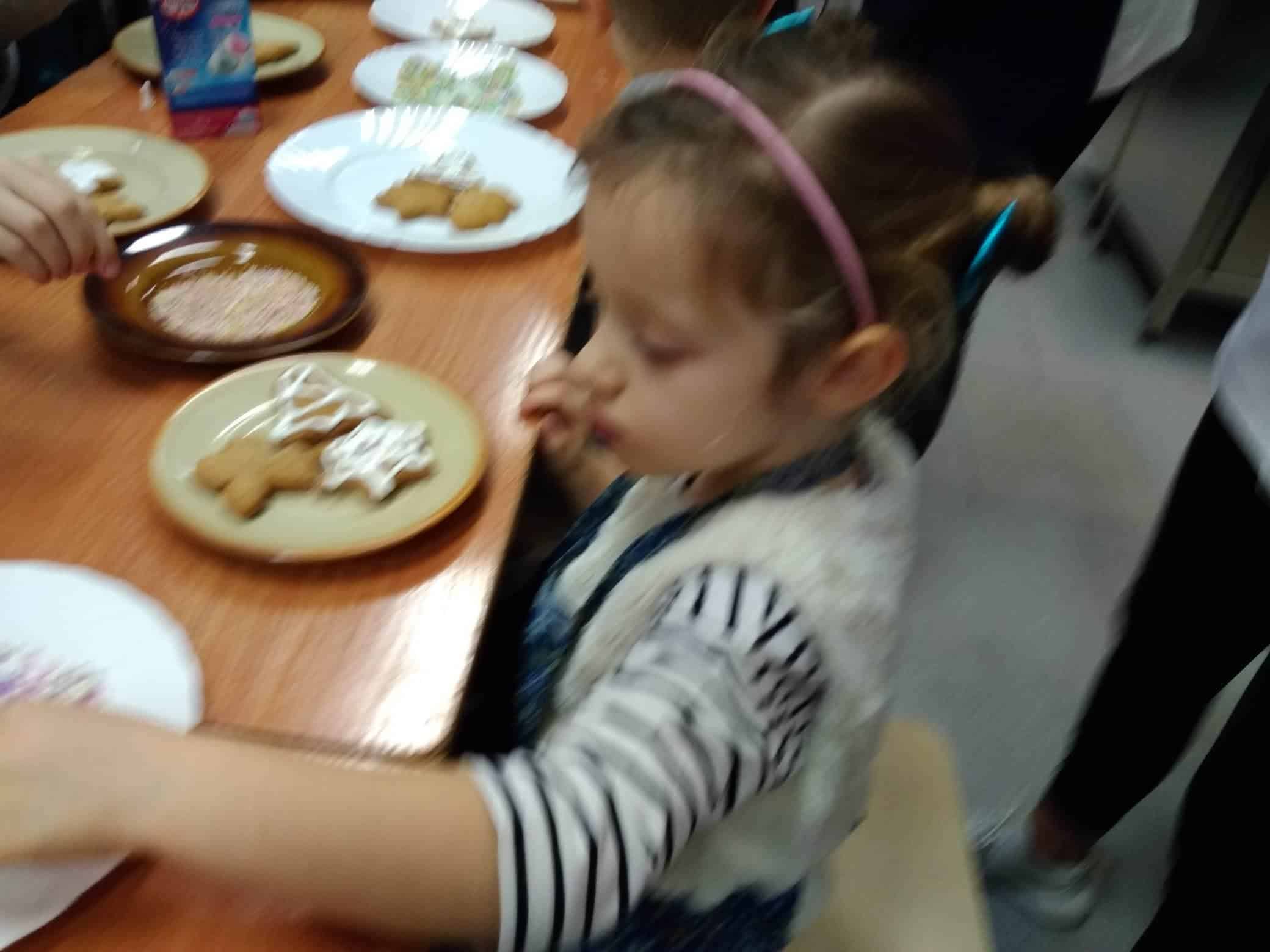 Przygotowanie ciasteczek przyniosło dzieciom wielką radość i satysfakcję, a próbowanie posypek, lukru i pierniczków szerokie uśmiechy.