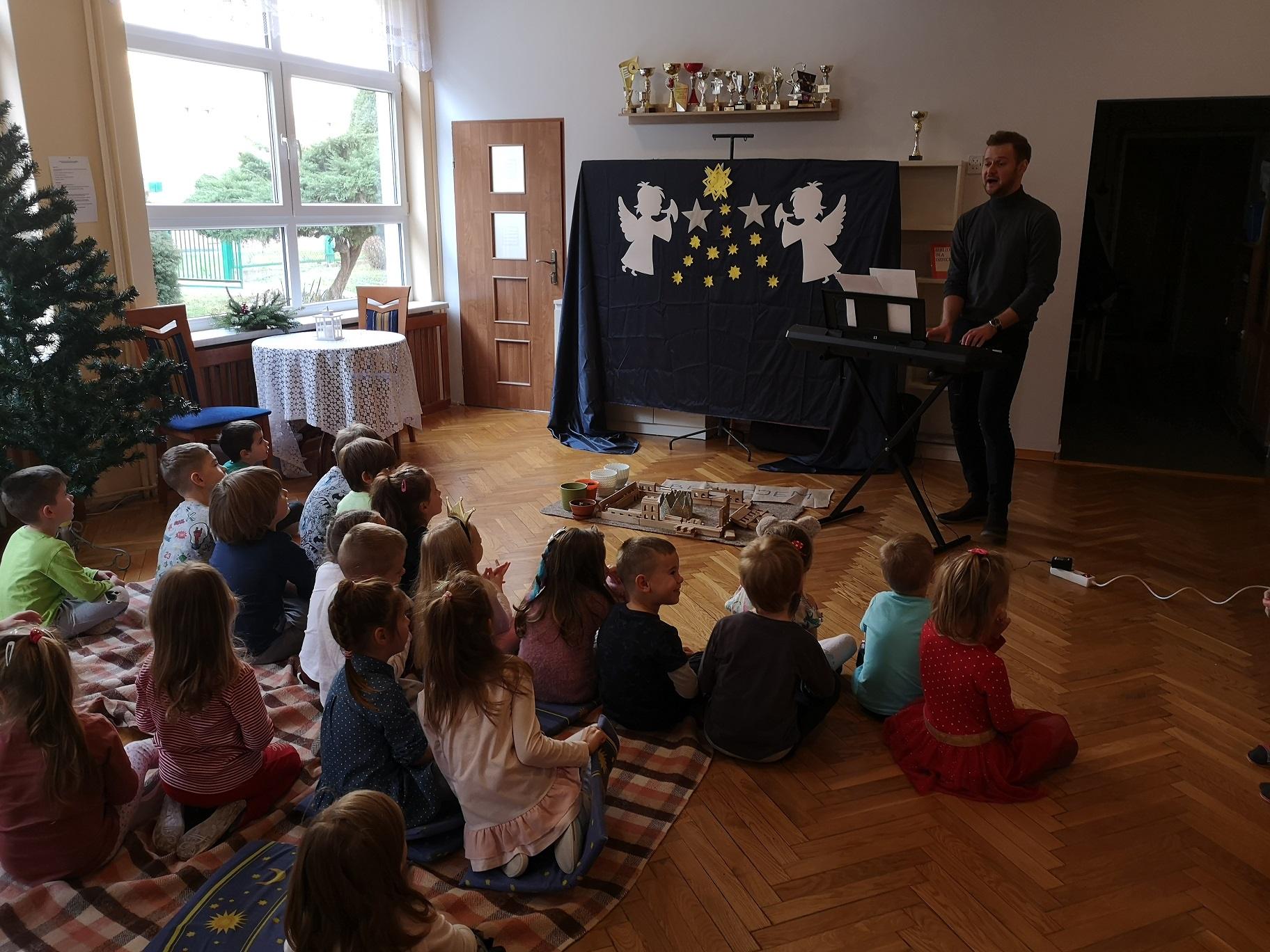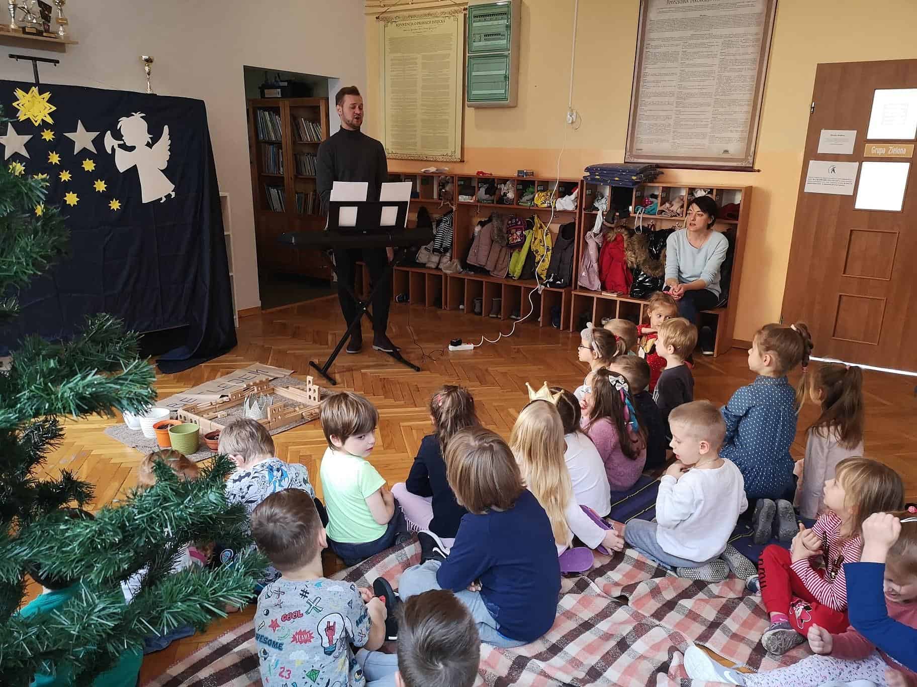 Bardzo dziękujemy Panu Karolowi za poświęcony czas i stworzenie w naszym przedszkolu świątecznego nastroju oraz tym Wszystkim, którzy znaleźli czas, żeby razem z nami wspólnie kolędować.