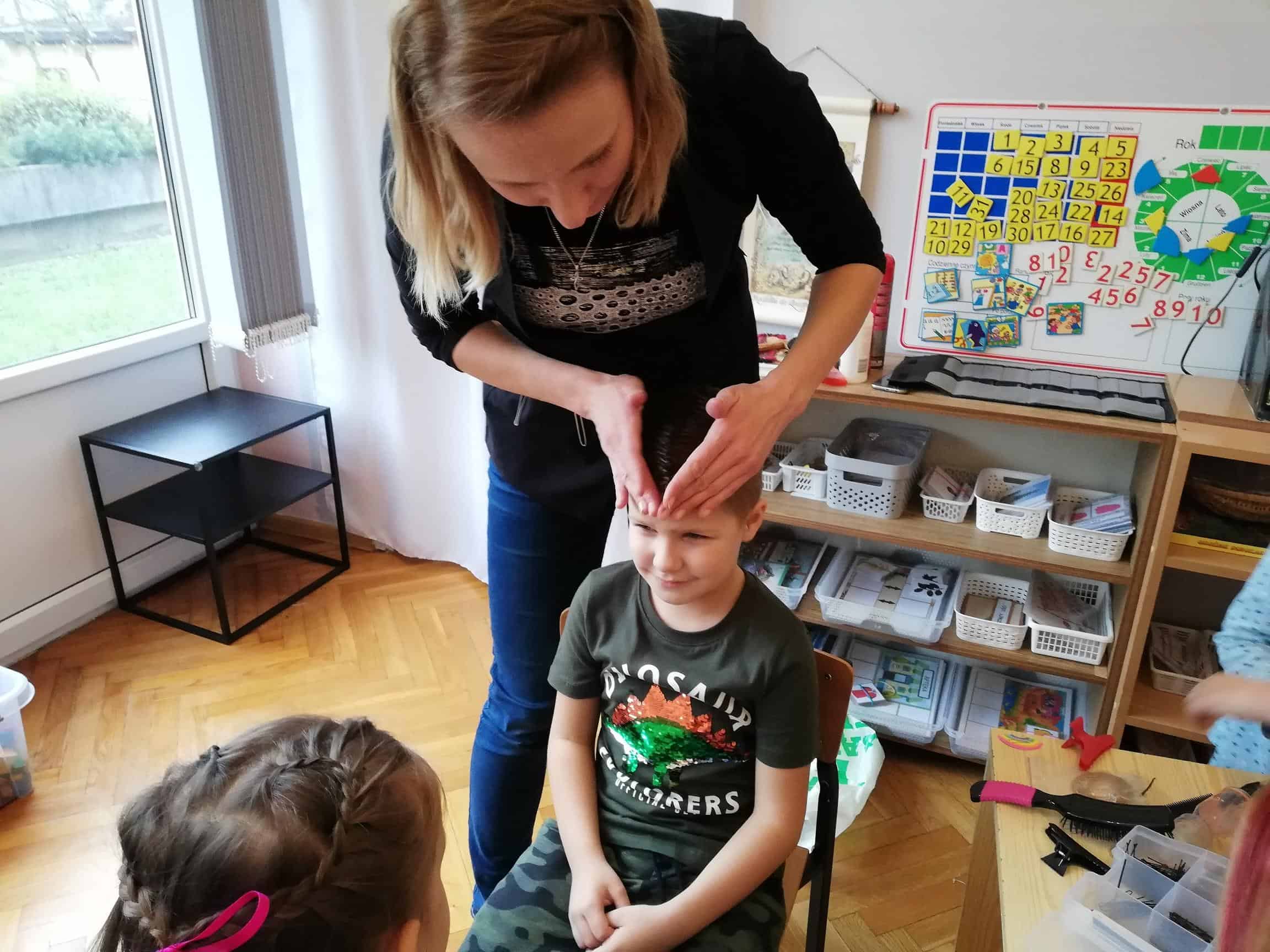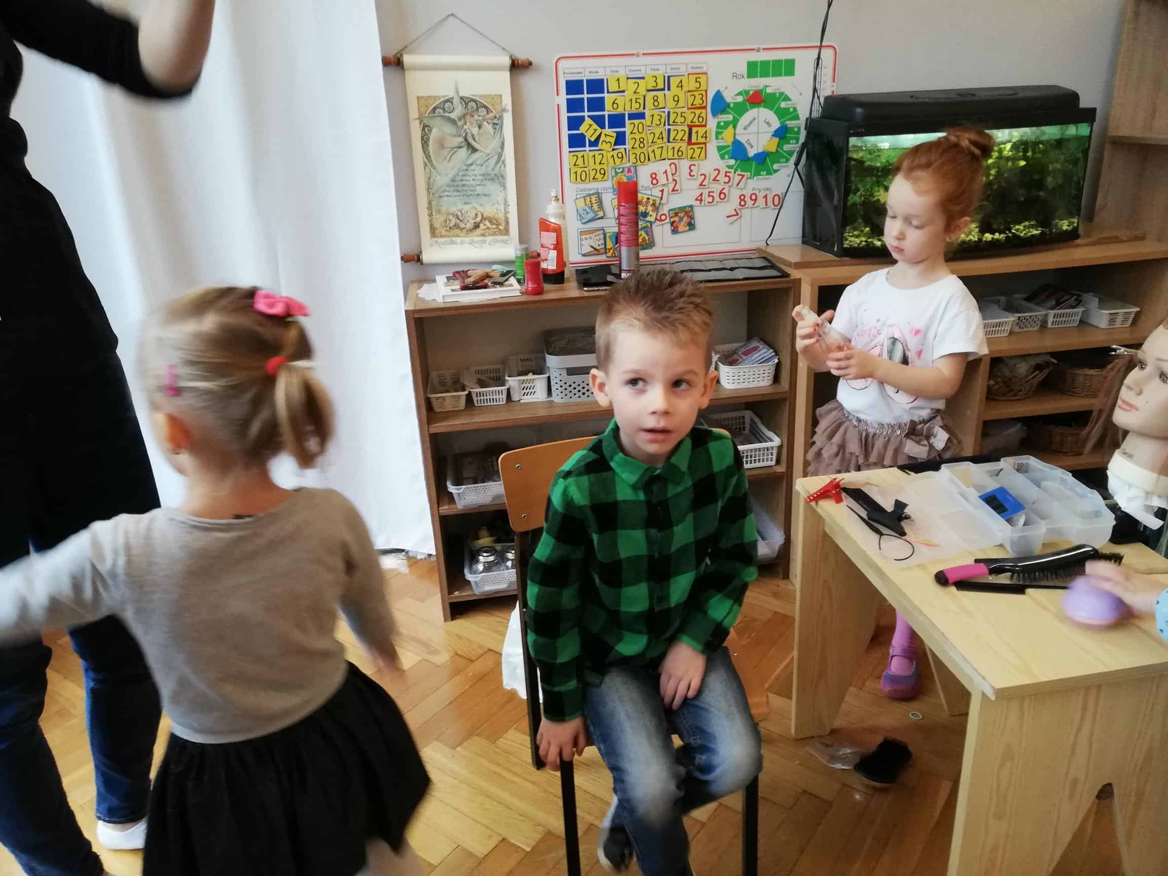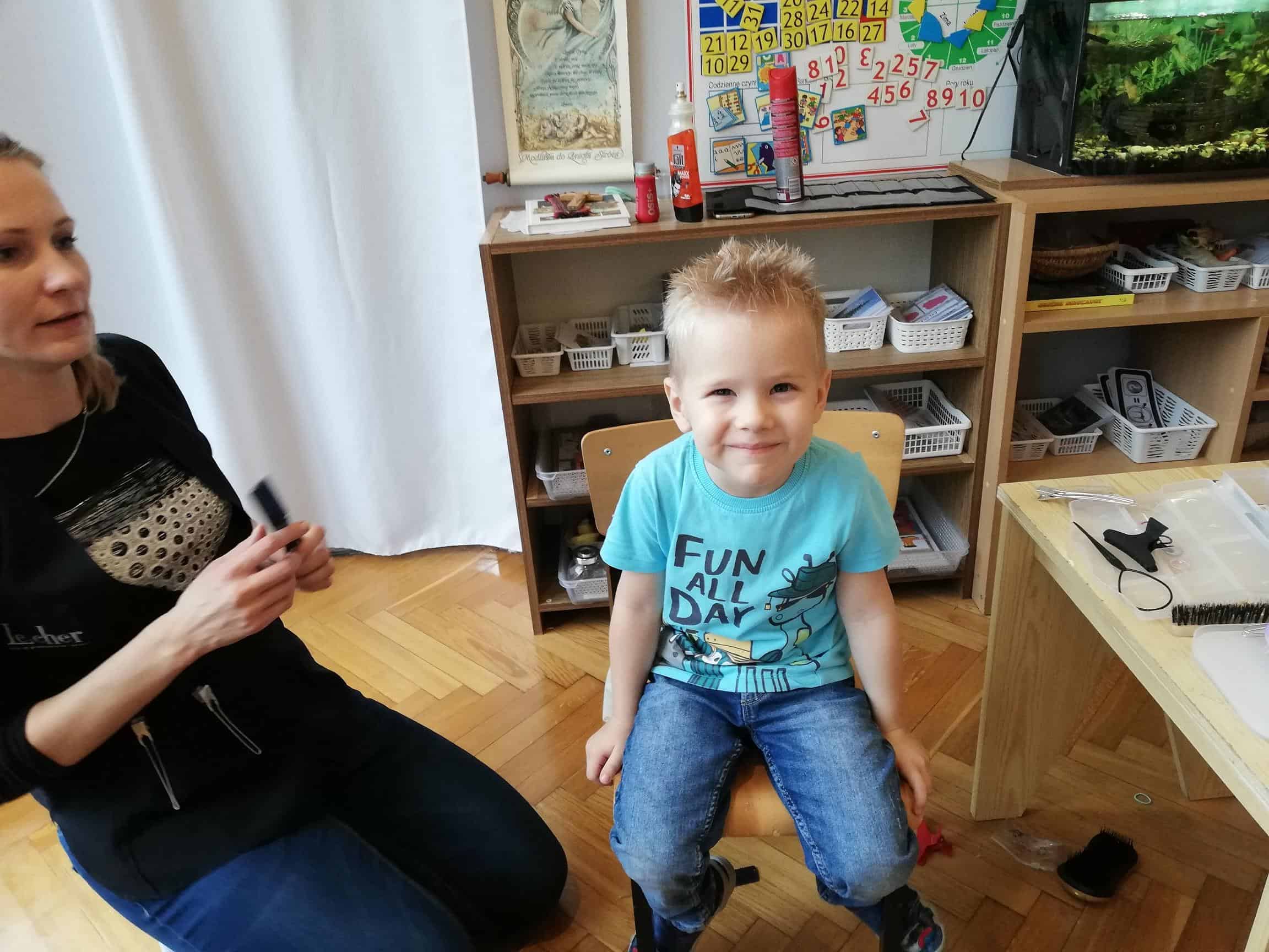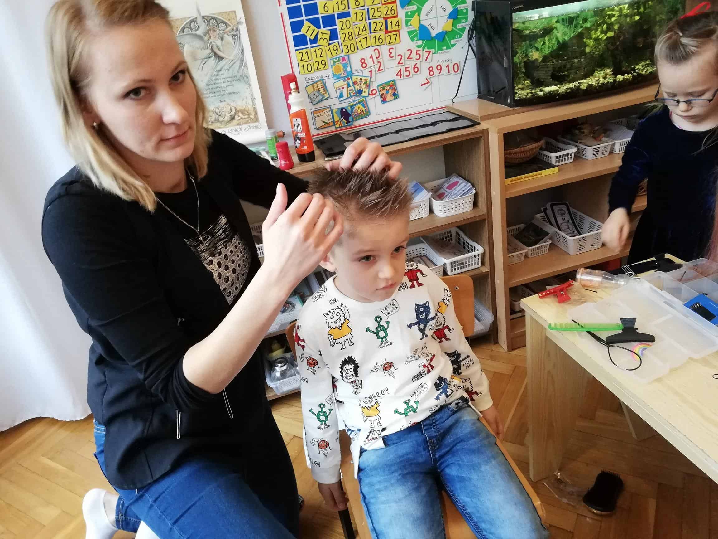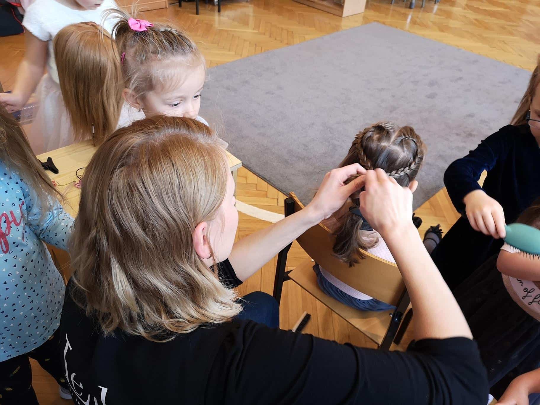 Pani Ewelina na głowach dzieci „jak prawdziwy magik” wyczarowała fantazyjne fryzury, prezentując tym samym swoje umiejętności fryzjerskie. Wśród dziewczynek zapanowało istne szaleństwo: różnego rodzaju warkocze, koki, przyozdobione kolorowymi wstążkami. Natomiast wśród chłopców największym zainteresowaniem cieszył się irokez i oczywiście artystyczny nieład, czyli włosy postawione na żelu.