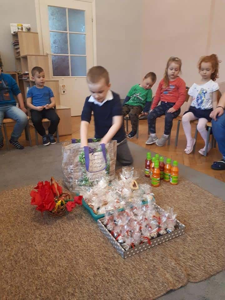 Swoją przyjaźń, życzliwość i troskę pokazał także nasz Przemuś, który dbając o siły witalne i dobre zdrowie wszystkich kolegów i koleżanek, przygotował na ten dzień prezenty w postaci soczków do picia, życząc całej grupie, aby wirusy i bakterie omijały nas szerokim łukiem….Czyż to nie piękny wyraz miłości? No, po takiej porcji witamin, myślę że żadna infekcja czy choroba nawet nie zechce popatrzeć w naszym kierunku.