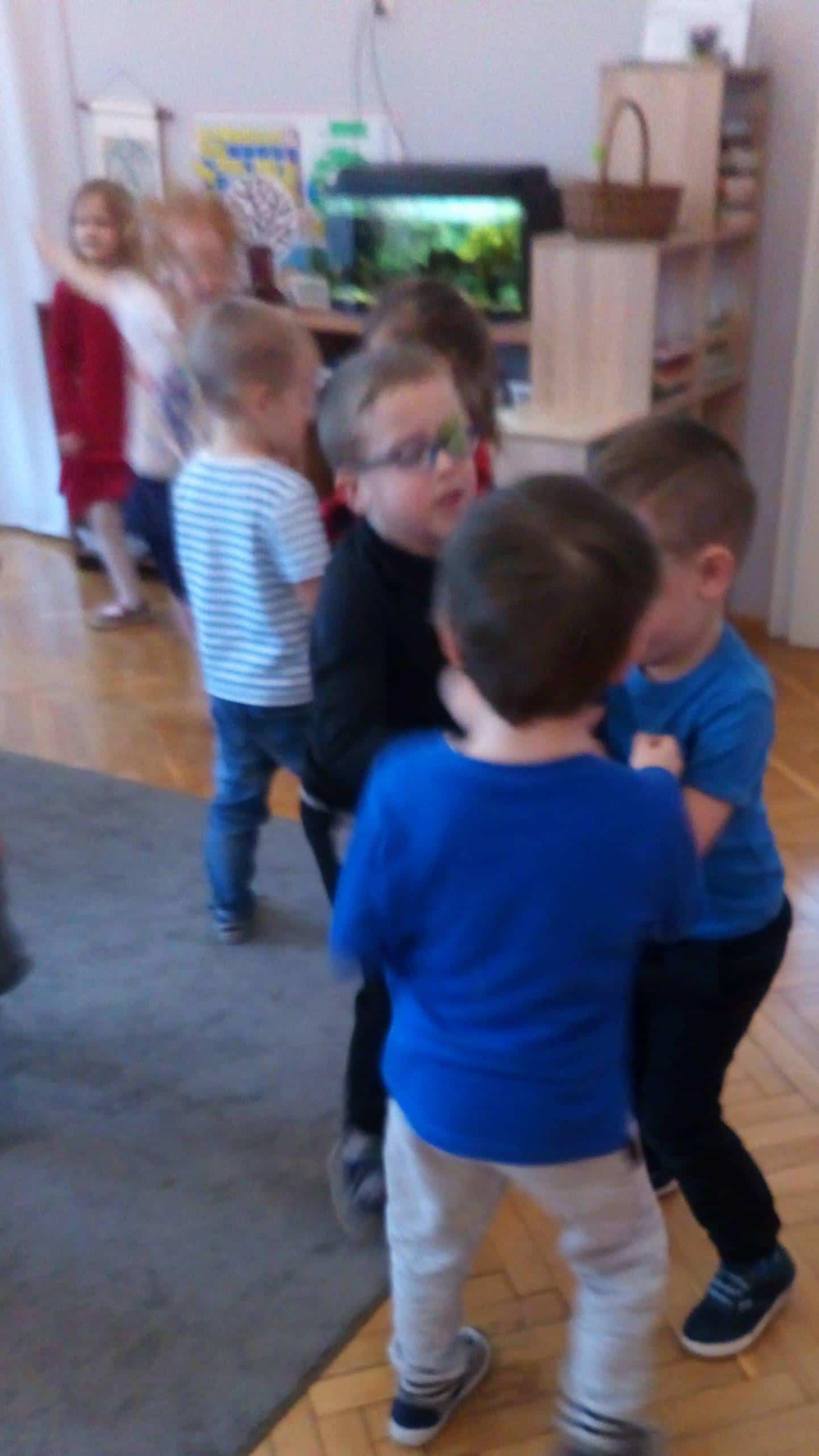 A później było już tylko….no właśnie…. cały porządek dnia codziennego rozpłynął się w dal, bo nikt już nie myślał o materiałach i nauce, ale o tworzeniu laurek i karteczek walentynkowych. Było też zajadanie się pysznościami, robienie sobie wzajemnie drobnych prezentów a przed samym obiadem, chcąc spalić trochę tych „słodyczowych” kalorii urządziliśmy sobie dyskotekę przy dźwiękach „Smerfnych hitów” .