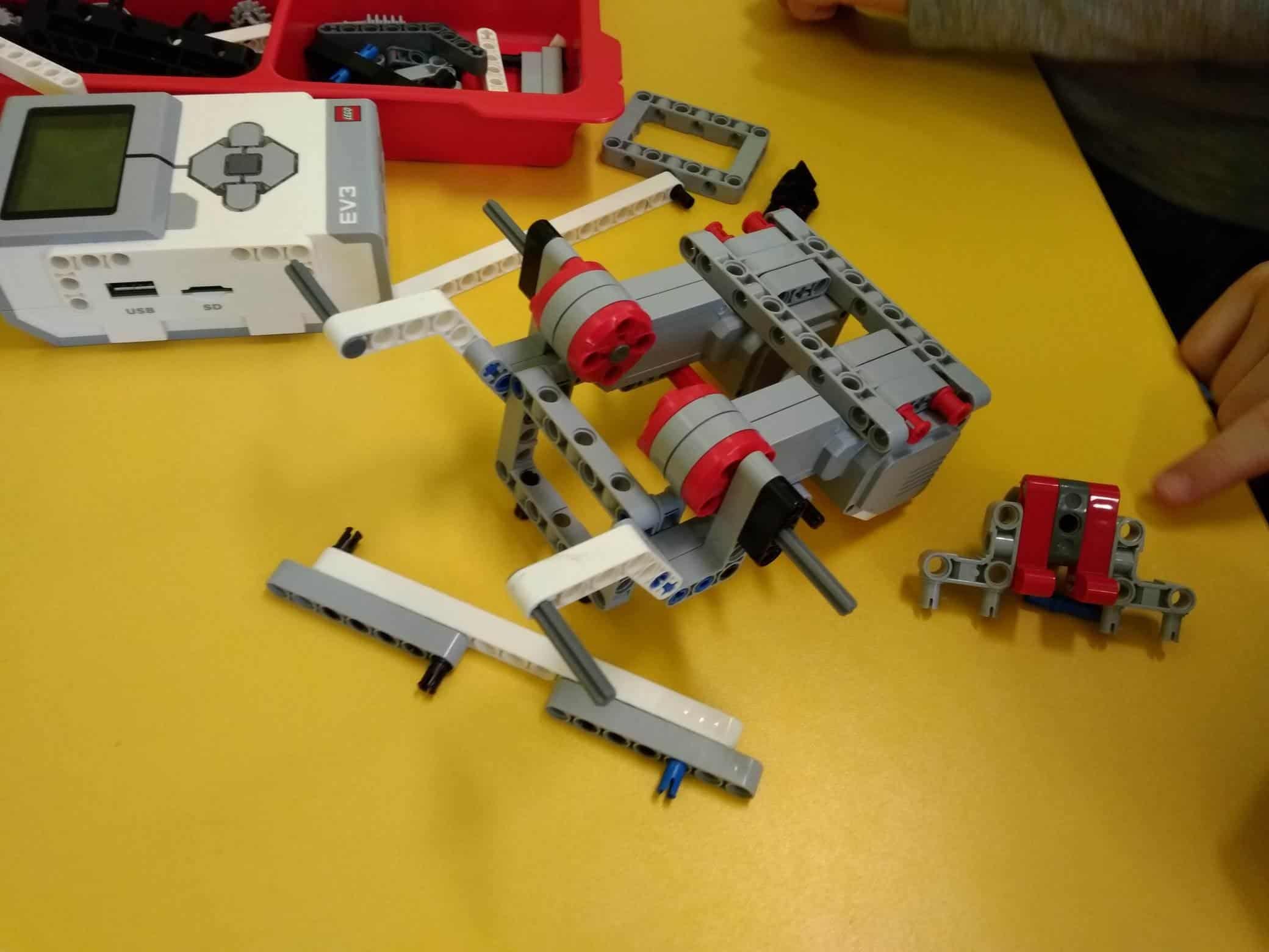 Dzisiaj starszaki z naszego przedszkola uczestniczyły w zajęciach z robotyki w Szkole Podstawowej nr 1. Zajęcia prowadził pan Leszek Ledwożyw. Była to pierwsza z trzech zaplanowanych lekcji . Zadaniem dzieci było skonstruowanie robota z przygotowanych elementów i złączek według podanej instrukcji, a następnie sterowanie nim na przygotowanej macie. A nie było to proste. Dzieci dobrane w dwuosobowe zespoły musiały poprawnie odczytać przedstawione schematy, wyszukać odpowiednie elementy i umieścić je w określonych miejscach. Wszystkim zespołom, a było ich osiem udało się wykonać zadanie, przy czym samo składanie robota trwało ok. 2 godzin. Następna lekcja za tydzień.