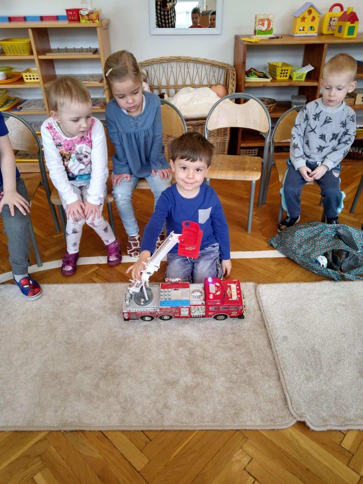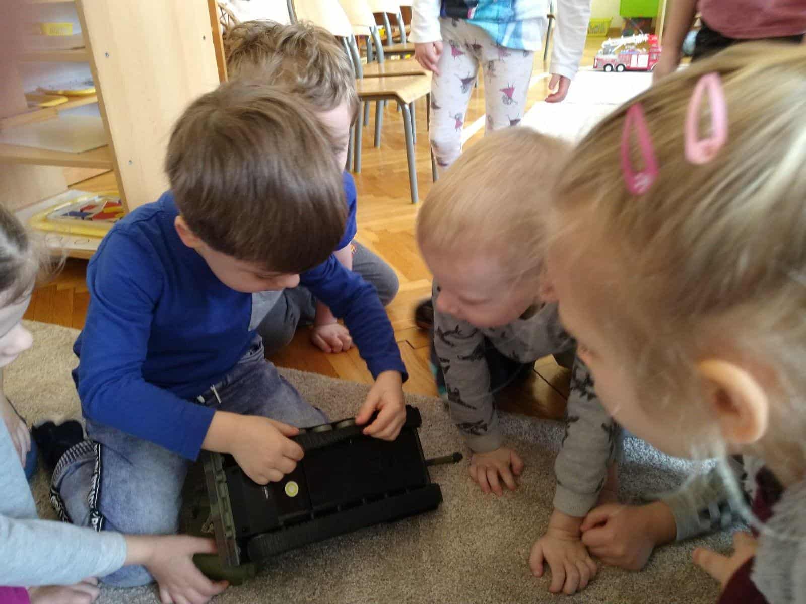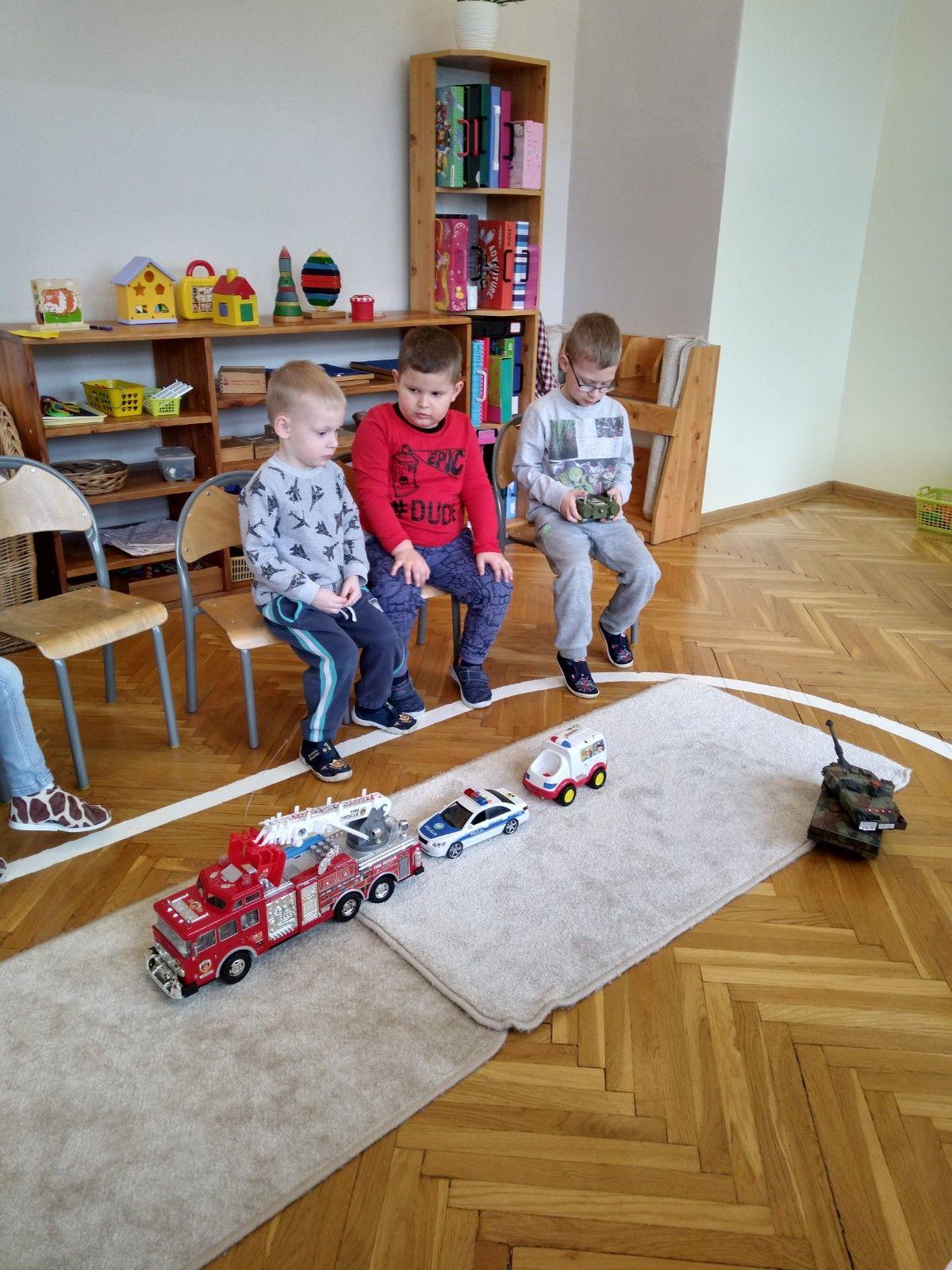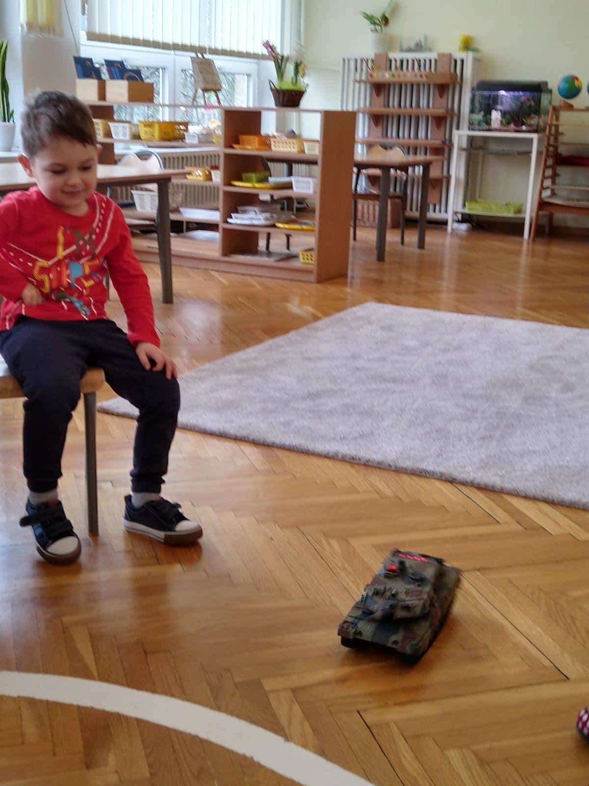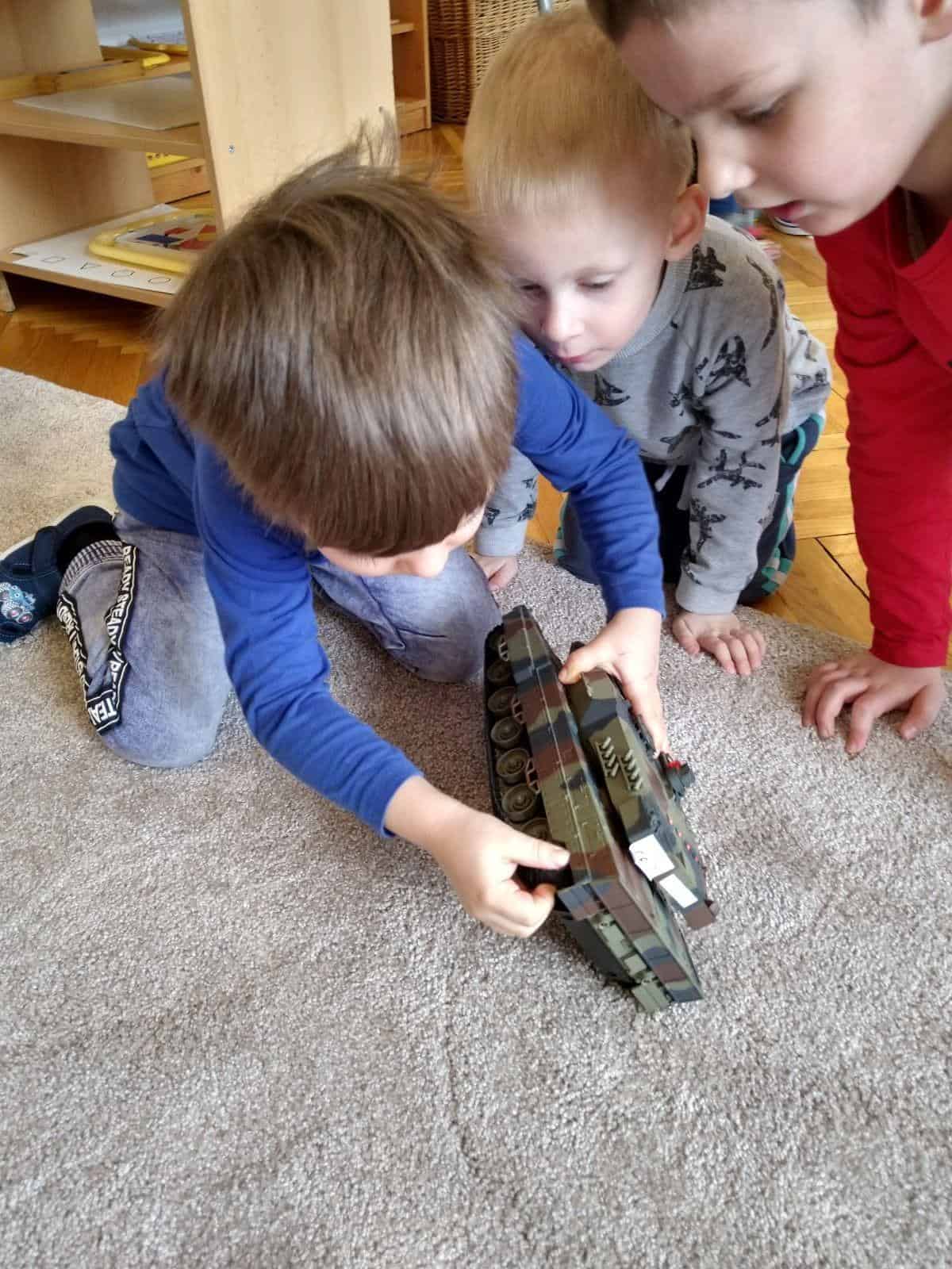 W przedszkolu Wojtuś zaprezentował po jednym pojeździe z każdego rodzaju. Z pasją opowiadał o każdym z nich. Przedstawiał ich budowę, sposób poruszania się i różne funkcje. Po raz kolejny zaskoczyła mnie wiedza przedszkolaków i  ich bogaty zasób słownictwa. Użycie przez Natalię określenia barw wojskowego pojazdu: „ kamuflaż” dowodzi jej orientacji w prezentowanym temacie.  Lecz to tylko jeden z wielu przykładów wiedzy dzieci.