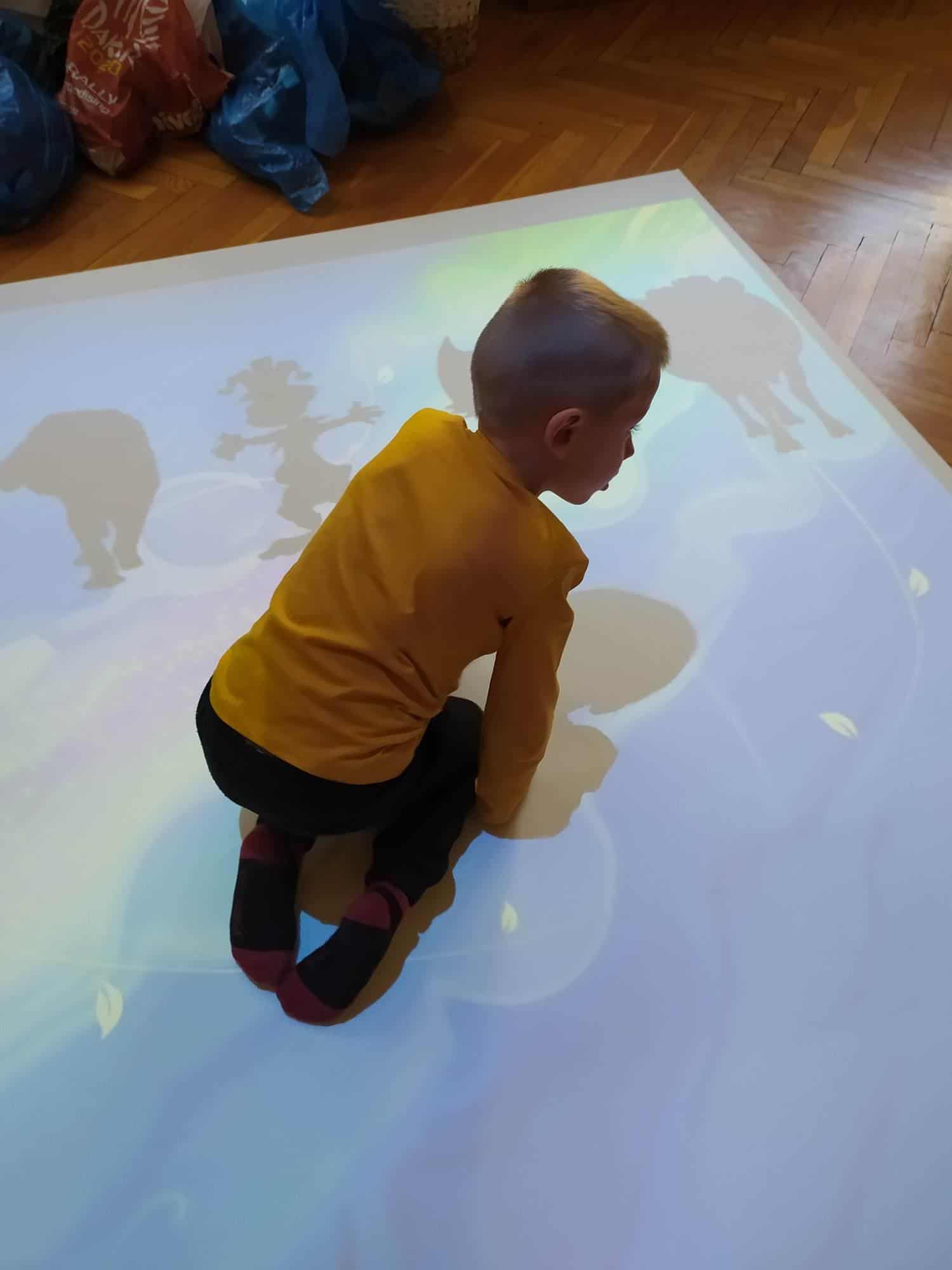 Specjalnie zaprojektowany rzutnik wyświetla na odpowiednio przygotowanym podłożu „wirtualny magiczny dywan”, na którym przedszkolaki są uczestnikami niesamowitych przygód w postaci ciekawych zabaw, gier i zajęć edukacyjnych.