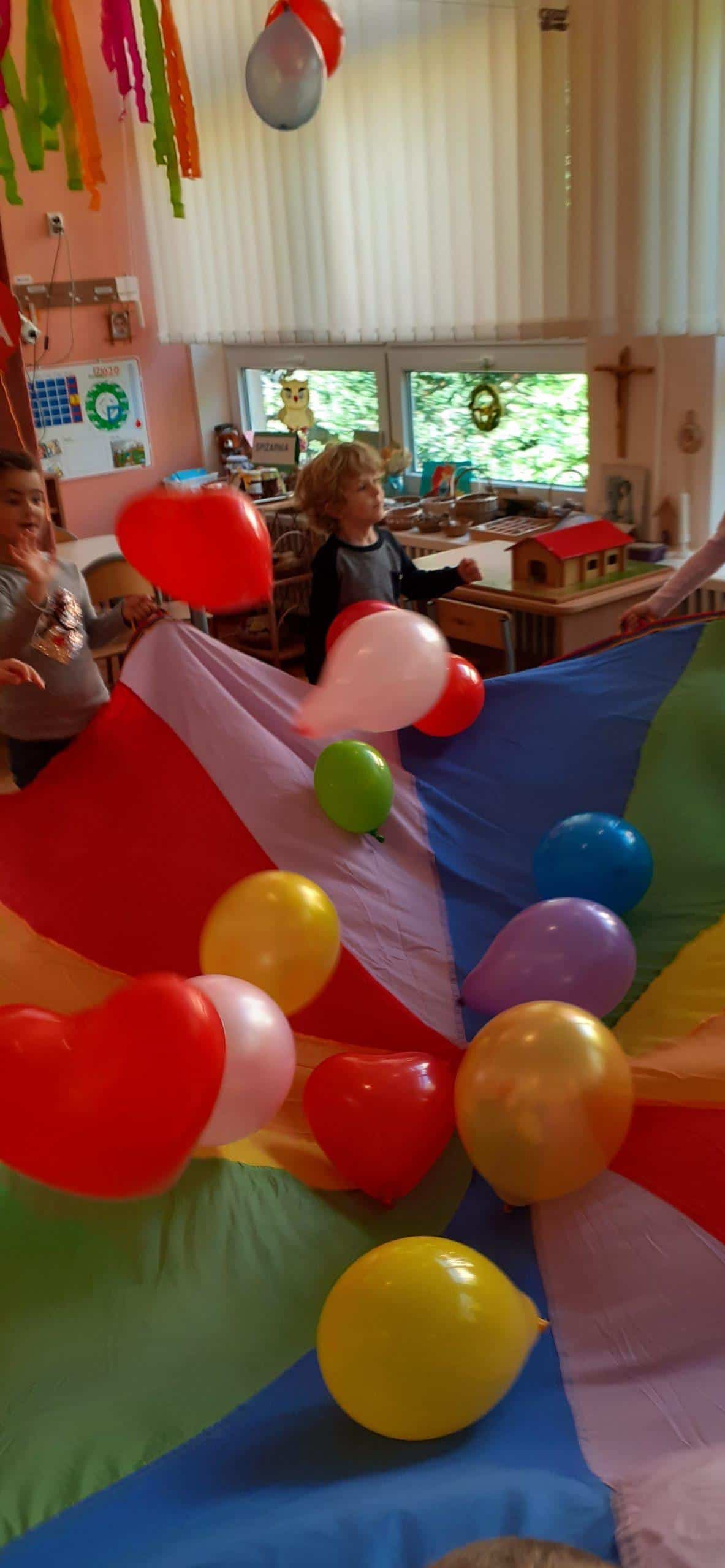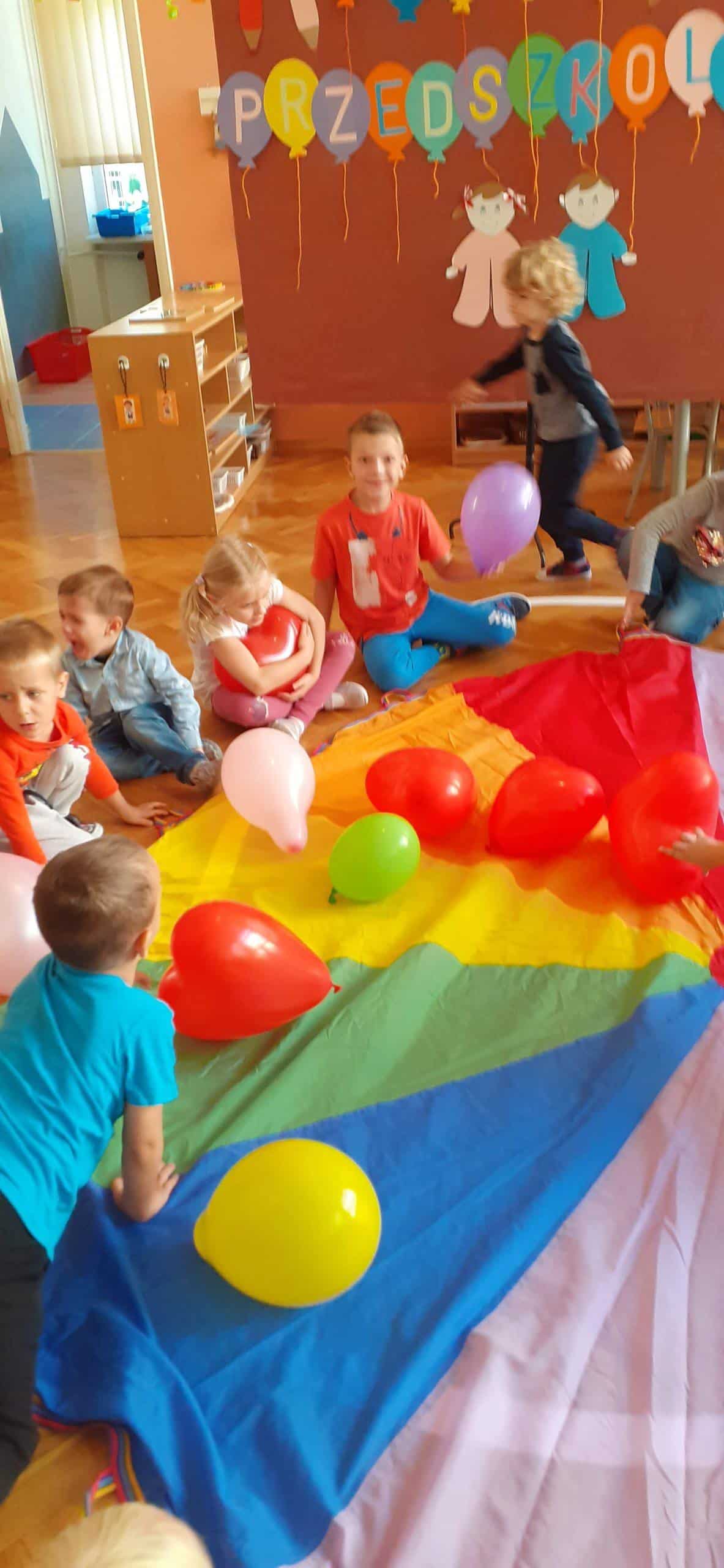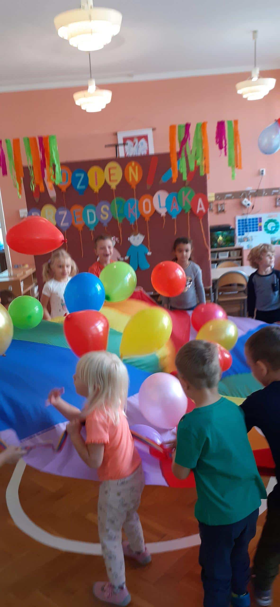 „Każdy przedszkolak dobrze wie, że kiedy wrzesień już kończy się od najmłodszego, aż po starszaka wszyscy świętują dzień przedszkolaka”. Dzień 20 września jest ustanowiony przez Sejm Ogólnopolskim Dniem Przedszkolaka. Ten dzień celebrowaliśmy organizując dzieciom wesołe zabawy. Była to doskonała okazja do świętowania i czerpania radości z bycia przedszkolakiem. Święto to zostało uchwalone we wrześniu 2013 roku dla podkreślenia wagi edukacji przedszkolnej w życiu dziecka. Tego dnia każdemu przedszkolakowi z naszej grupy uśmiech towarzyszył cały dzień. To szczególne święto, któremu towarzyszyły zabawy balonowe, zabawy z chustą animacyjną, zabawy taneczne, zabawy ruchowe na macie interaktywnej.Była to też okazja do tego, aby porozmawiać o prawach dziecka.