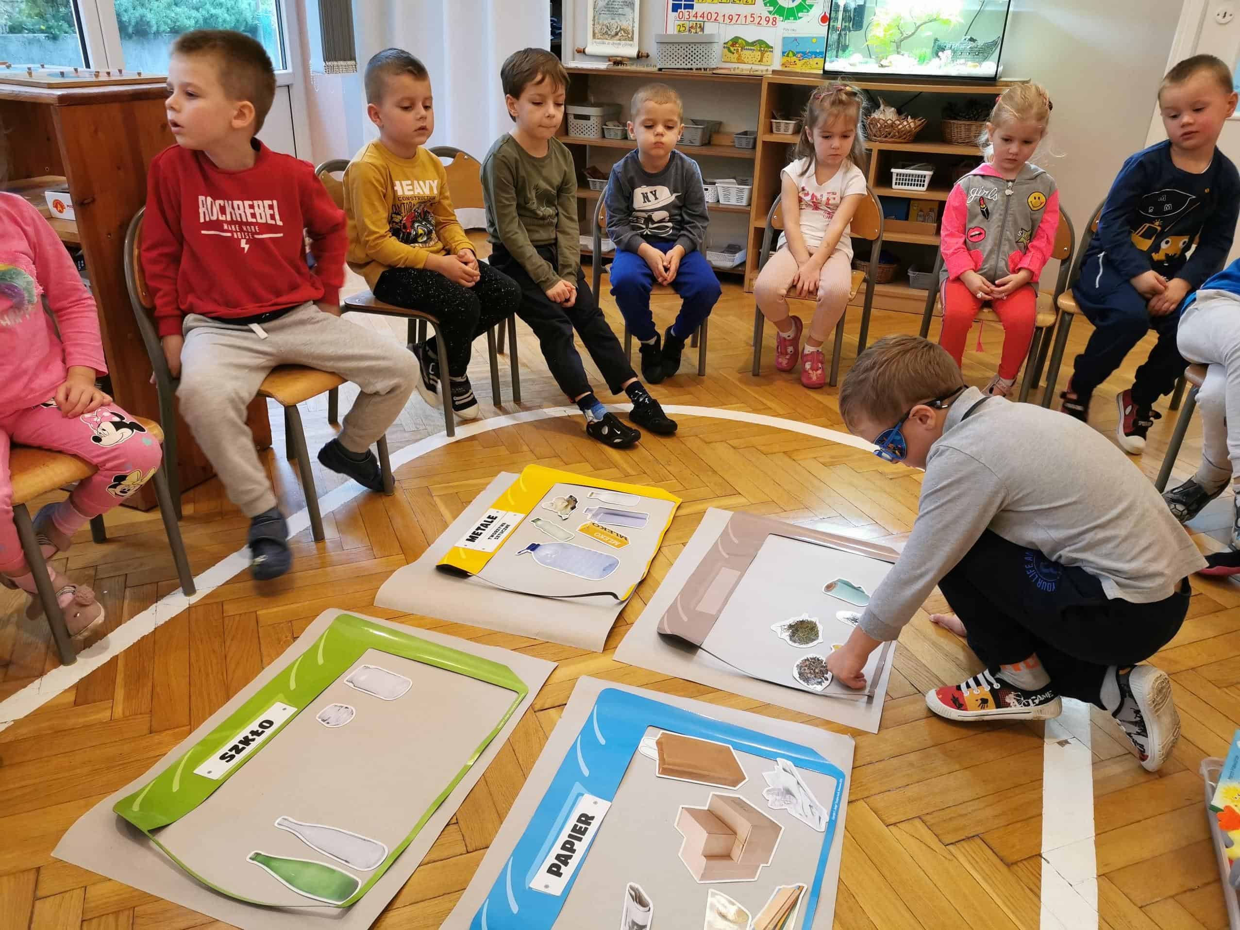 Oklejone kolorową taśmą słoiki lub butelki wykorzystujemy do segregowania przez dziecko przedmiotów: kolorowych kulek, guzików, koralików, pociętych na kawałki różnobarwnych słomek do picia. Taka butelka to wyśmienita grzechotka stymulująca słuch dziecka. Butelki oznaczone cyfrą i oklejone kolorowym papierem wykorzystujemy do segregowania przedmiotów według liczby i koloru.