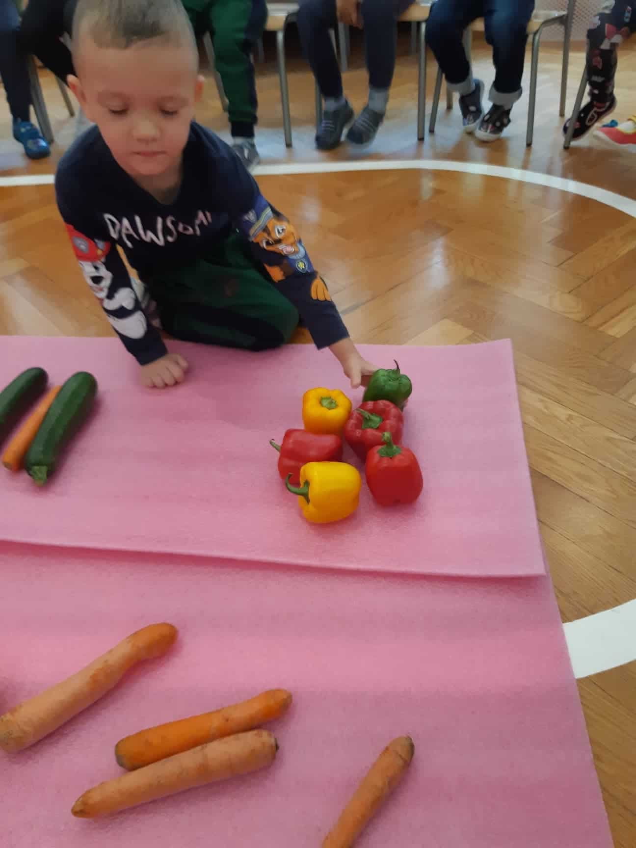 Dwa lub trzy rodzaje makaronu mieszamy w małym pojemniku. Zadaniem dziecka jest posegregować makaron do oznaczonych miseczek. Kolorowy makaron możemy także rozdzielać według barw, przesypywać lub robić z niego korale. Makaron wsypany do słoiczka albo butelki to grzechotka, za którą maluszek może wodzić wzrokiem, a starsze dziecko wystukiwać nią podany przez dorosłego rytm.