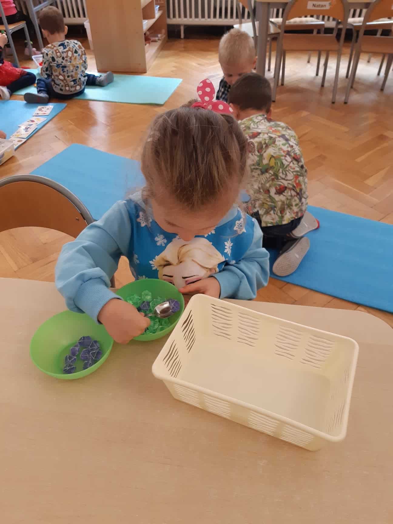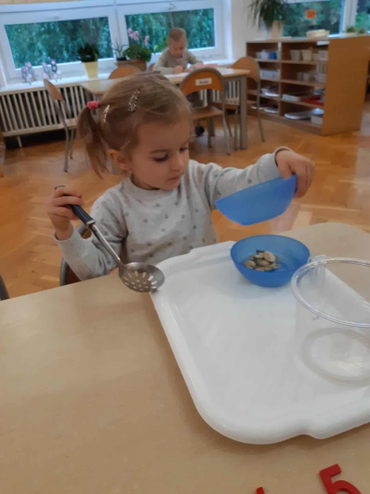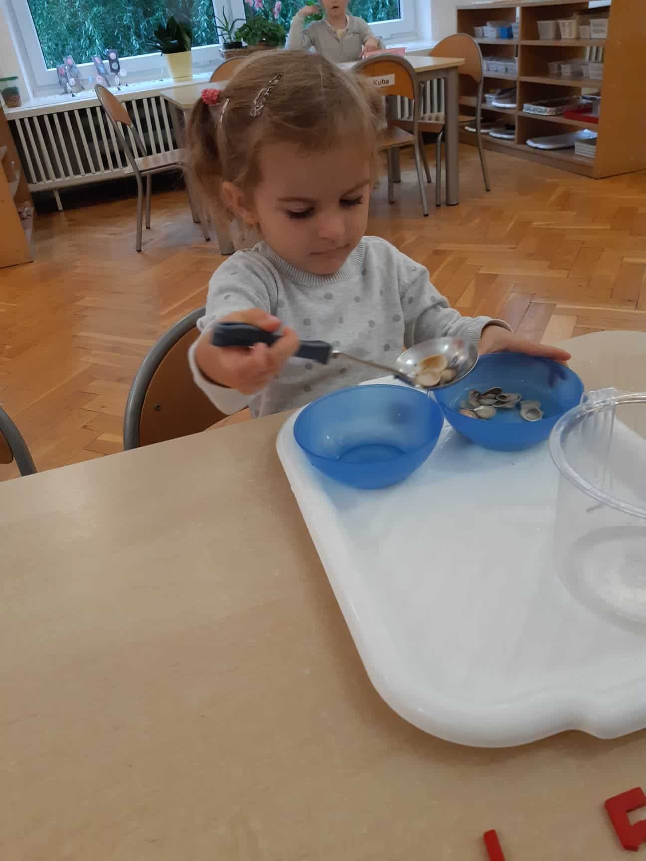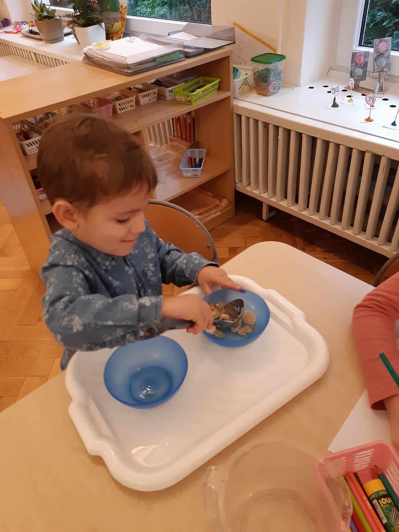 Ziarna fasoli są przyjemne w dotyku. Można je przesypywać do innego naczynia, szukać ukrytego w fasoli przedmiotu, przeliczać, układać wzory. Doskonale sprawdzą się też kasza i mąka, które są znakomitym podłożem do pisania i rysowania. Rozsypana na tacy stanowi niejako ścieralną tablicę.