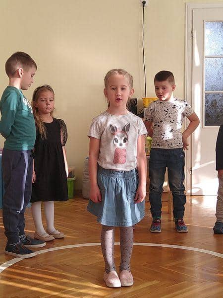 Podczas uroczystości, dzieci, które już od kilku lat uczęszczają do przedszkola, zaprosiły nowych kolegów i nowe koleżanki do swojego grona. Zaproszenie wyrecytowały w formie wierszyków, a uroki przedszkola opisały śpiewając piosenki.