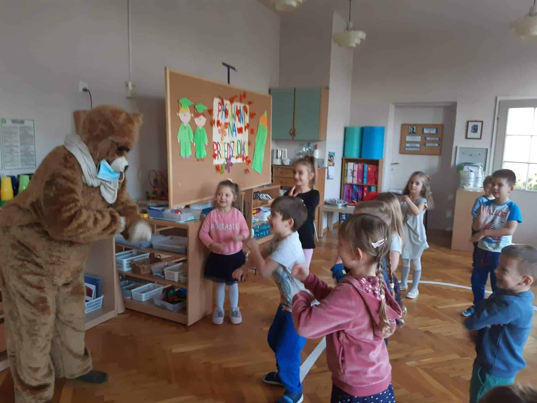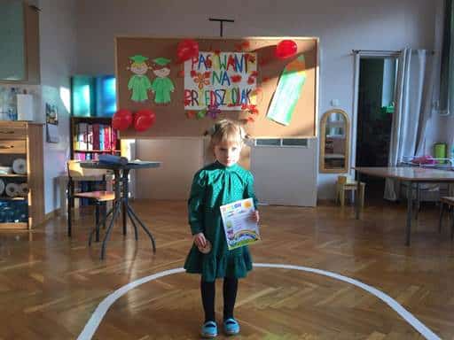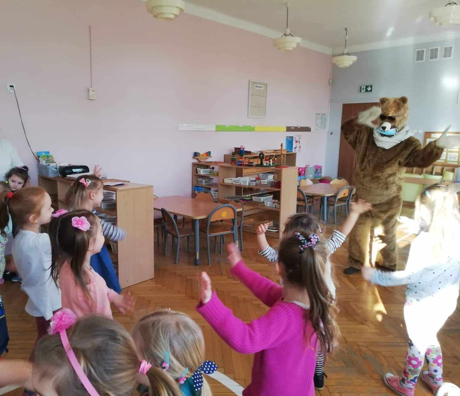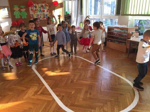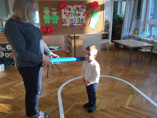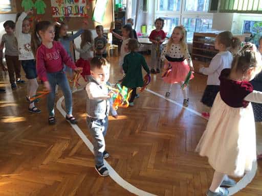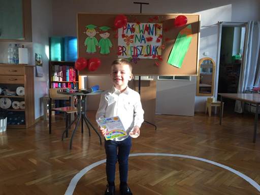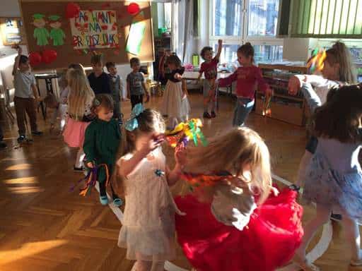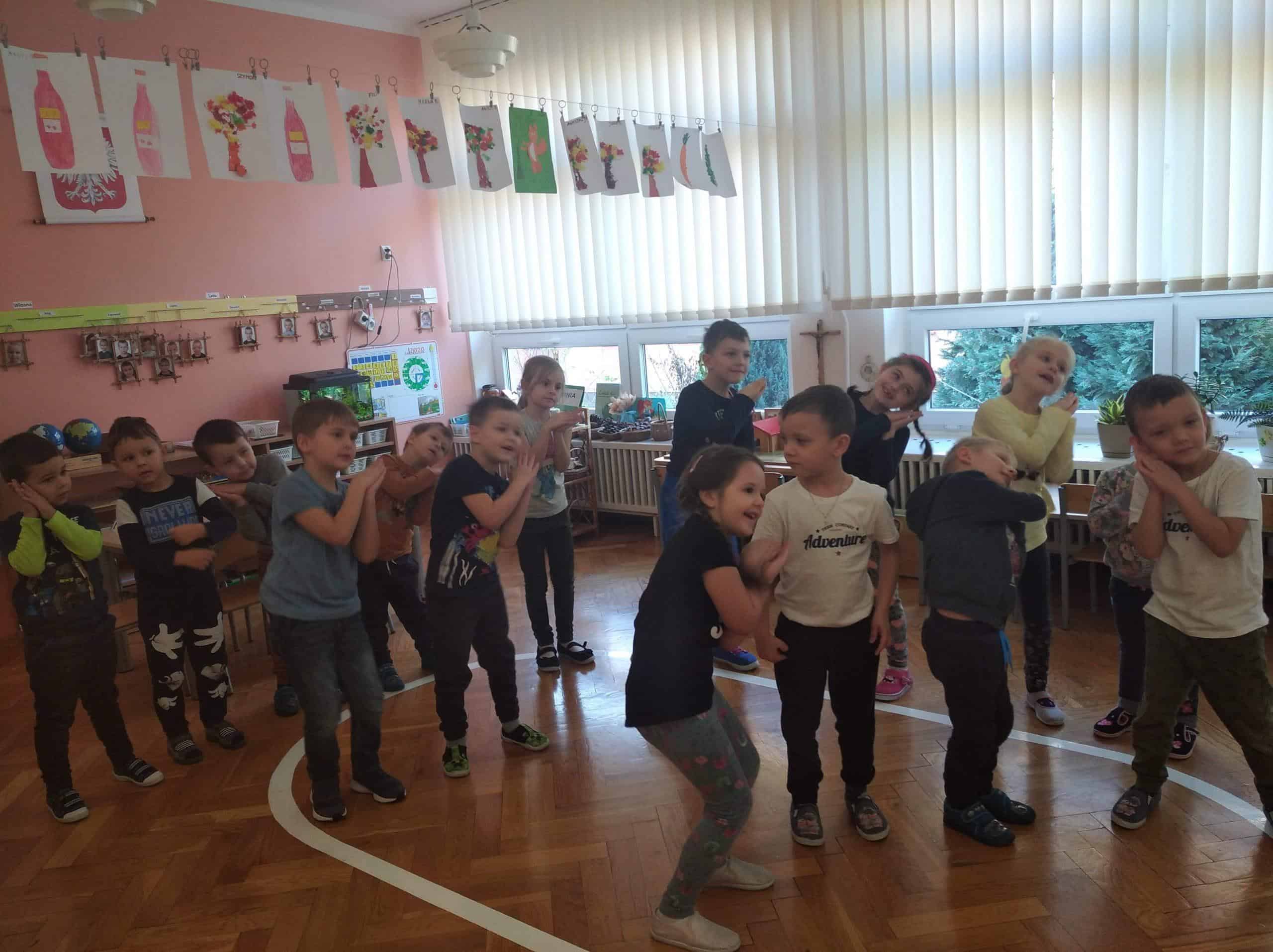 Również w naszej grupie odbyła się zabawa andrzejkowa. Na początku dowiedzieliśmy się kto kim będzie w przyszłości. Aby się tego dowiedzieć każde dziecko musiało przebić balon, gdyż to właśnie w jego środku znajdowała się odpowiedź na pytanie Kim będę, gdy dorosnę? Okazało się, że przebicie balonu może być baaardzo ekscytujące, a nawet trochę straszne. Ludwik na wszelki wypadek chował się za placami Pani Marceli. No i oczywiście nie każdy był zadowolony z wizji swojej przyszłości. Michał nie chciał zostać pisarzem. Dopiero gdy dowiedział się, że może podróżować po całym świecie i opisywać co widział poprawił mu się humor. Za to Ignacy tryskał radością, gdyż okazało się, że zostanie kucharzem, a zawsze o tym marzył. Nel i Iga będą weterynarzami, Karolinka modelką, Marcel pilotem, Joachim marynarzem. Mamy jeszcze ogrodników, dziennikarzy, policjantów i fryzjerów. Po takich emocjach przyszła pora na dyskotekę. Bawiliśmy się przy muzyce z płyty naszego pana Dominika, a później nie mogło zabraknąć Ruda tańczy jak szalona oraz Oczu zielonych . Były również specjalne dedykacje np. Mama ostrzegała dla Michalinki. Było wesoło, radośnie i wszyscy dobrze się bawili.