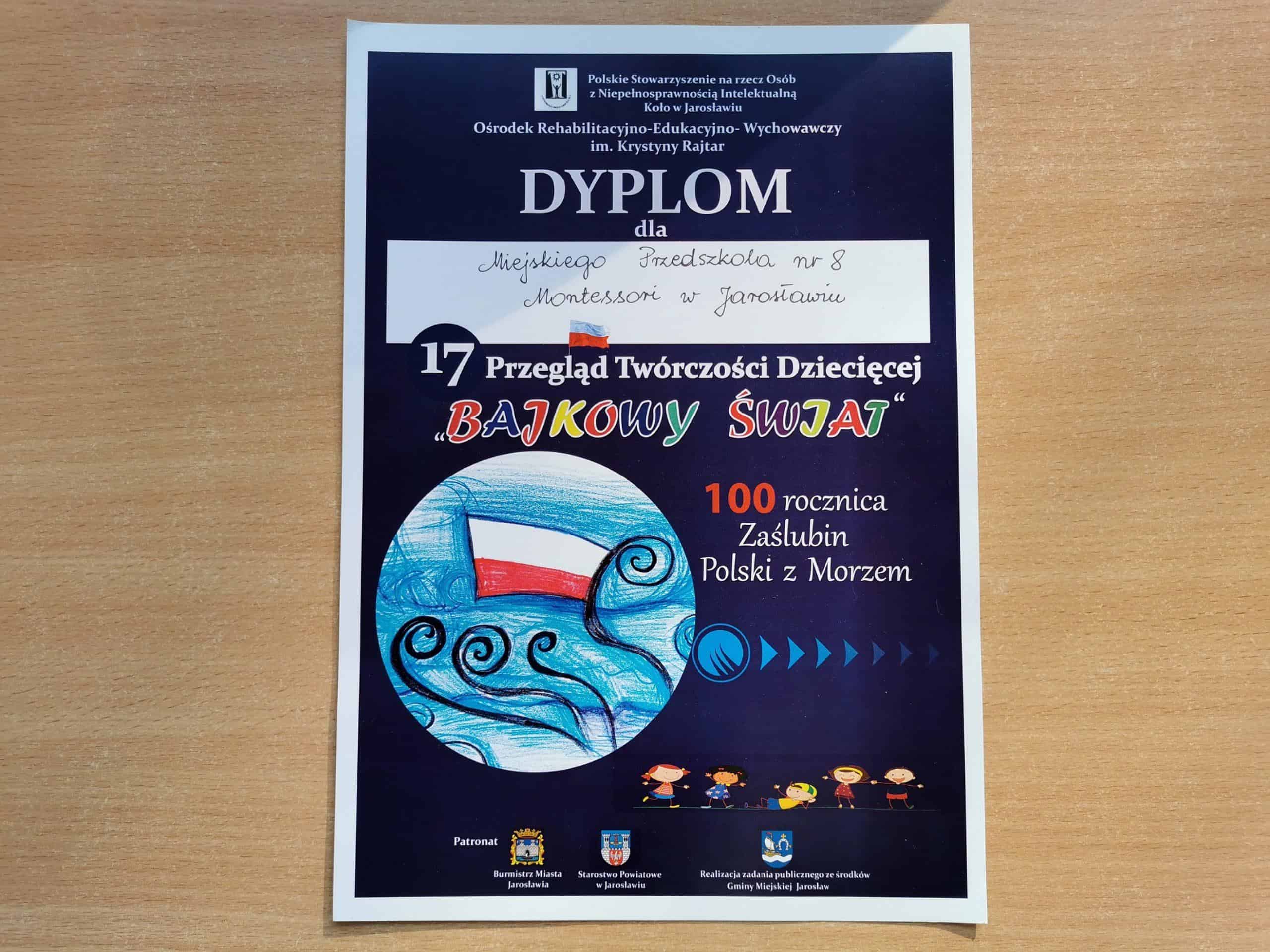 W ubiegłym tygodniu przedszkolaki z grupy Czerwonej otrzymały nagrody za udział w 17 Przeglądzie Twórczości Dziecięcej „Bajkowy Świat”. Tegoroczny przegląd odbywał się pod hasłem „100 rocznica zaślubin Polski z morzem”.
