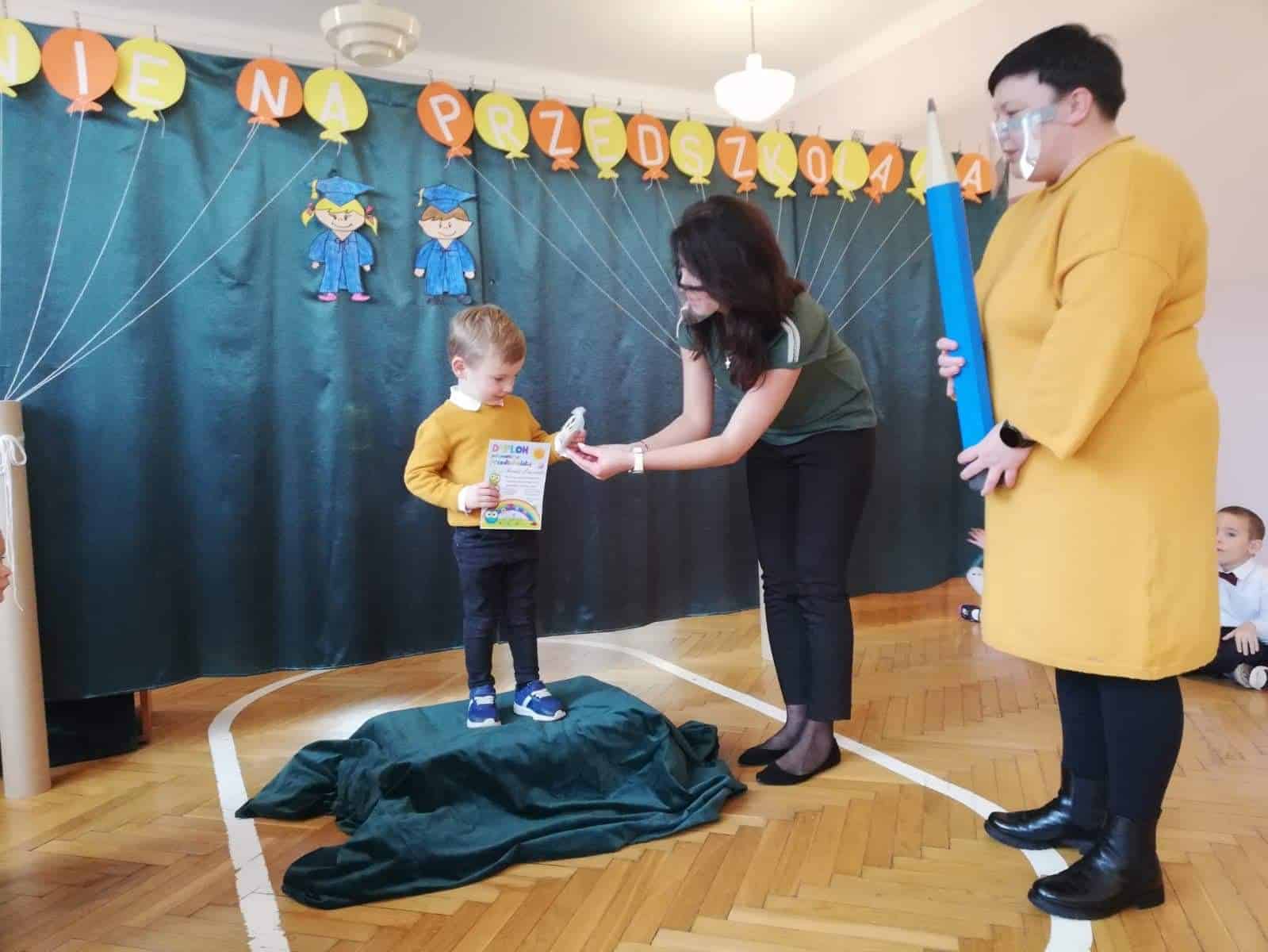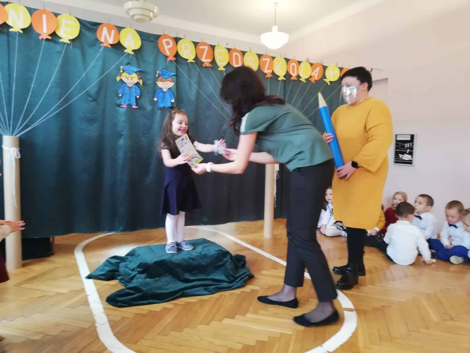 Pasowanie na Przedszkolaka to jedna z ważniejszych uroczystości, która na stałe zagościła w kalendarzu imprez przedszkolnych. W grupie Czerwonej uroczystość ta, odbyła się 27 listopada. W tym dniu dzieci, które we wrześniu rozpoczęły przygodę z przedszkolem zostały oficjalnie przyjęte do grona przedszkolaków. Dzieci zaprezentowały swoje umiejętności, pokazując tym samym, jak wiele potrafią. Przedszkolaki z uśmiechem na twarzy recytowały wiersze i śpiewały piosenki. Następnie złożyły ślubowanie po czym odbyło się uroczyste pasowanie na przedszkolaka. Na pamiątkę tej ważnej chwili dzieciom wręczono dyplomy oraz imienne odznaki.