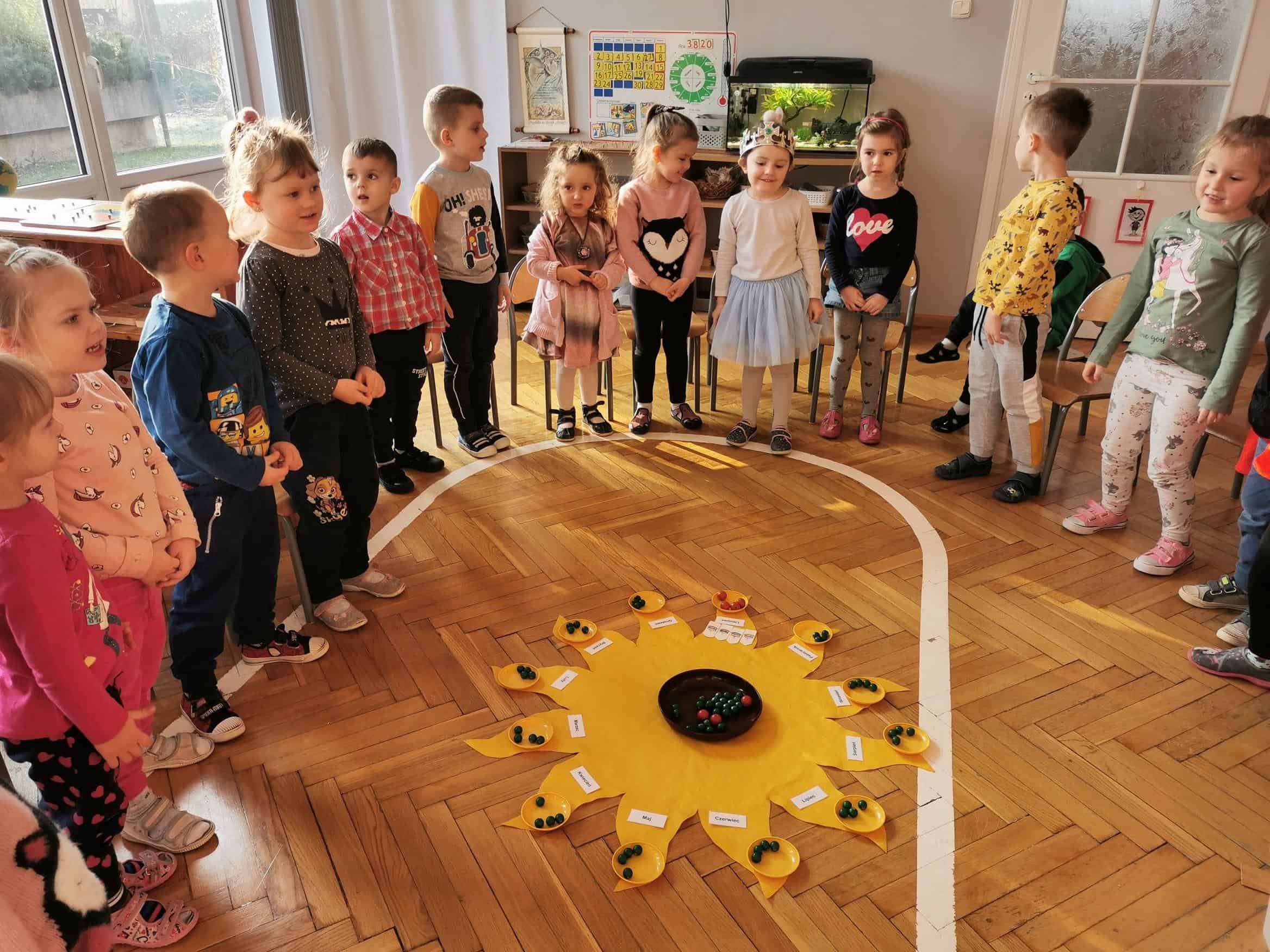 W listopadzie urodziło się czworo przedszkolaków z grupy Czerwonej. 10 listopada swoje święto miał Wojtuś G., który w tym dniu skończył 4 lata, 12 – Ninka, skończyła 3 lata, 26 – Emilcia, skończyła 4 lata, a 30 – Alanek, który skończył 5 lat. Tradycyjnie urodziny w przedszkolu odbyły się według rytuału montessoriańskiego „Urodzinowego Słoneczka”. Zaśpiewaliśmy „Sto lat” naszym kochanym solenizantom i złożyliśmy najserdeczniejsze życzenia płynące prosto z maleńkich serduszek. Jak to na urodzinach przystało nie zabrakło oczywiście słodkości. Ninka obdarowała również dzieci gumkami do mazania w kształcie zwierzątek, które wszystkim się bardzo podobały.