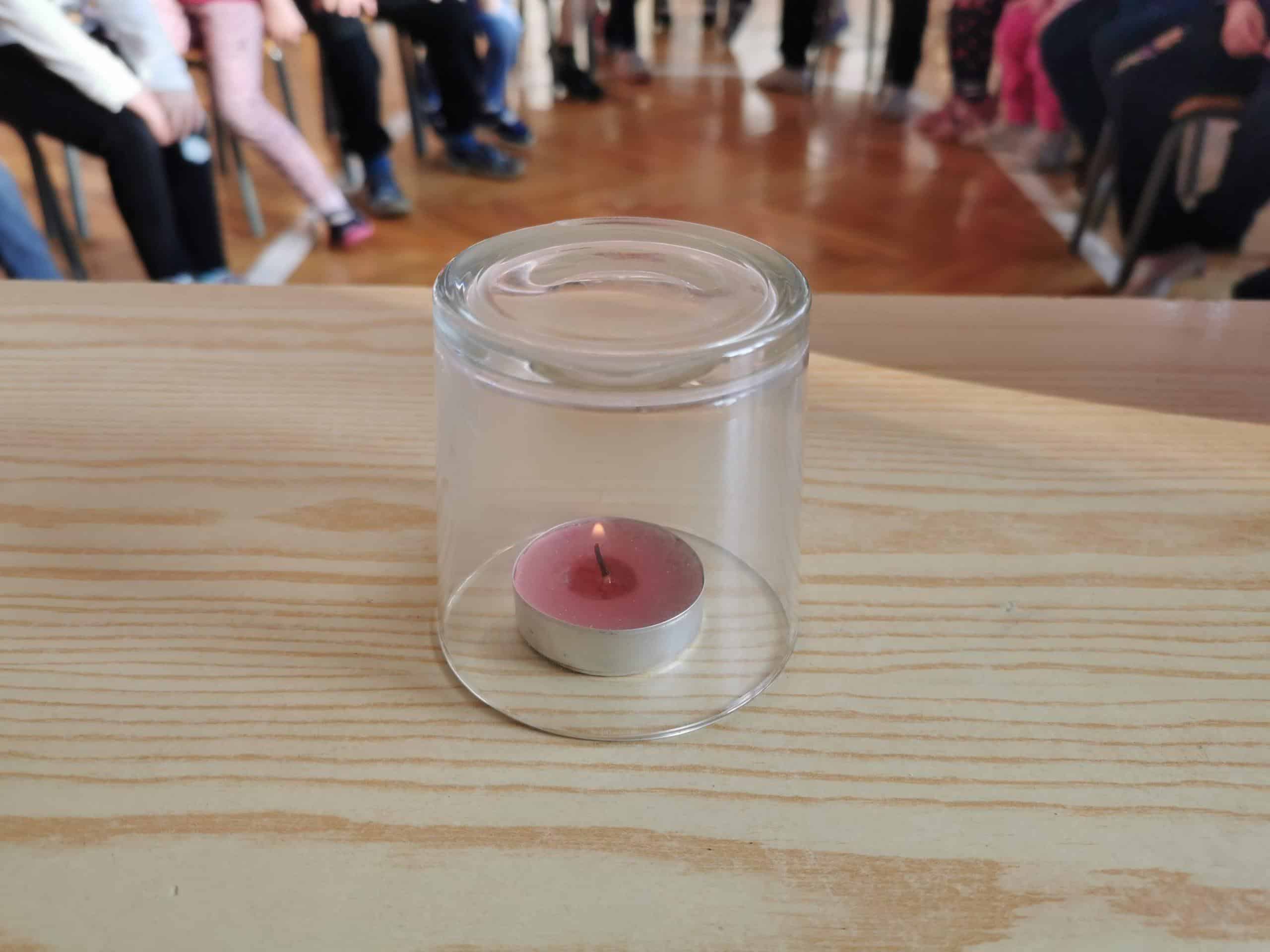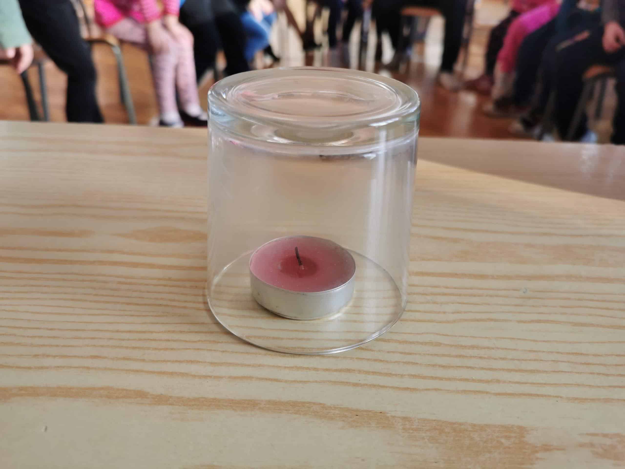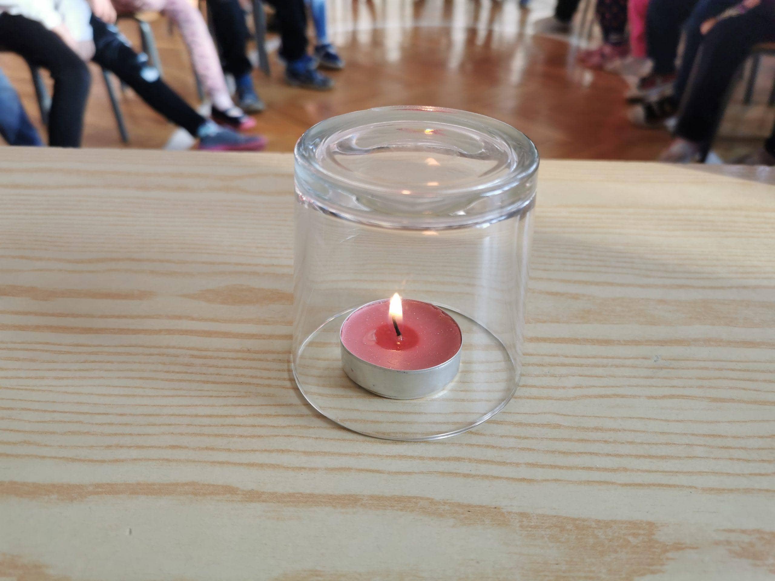 Następnie wykonaliśmy eksperymenty z ogniem: Jaki jest ogień?, Co wspólnego ma ogień z powietrzem?. Teraz już przedszkolaki wiedzą, że ogień nie będzie się palić bez dostępu powietrza.