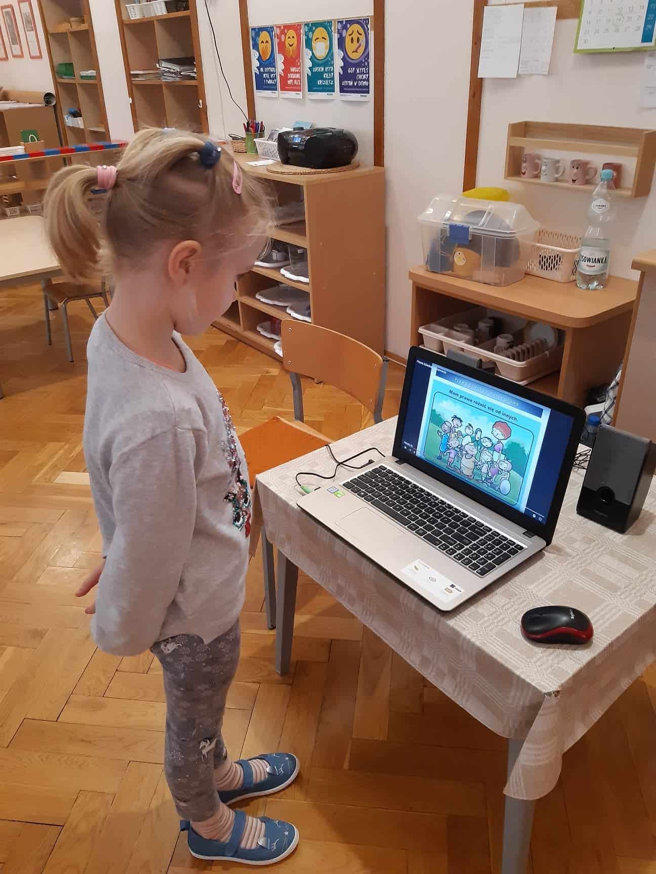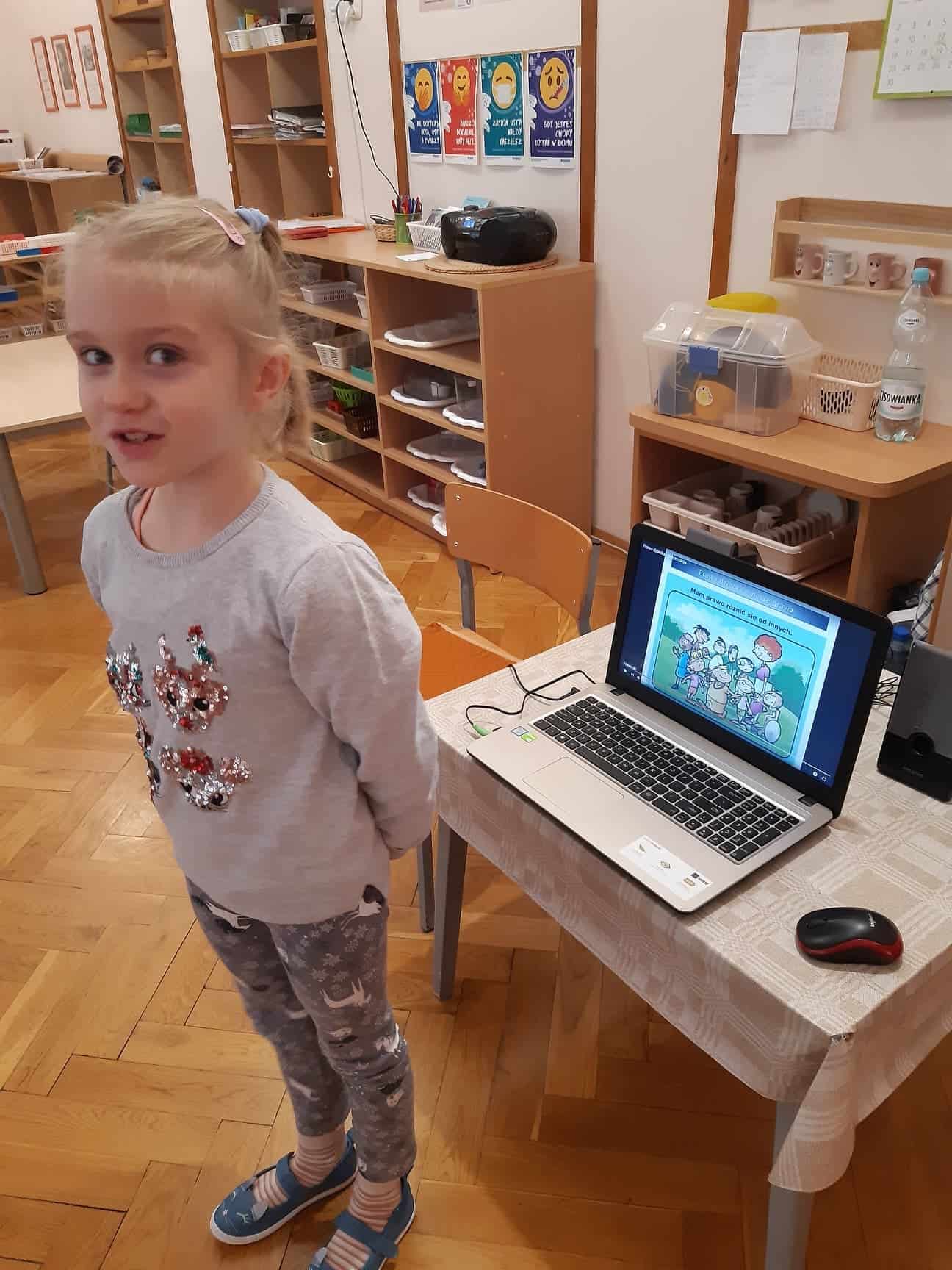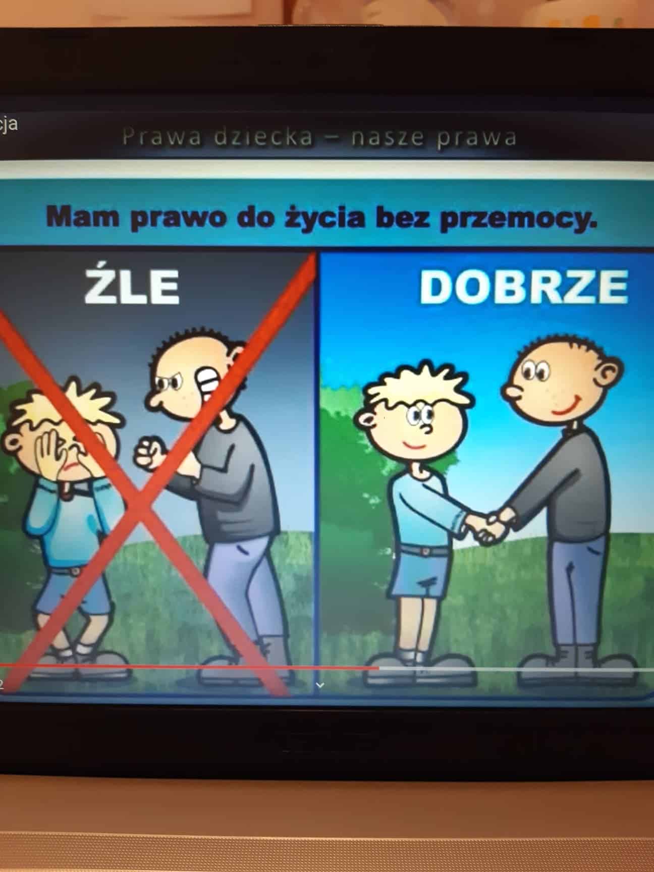 Na zakończenie obejrzały wypowiedzi innych dzieci na temat swoich praw i jako podsumowanie lekcji w doskonały sposób wypowiadały się na temat swoich praw, udzielały odpowiedzi czy są one potrzebne i jakie według ich indywidualnej opinii prawo jest dla nich najważniejsze.