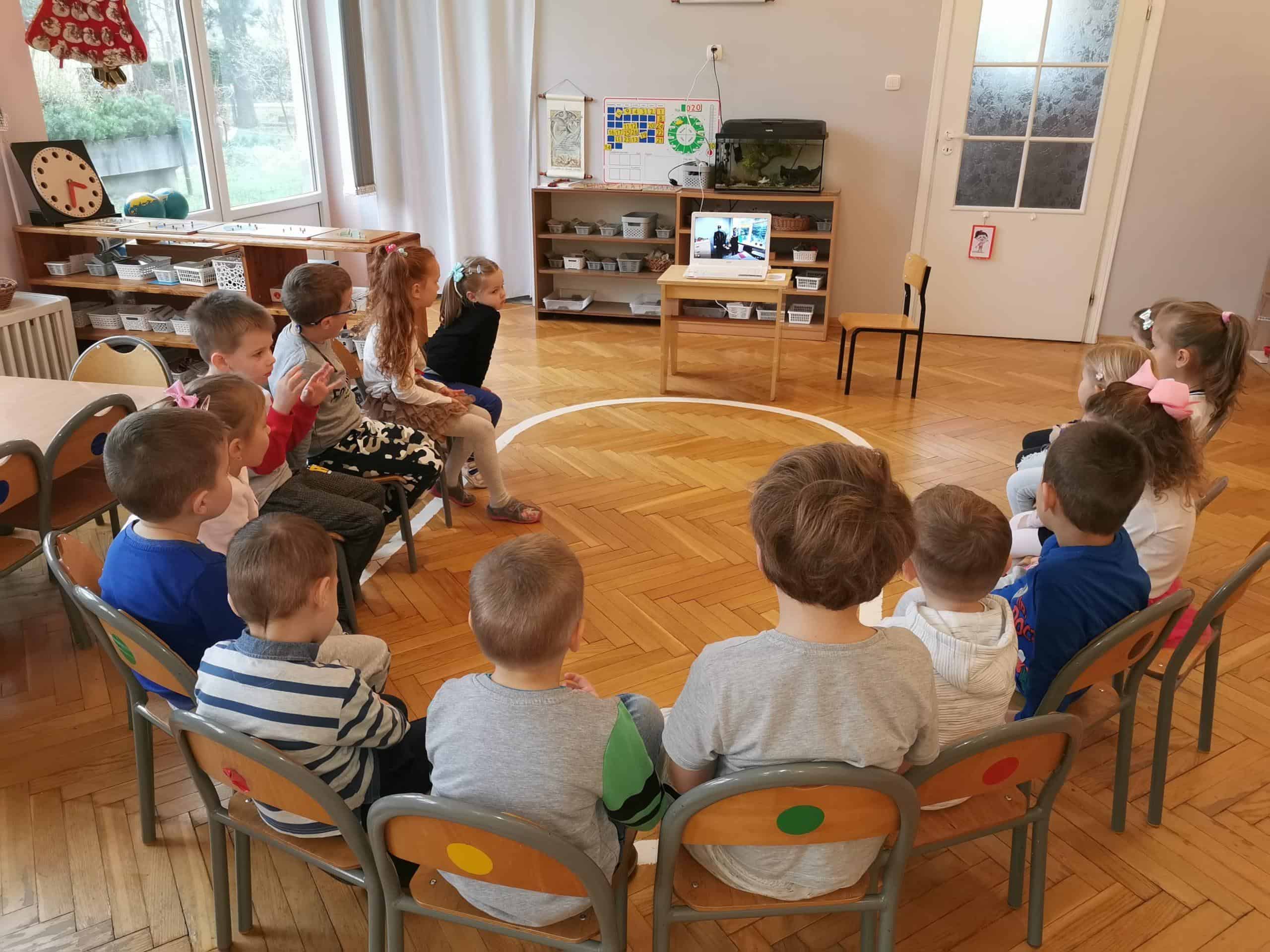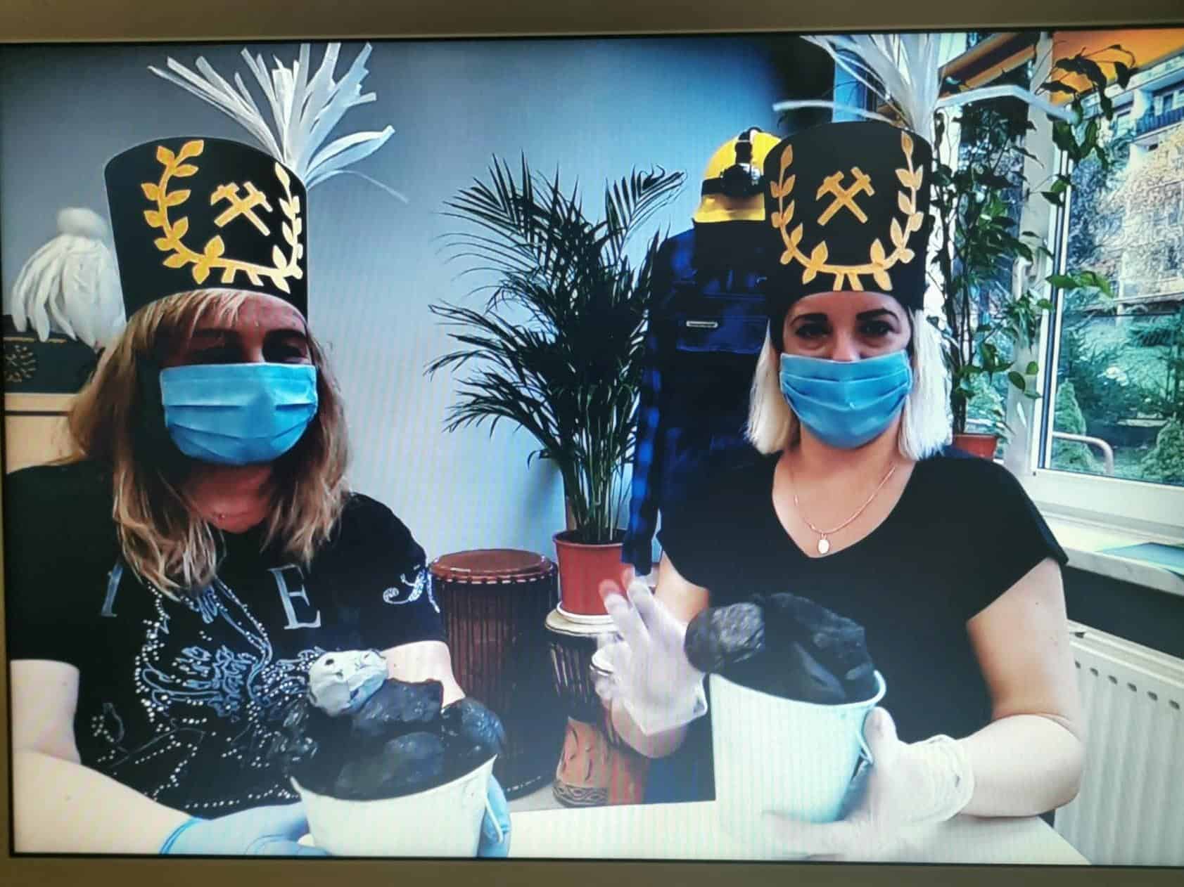 Ze względu na obecną sytuację pracownicy Ośrodka Rehabilitacyjno-Edukacyjno-Wychowawczego im. Krystyny Rajtar w Jarosławiu nie mogli przyjść do przedszkola, żeby przeprowadzić warsztaty, ale przynieśli nam wszystkie potrzebne materiały oraz płytkę z nagranym warsztatem. Przedszkolaki obejrzały nagranie. Panie przywitały się z dziećmi piosenką „Wszyscy są witam Was”, po czym w ciekawy sposób opowiedziały o ciężkiej i odpowiedzialnej pracy górnika, zaprezentowały strój galowy i roboczy górnika. Następnie przygotowały dla dzieci quiz, podsumowujący zdobytą wiedzę.