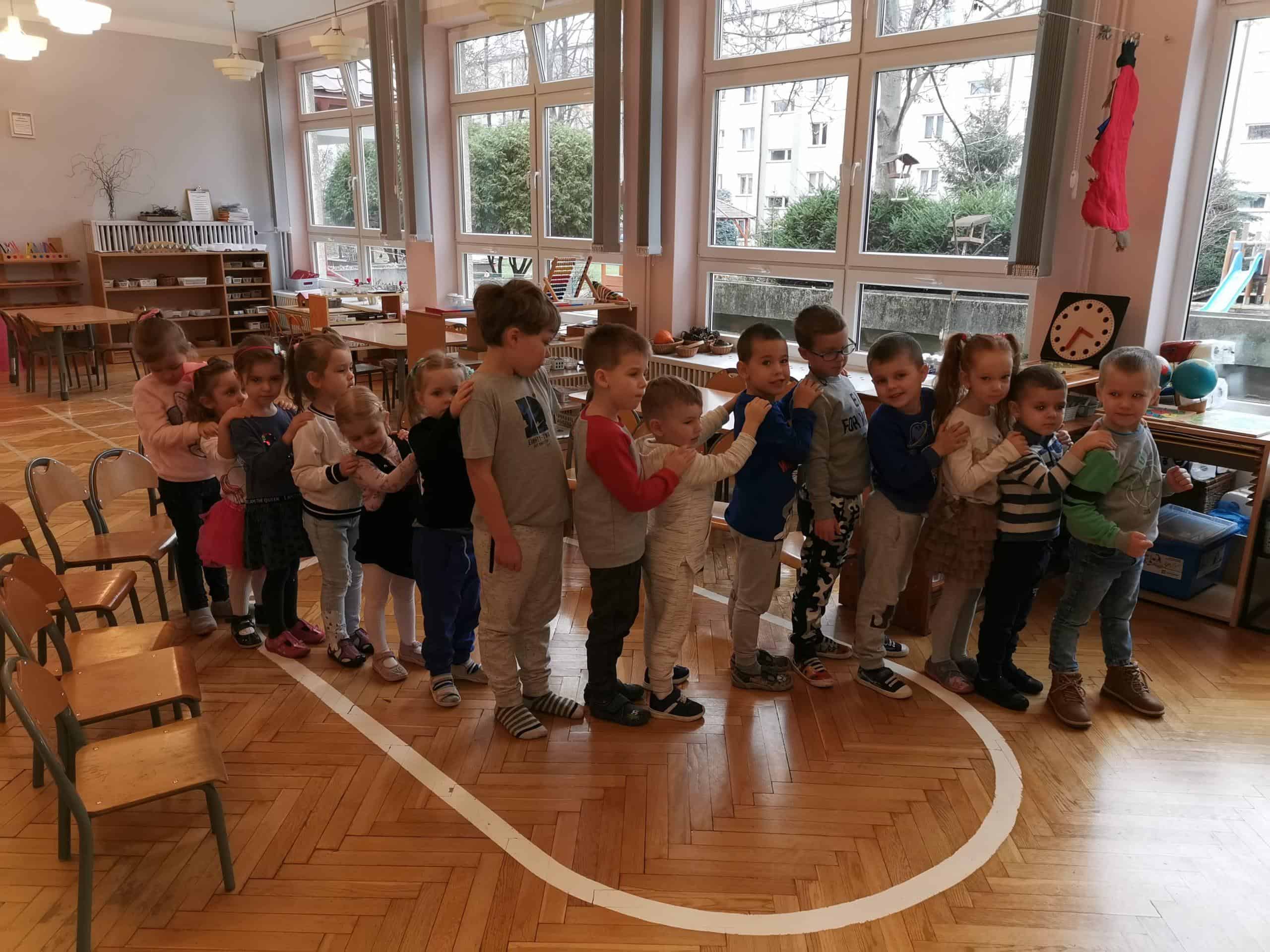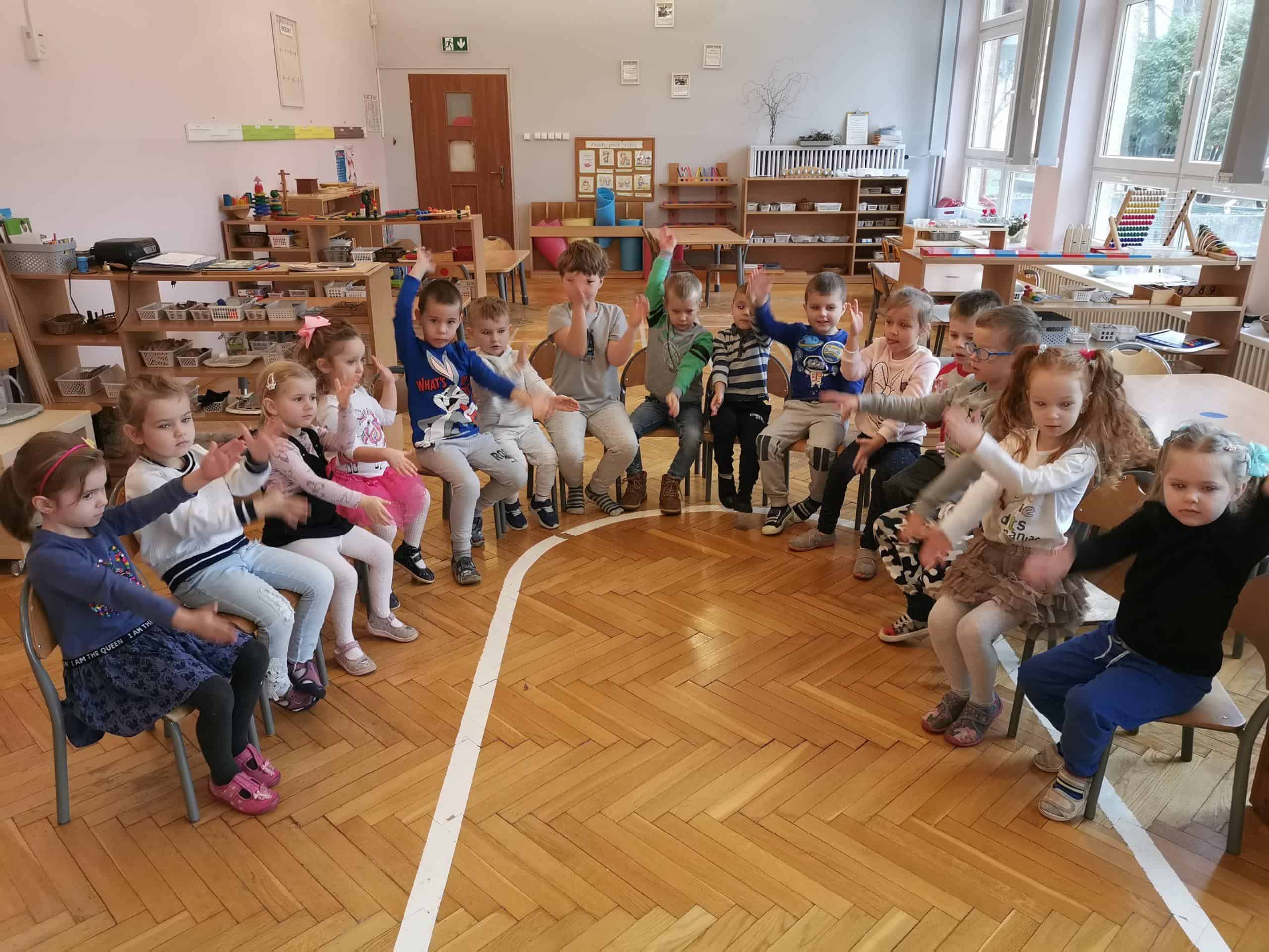 Panie zaprosiły również dzieci do zabawy ruchowej „Hej w kopalni praca wre”, którą zaprezentowały dzieci z ośrodka. Przedszkolaki chętnie włączyły się do wspólnej zabawy.