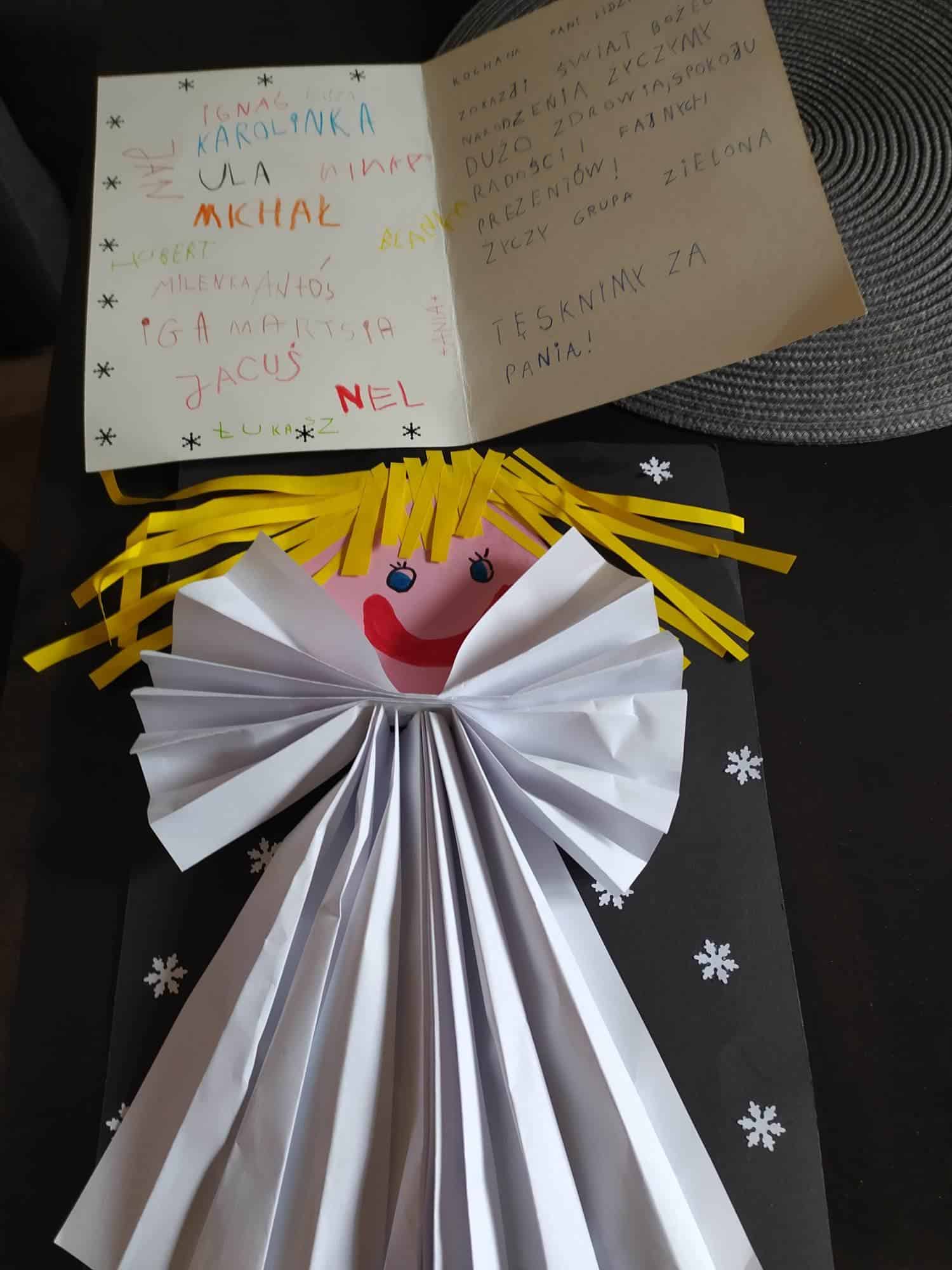 Pani Ani i moim Dzieciom dziękuję za pięknego Aniołka. Ozdobił moją choinkę, dziękuję też za cudowną kartkę świąteczną z podpisami dzieci. Bardzo mnie wzruszył ten prezent.